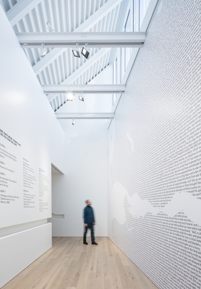 Gallery Director, Reid Shier requested gallery space free of obstacles, with floors and walls that can be cut into, ceilings from which anything could be hung in any position, access to power and media anywhere, lighting that can be natural or controlled. The main gallery is thus conceived as a ready instrument for creativity, more studio than a museum. The structural musculature of the building performs the dual purposes of lifting the gallery and providing a clear space, completely daylit from above with diffuse northern light, or darkened. A system of steel purlins provides a track for lighting, data, media, suspended works, and temporary partitions. The robust and easily patched oak flooring features a continuous central channel for ventilation, electrical, and data chases that give ready access to freestanding works and temporary partitions of any configuration.