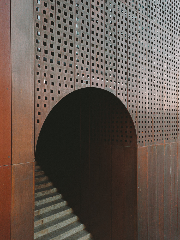 건축의 모습은 동질감을 유지하여, 공간의 사용성을 연속시키는 것과 달리, 기존 석재와 대비되는 스틸소재를 사용합니다.