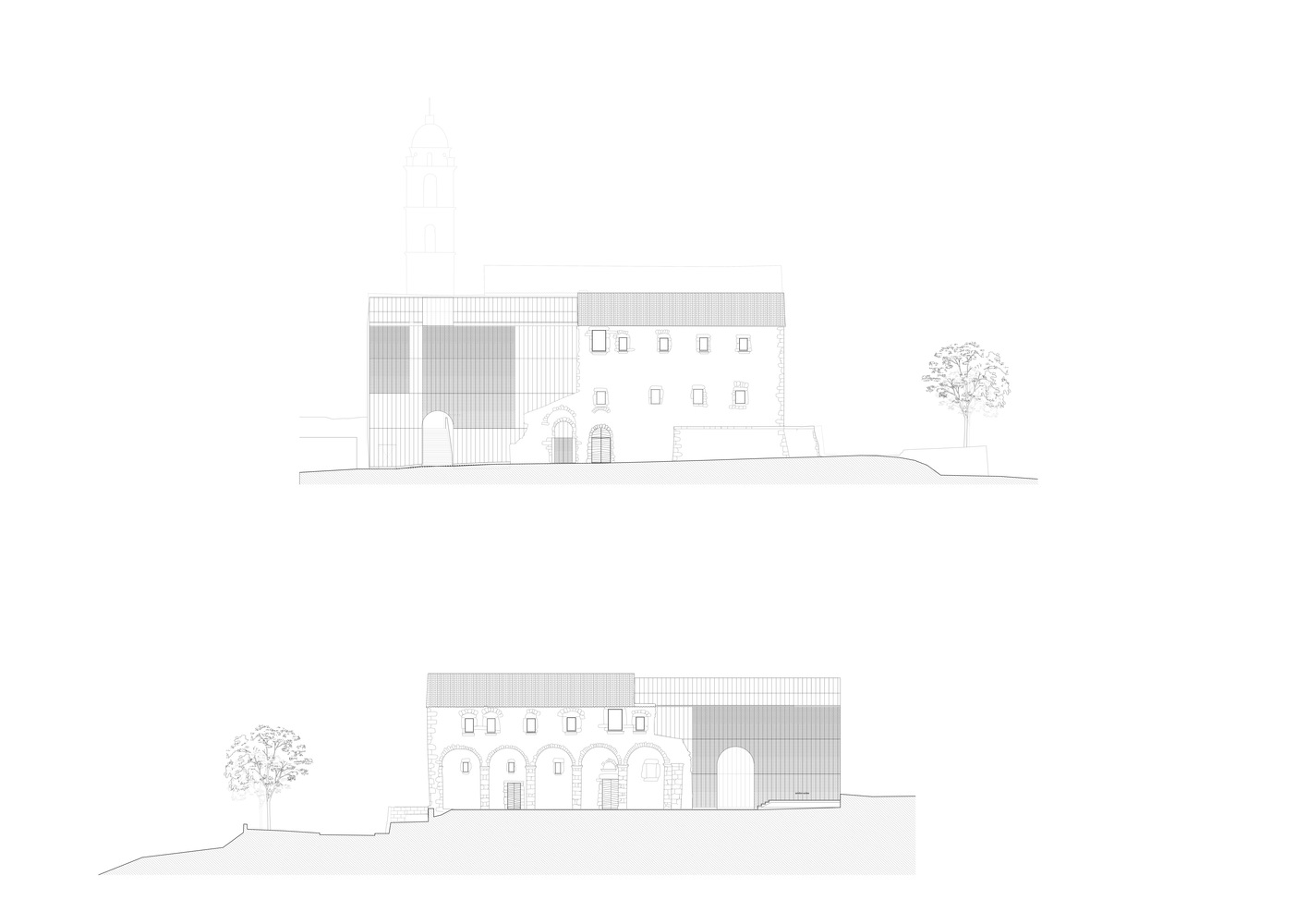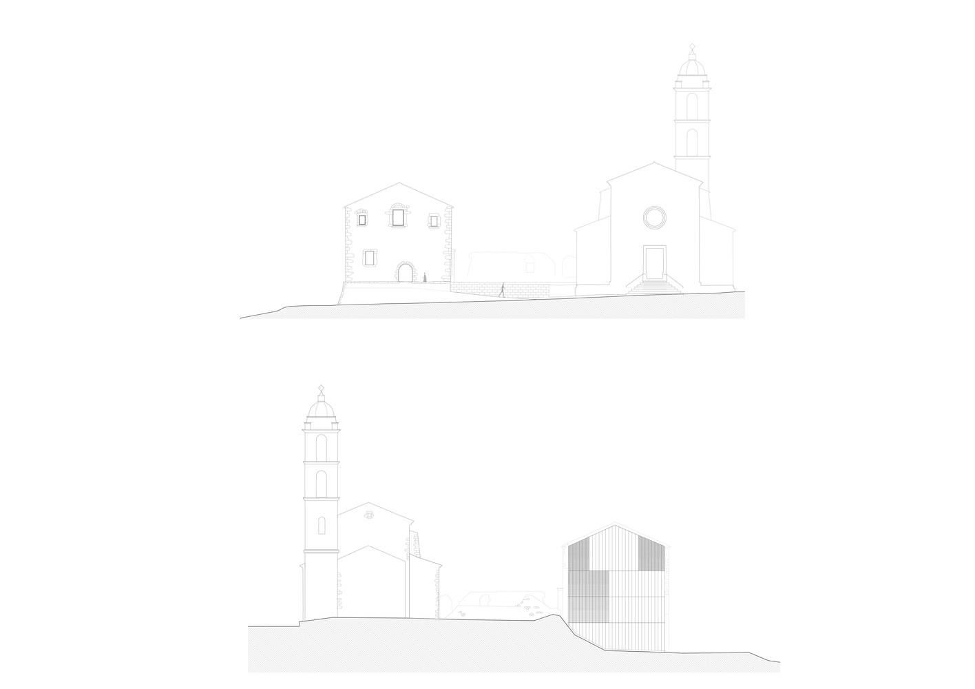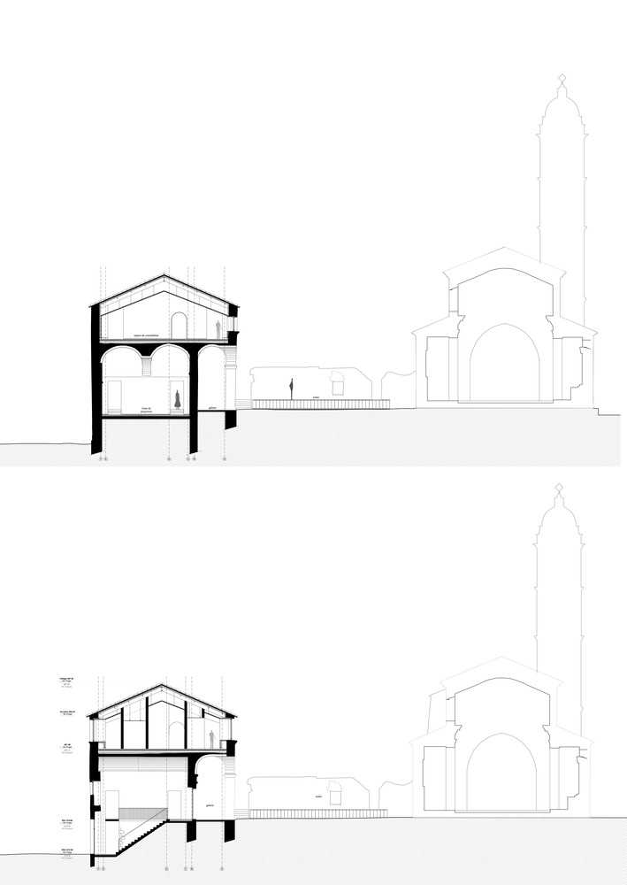 Nature has grown inside the building, Siamese nature slipped between the stones and then transformed into plant armor that protects against erosion and collapse. A fig tree is included in the facade. The wood, the roots become structural replaced the lime. An essential component of the historic monument, we have honored this nature which will have long protected the dormant building before its resurrection. Amelia Tavella has chosen to keep the ruins and replace the torn part, the phantom part, in copper work which will become the House of the Territory.