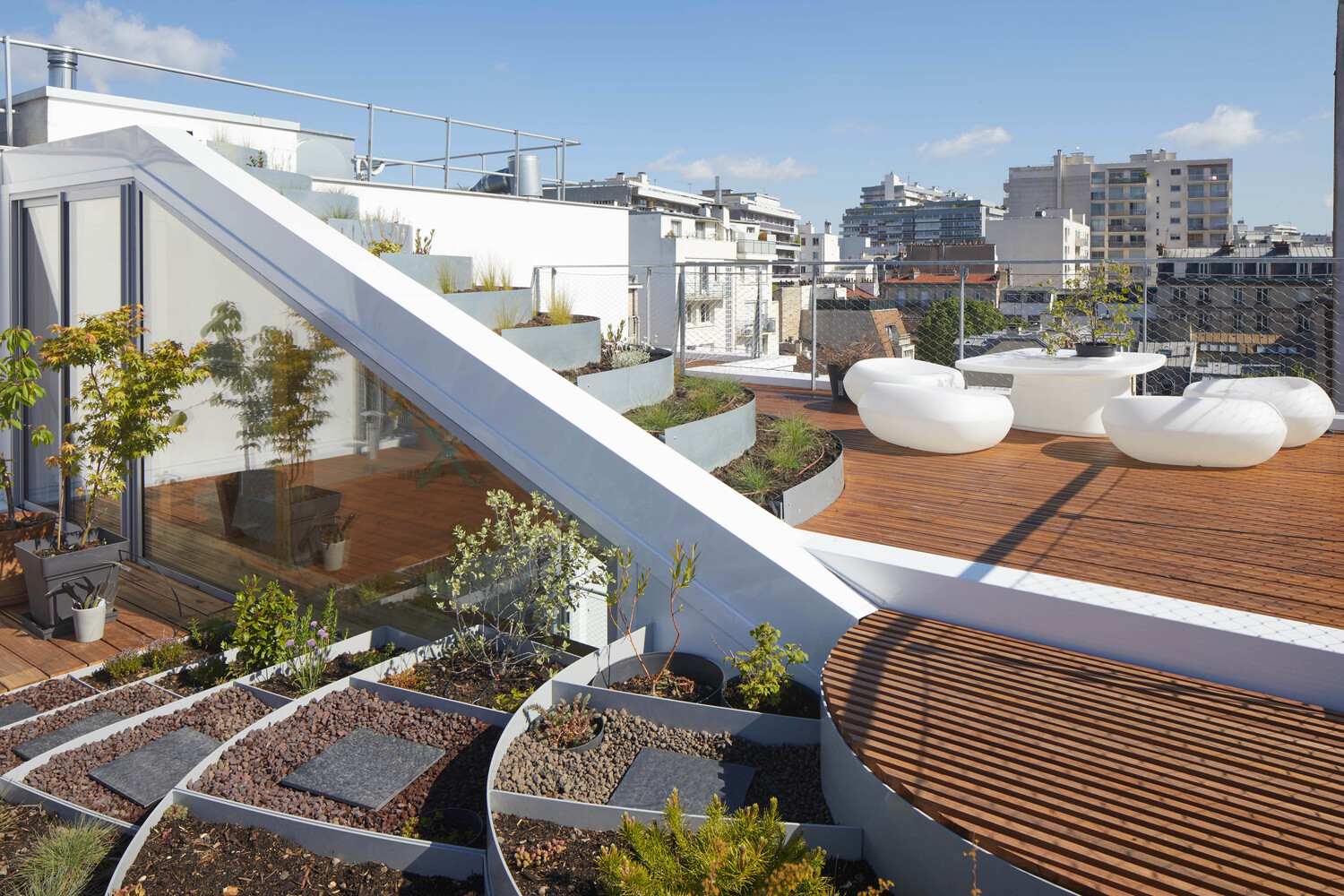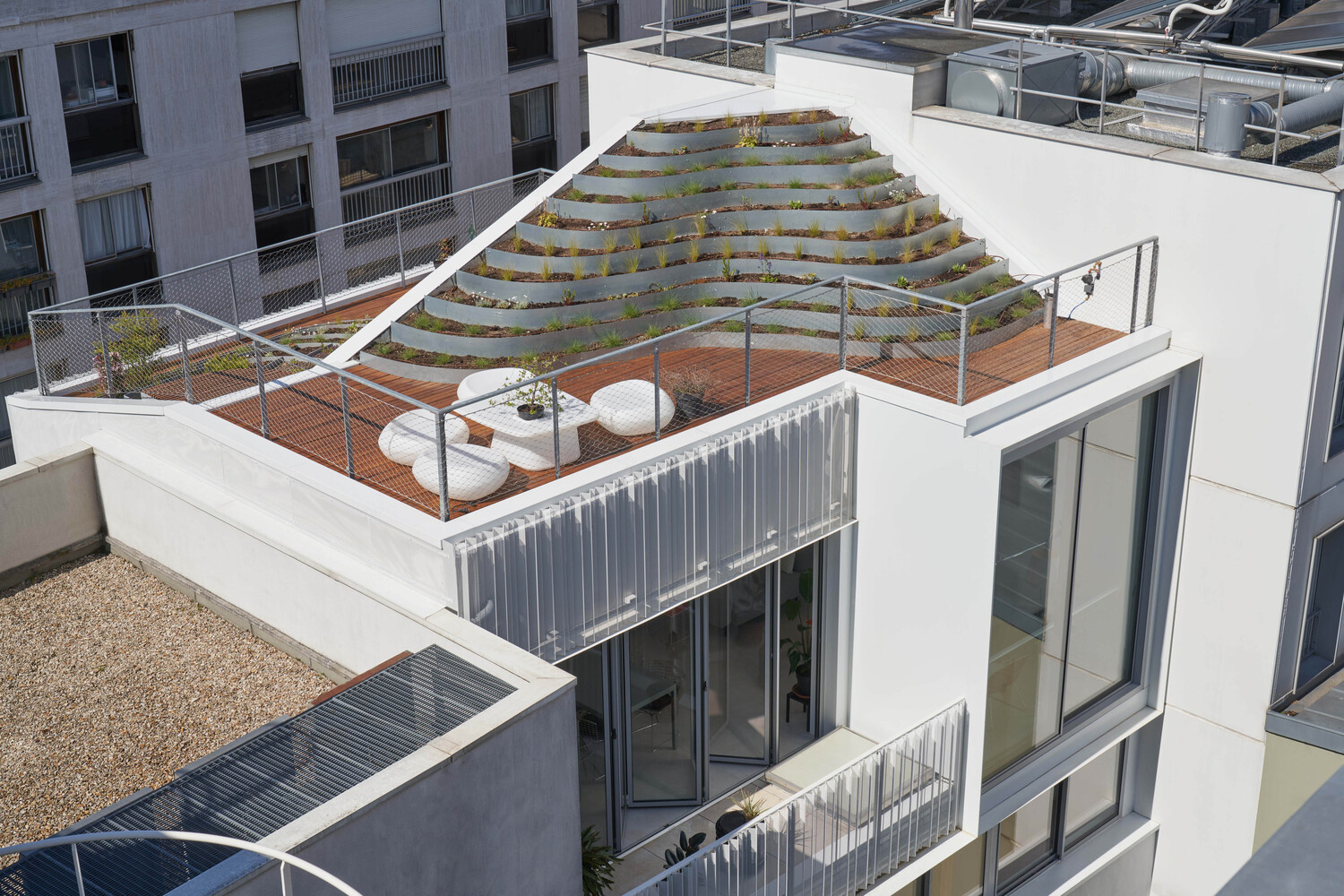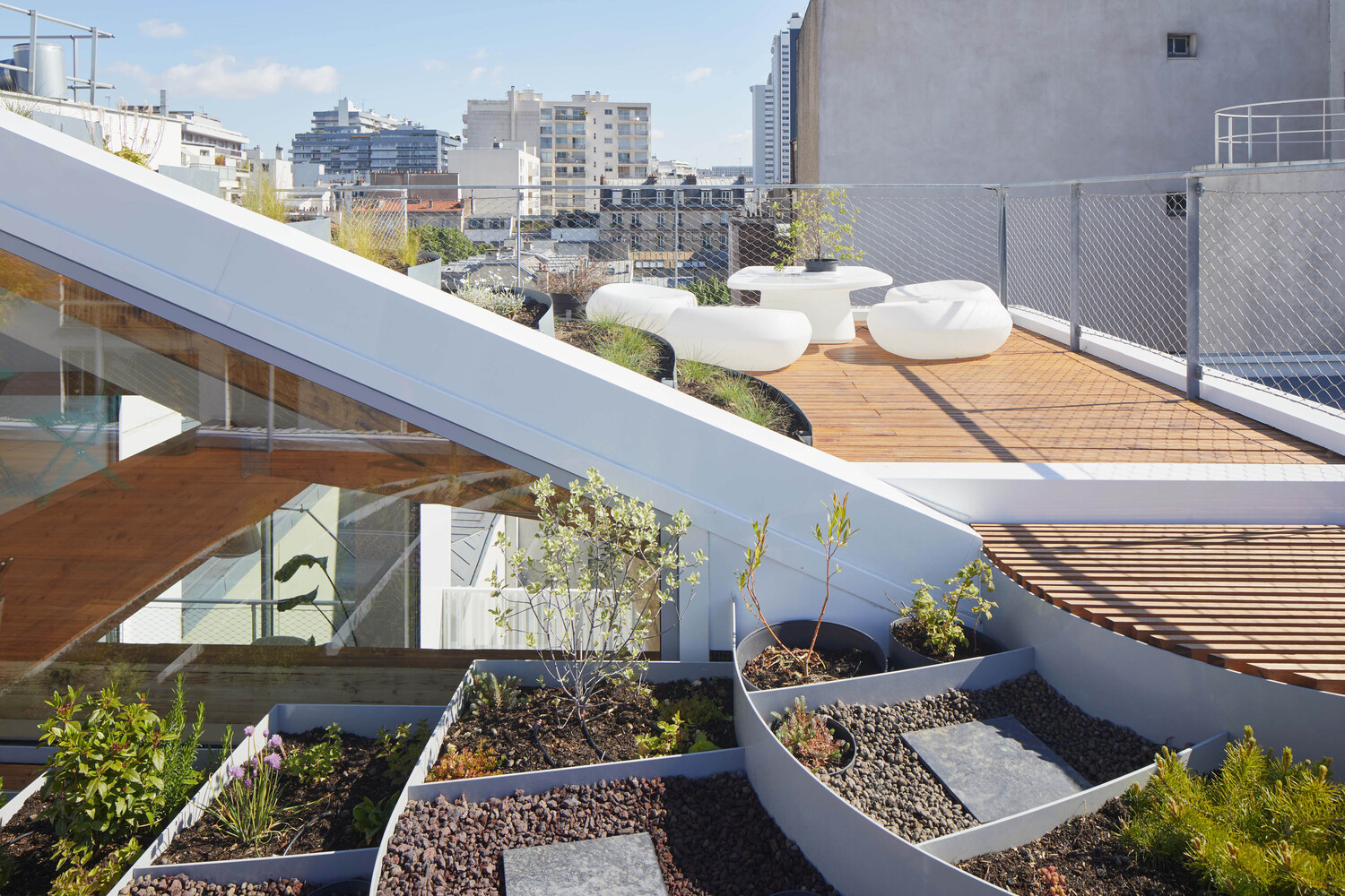 The architectural intervention was carried out in accordance with several objectives: to build light and durability, to carry out the work at a constrained cost, and to ensure a good integration into the urban landscape. The organization of the site made it possible to keep the occupants of the three lower levels in place. Work began in May 2020 at the end of the first containment was completed in February 2021.