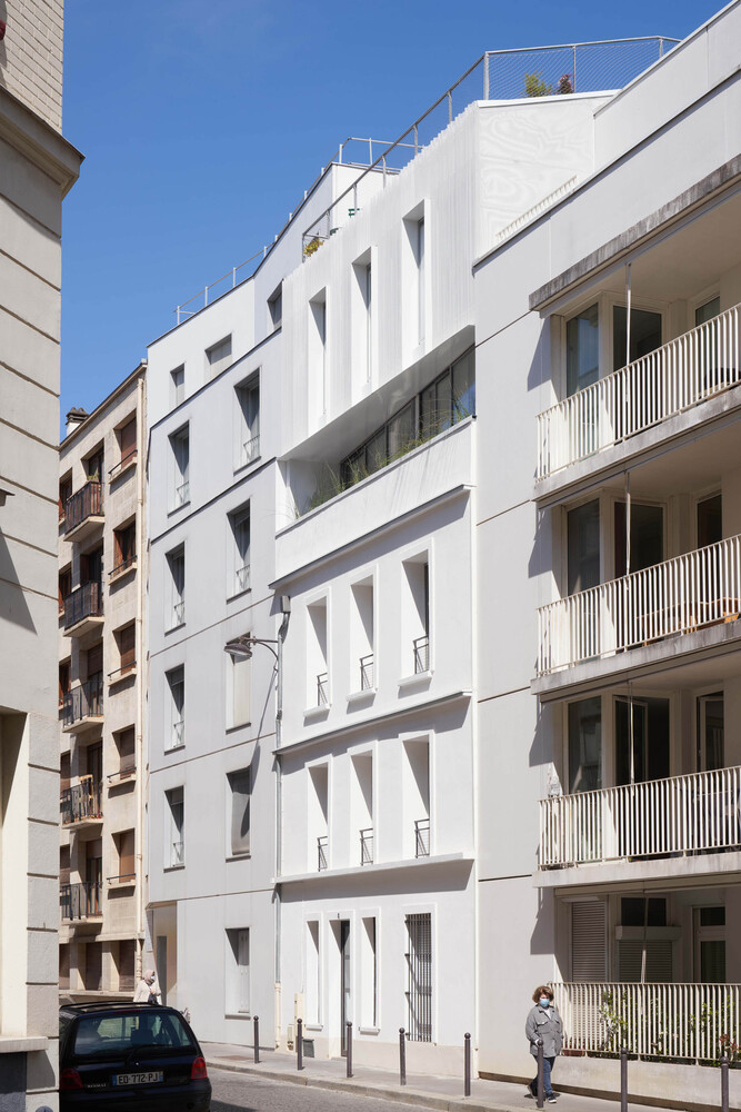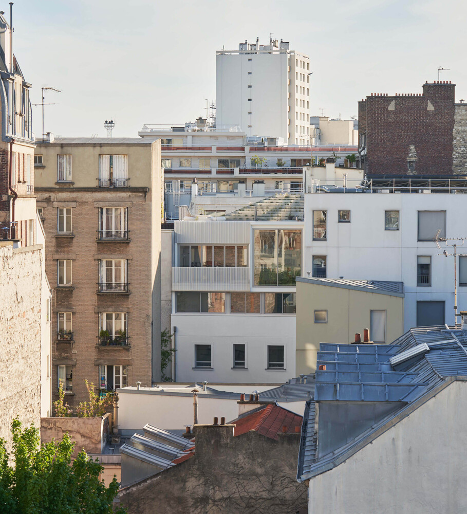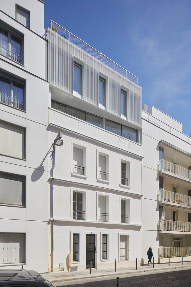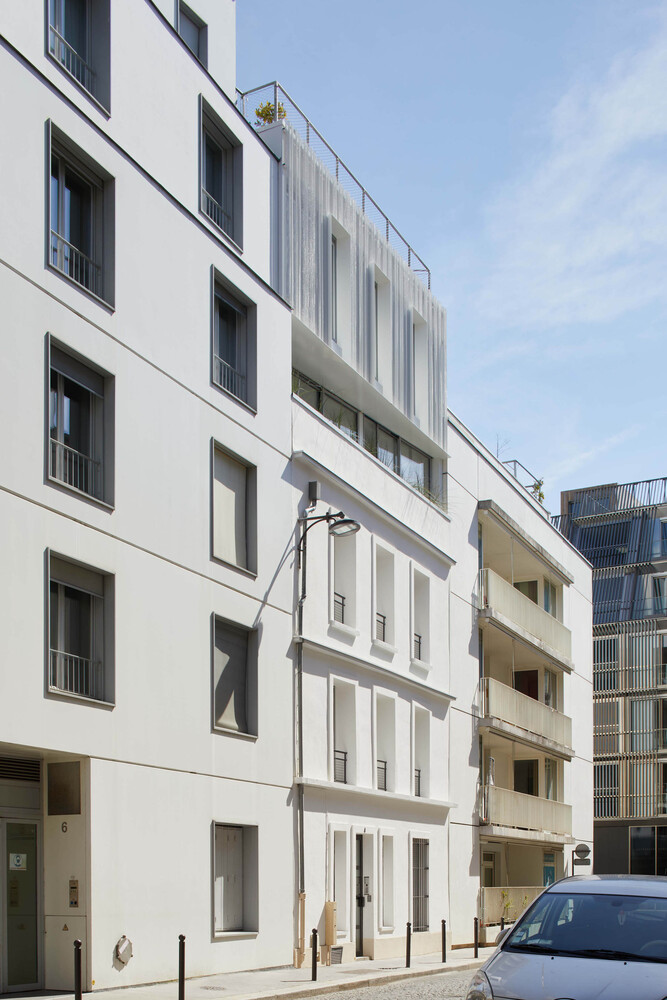 In Paris, the scarcity of land partly explains the city’s low housing production capacity. The research for alternatives to densification must be encouraged. The Rotunno Justman architectural firm has just raised a small building in the 15th arrondissement. Through the accuracy of the architectural intervention, the project requalifies the existing building and contributes to harmonious densification of the district, in connection with its skyline.