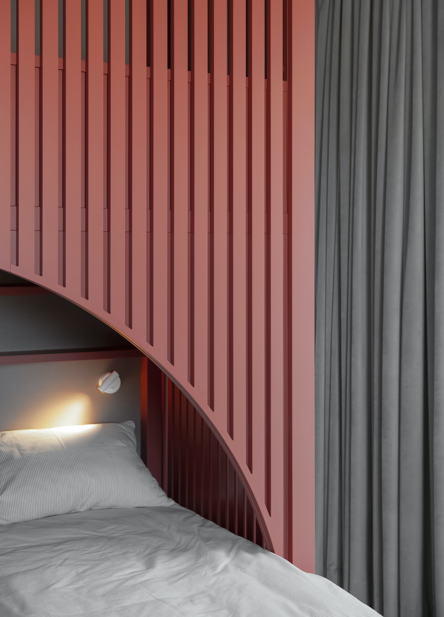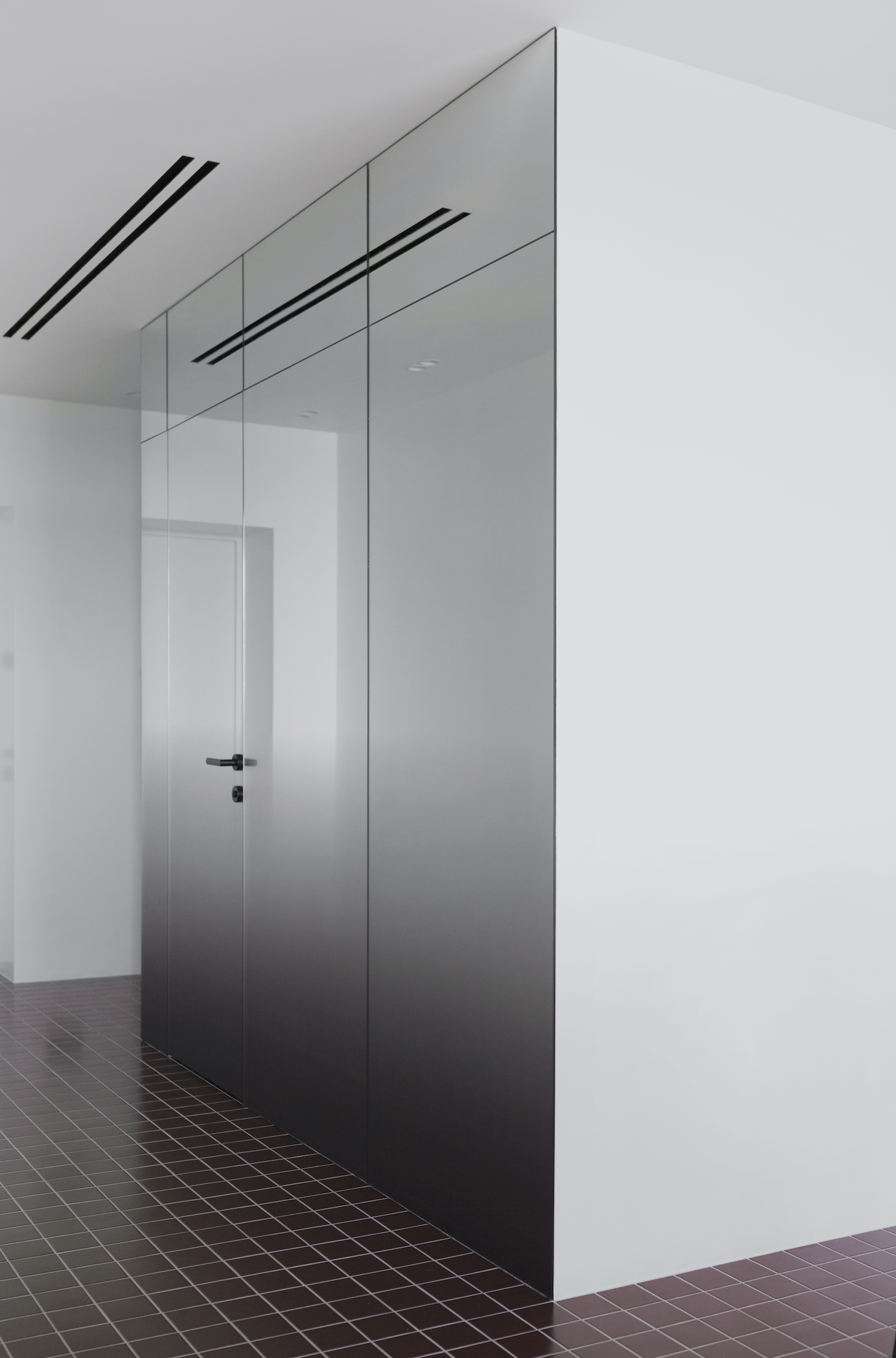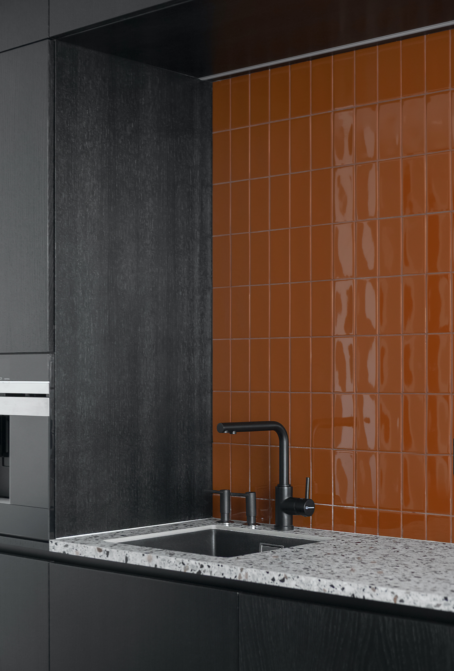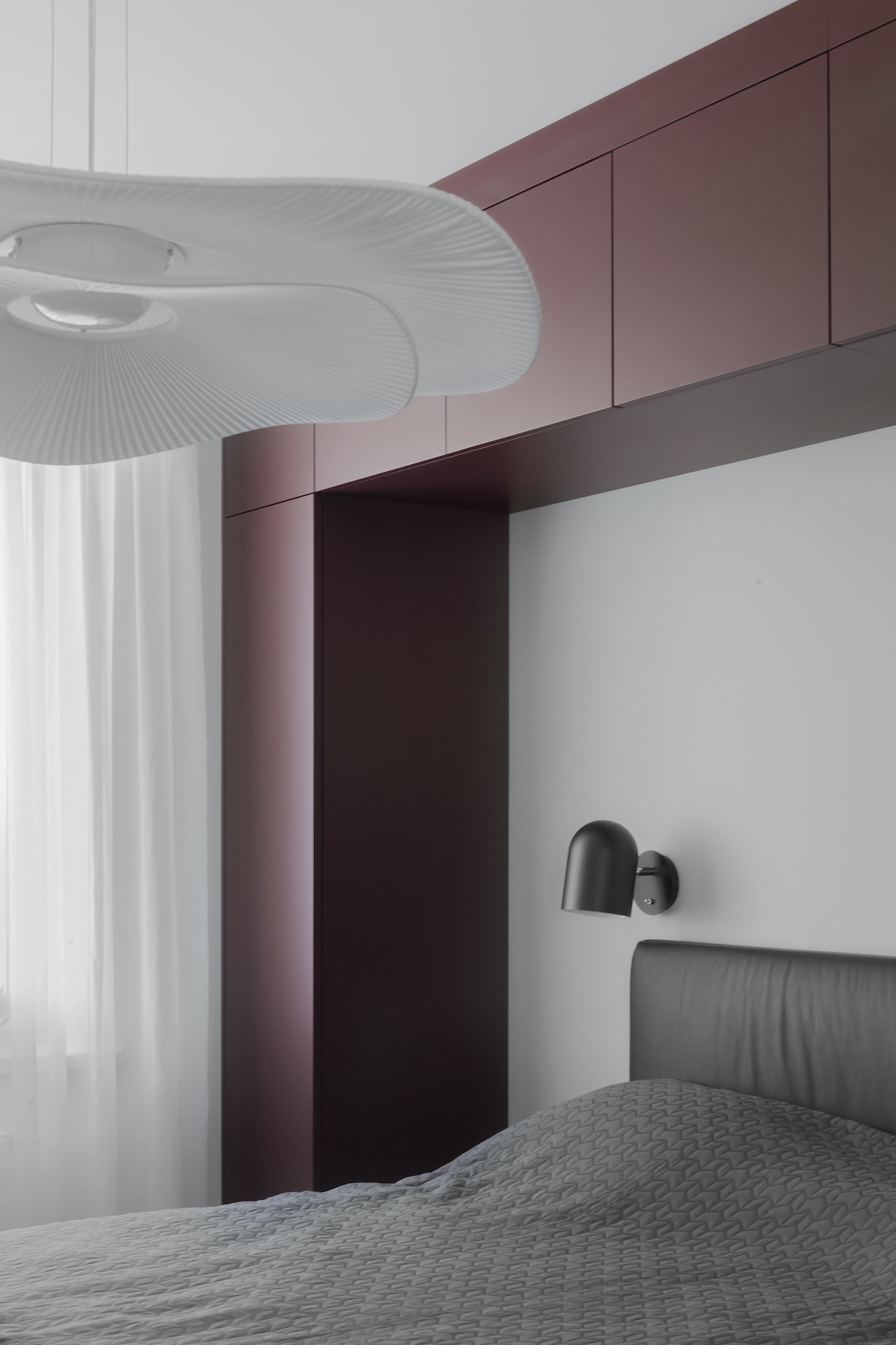 NB11 is a minimal apartment located in Minsk, Belarus, designed by ZROBIM architects. While working on the project, the task was to create not just a functional interior, which is always very important for architects but also to work on the mood and create a unique image –lively and photogenic. The apartment is a mix of architectural elements, clean lines, and composition, which are superimposed on a unique solution in terms of materials and color palette. Together, these techniques create the mood and achieve the desired balance between function and form. When creating the layout of the kitchen – living room – the most important room in which the family will spend the most time, they were guided by the principle of symmetry and linear repetition of space.