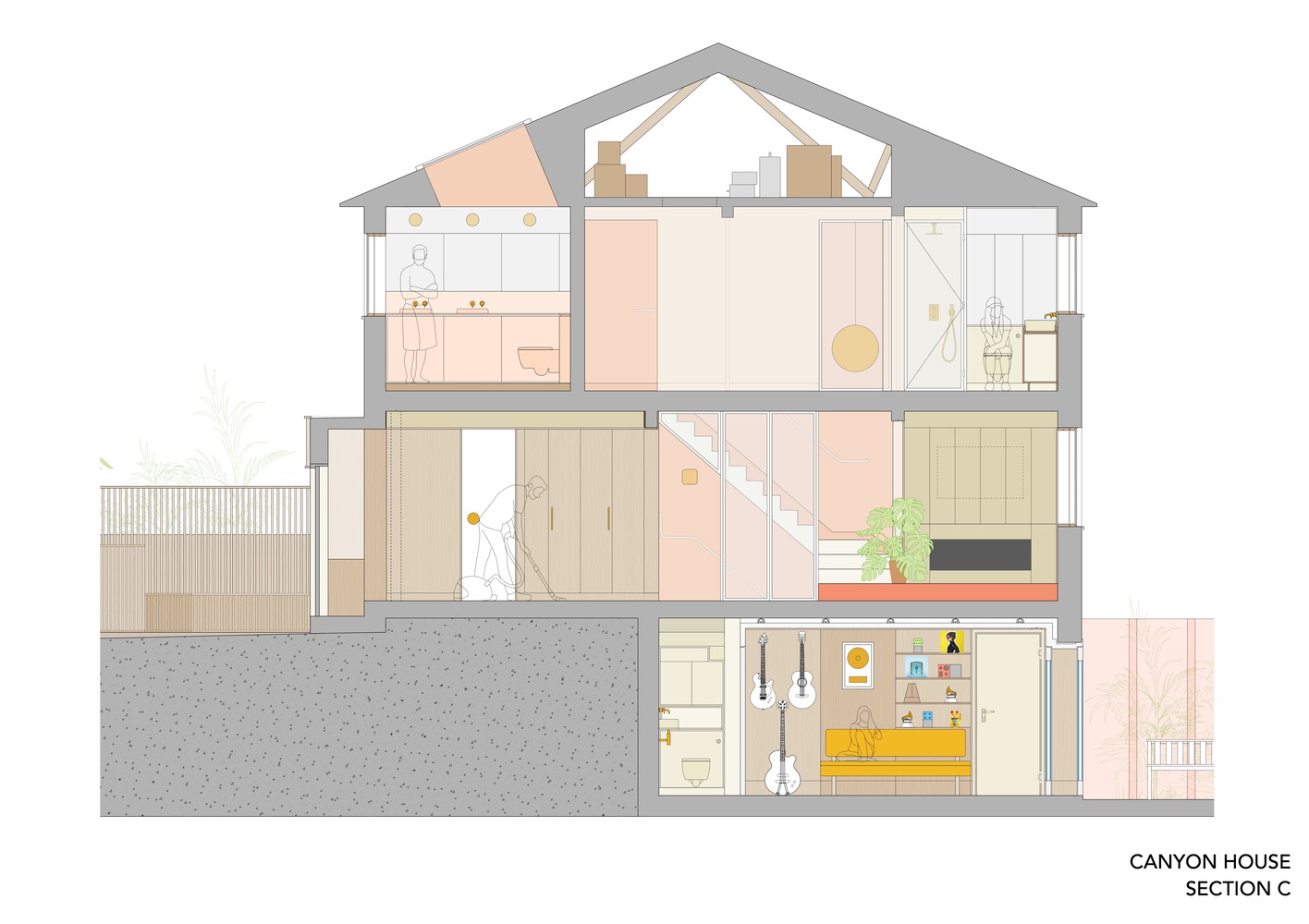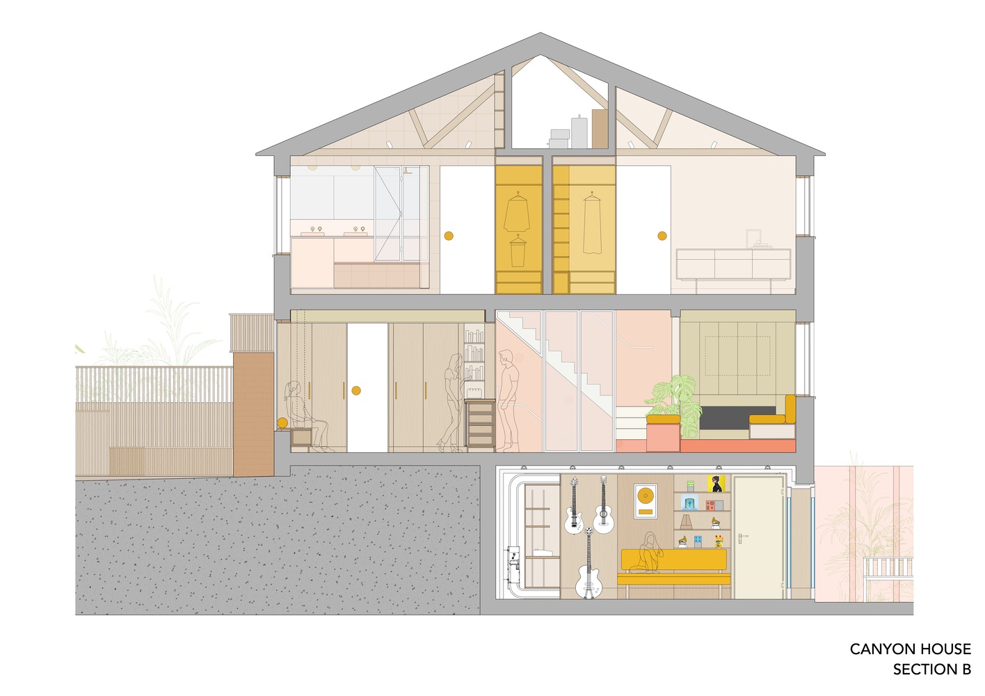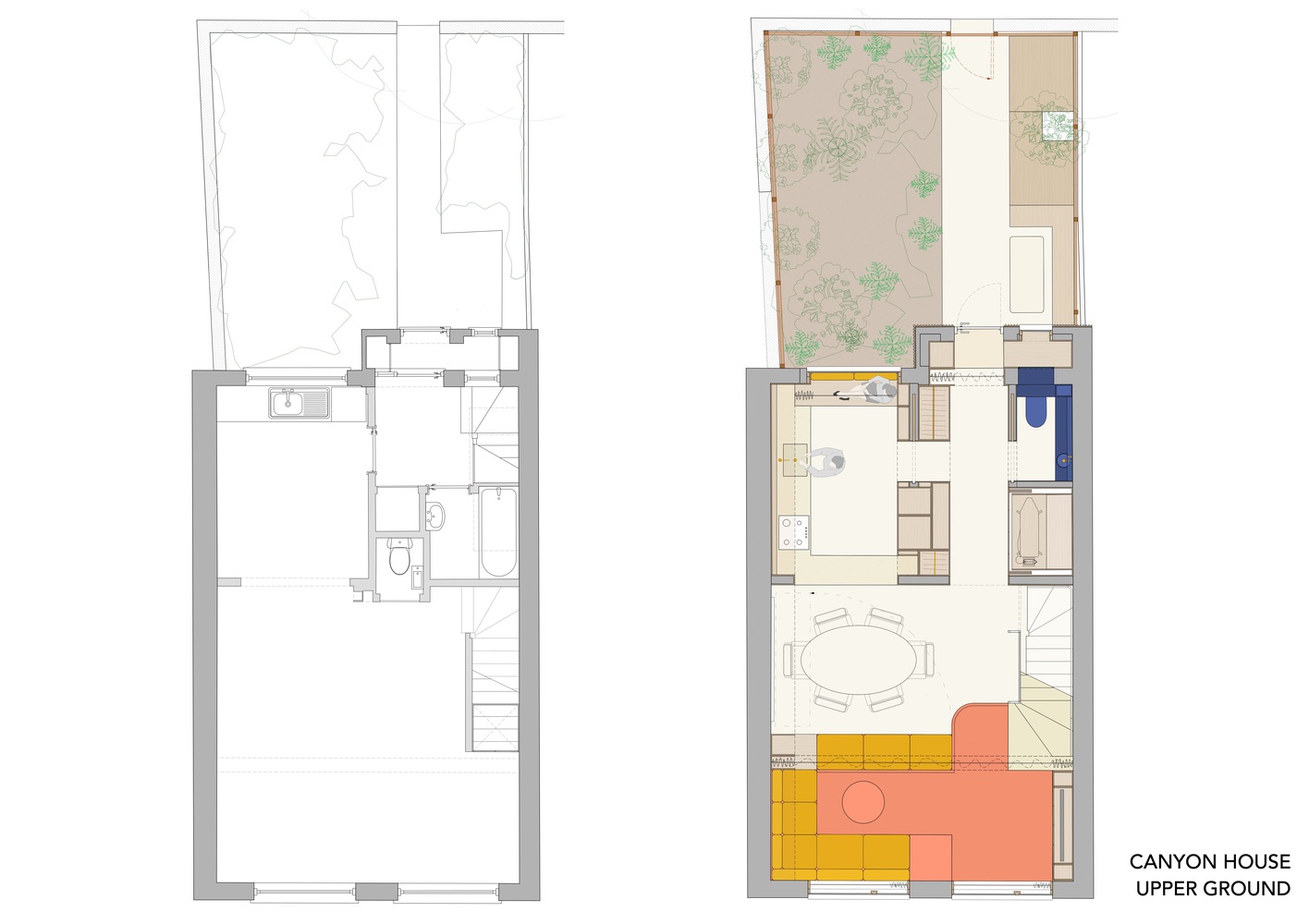 Studio Hagen Hall has transformed a North London townhouse-turned-bedsit into a bright and textural 1970’s California-inspired home complete with a recording studio for a young musical couple. Recording artists Ben Garrett and Rae Morris fell in love with the bones, location, and well-established garden of the townhouse and immediately sought the expertise of Studio Hagen Hall after discovering their work online. Iconic architecture has played a key role in the brief. The clients drew on themes and designs from the Eames House and the work of modernist architect John Lautner. The brief envisioned Canyon House as a home with a feel-good 1970’s atmosphere and a space that would be flexible to suit both intimate and sociable occasions, with strong visual connections throughout.