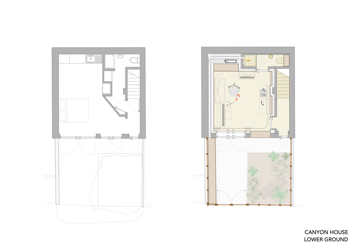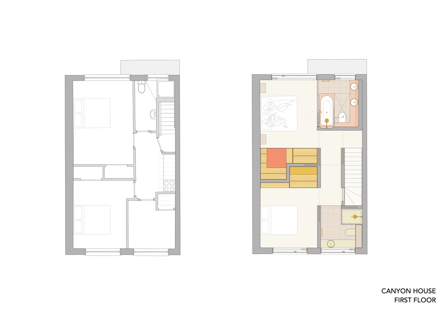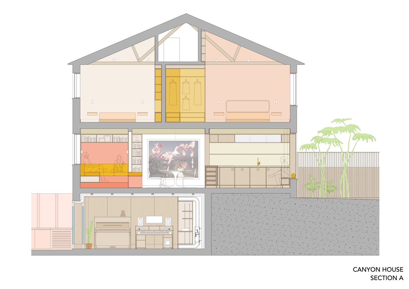 Studio Hagen Hall has transformed a North London townhouse-turned-bedsit into a bright and textural 1970’s California-inspired home complete with a recording studio for a young musical couple. Recording artists Ben Garrett and Rae Morris fell in love with the bones, location, and well-established garden of the townhouse and immediately sought the expertise of Studio Hagen Hall after discovering their work online. Iconic architecture has played a key role in the brief. The clients drew on themes and designs from the Eames House and the work of modernist architect John Lautner. The brief envisioned Canyon House as a home with a feel-good 1970’s atmosphere and a space that would be flexible to suit both intimate and sociable occasions, with strong visual connections throughout.