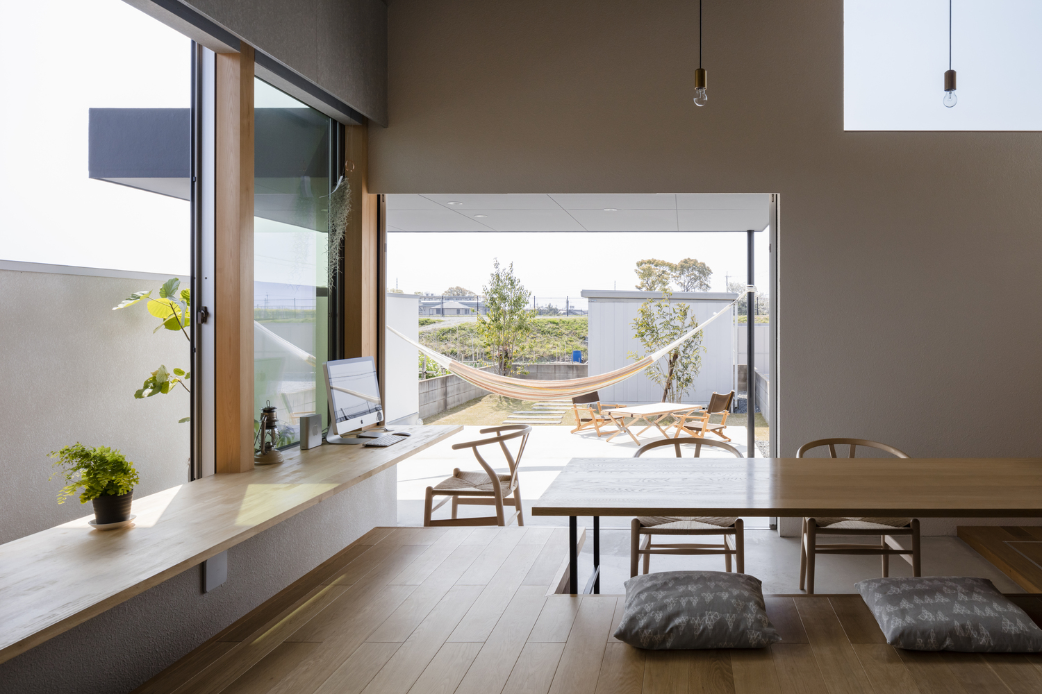 The space is designed to be a place where people can sit, talk, study, store, lie down and enjoy the outside, crossing the large spatial scale that covers the whole space and the physical and furniture scale that accompanies human activity. A space that allows for a variety of activities and a choice of places, creates a comfortable distance and time for each other, and leads to a richness of life even in the face of unpredictable changes.