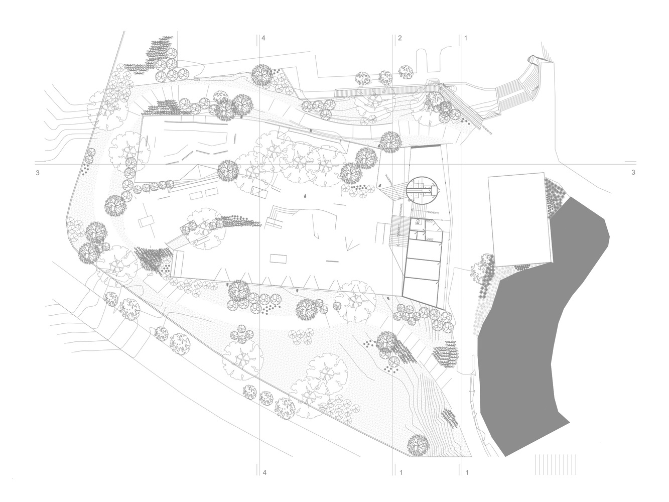 With the task of complementing this offer, in the northern section of the park, where it was initially contemplated to provide arts teaching services and under the order of designing a neighborhood garden, the work team of the School of Architecture of the National Autonomous University of Mexico decided to establish a space for contemplation and interaction for different generations with recreational and sports activities, where people of different ages could perform outdoor entertainment activities; in the center of these activities would be Skating, a sport that is gaining interest among the youth of the City since in this area it has many followers and currently does not have nearby spaces to practice it.