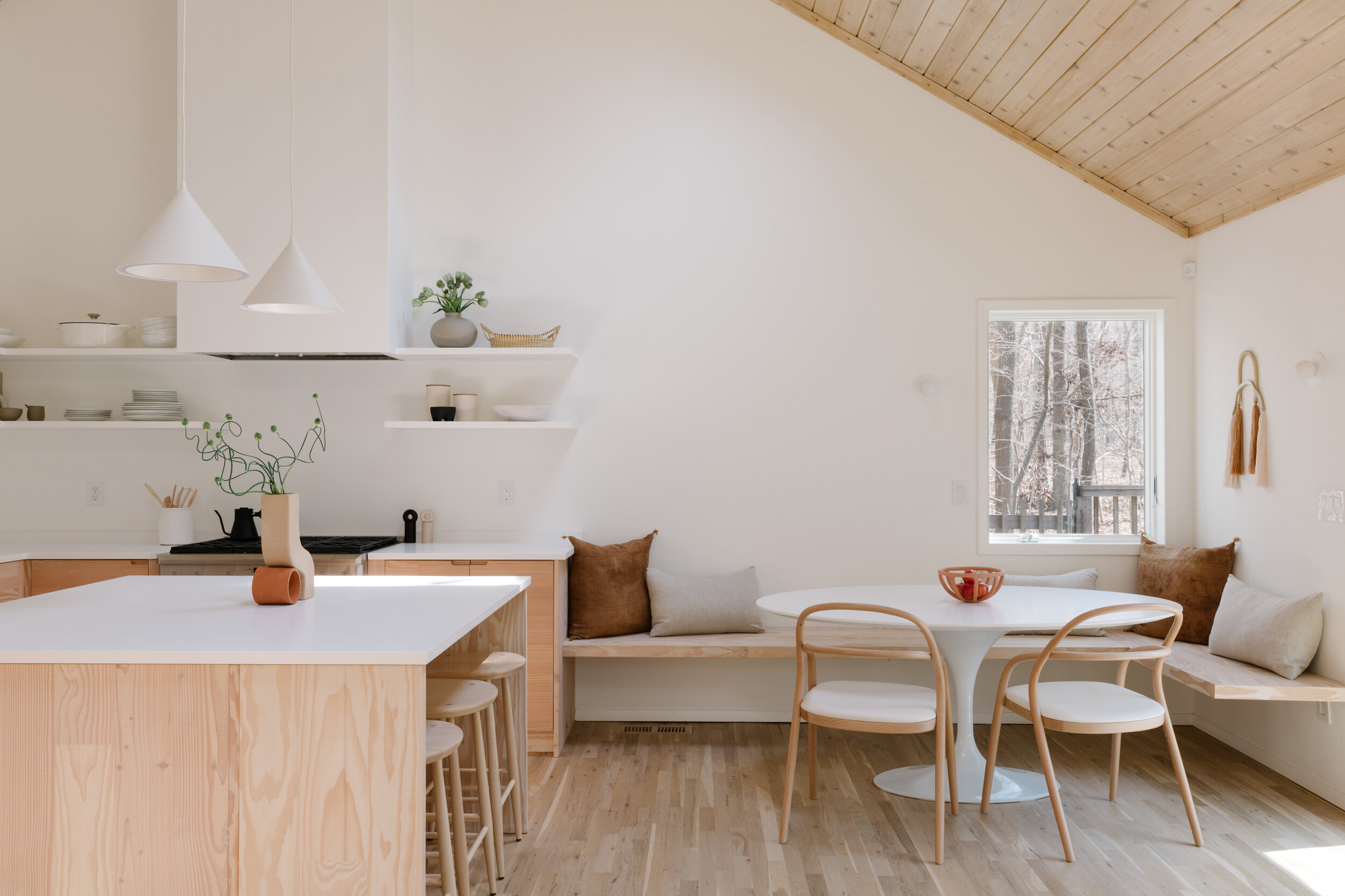 뉴욕 Amagansett에 위치한 미니멀리즘 주택, Amagansett Summer Home은 Studiofauve가 디자인 했습니다. 거실공간은 맞춤형 빌트인 블랙퍼스트 누크공간과 함께 개방형 레이아웃으로 구성됩니다. 클래식한 스칸디나비아 가구와 일본가구가 아늑하면서도 세련된 분위기로 인테리어를 장식합니다.