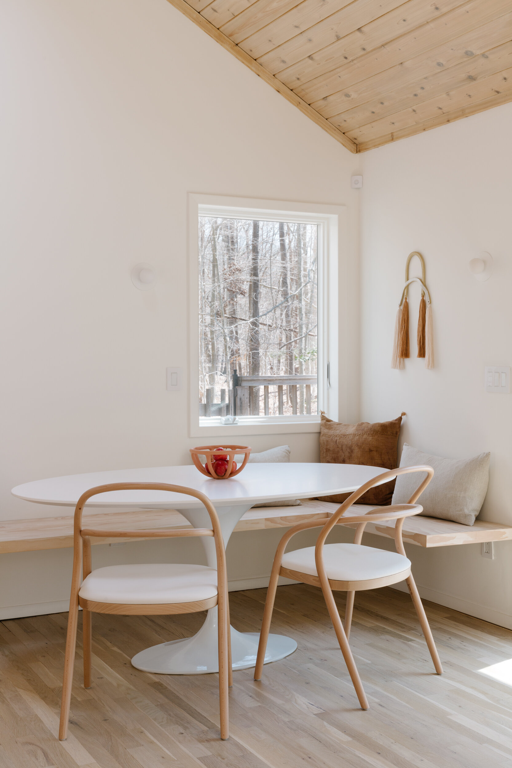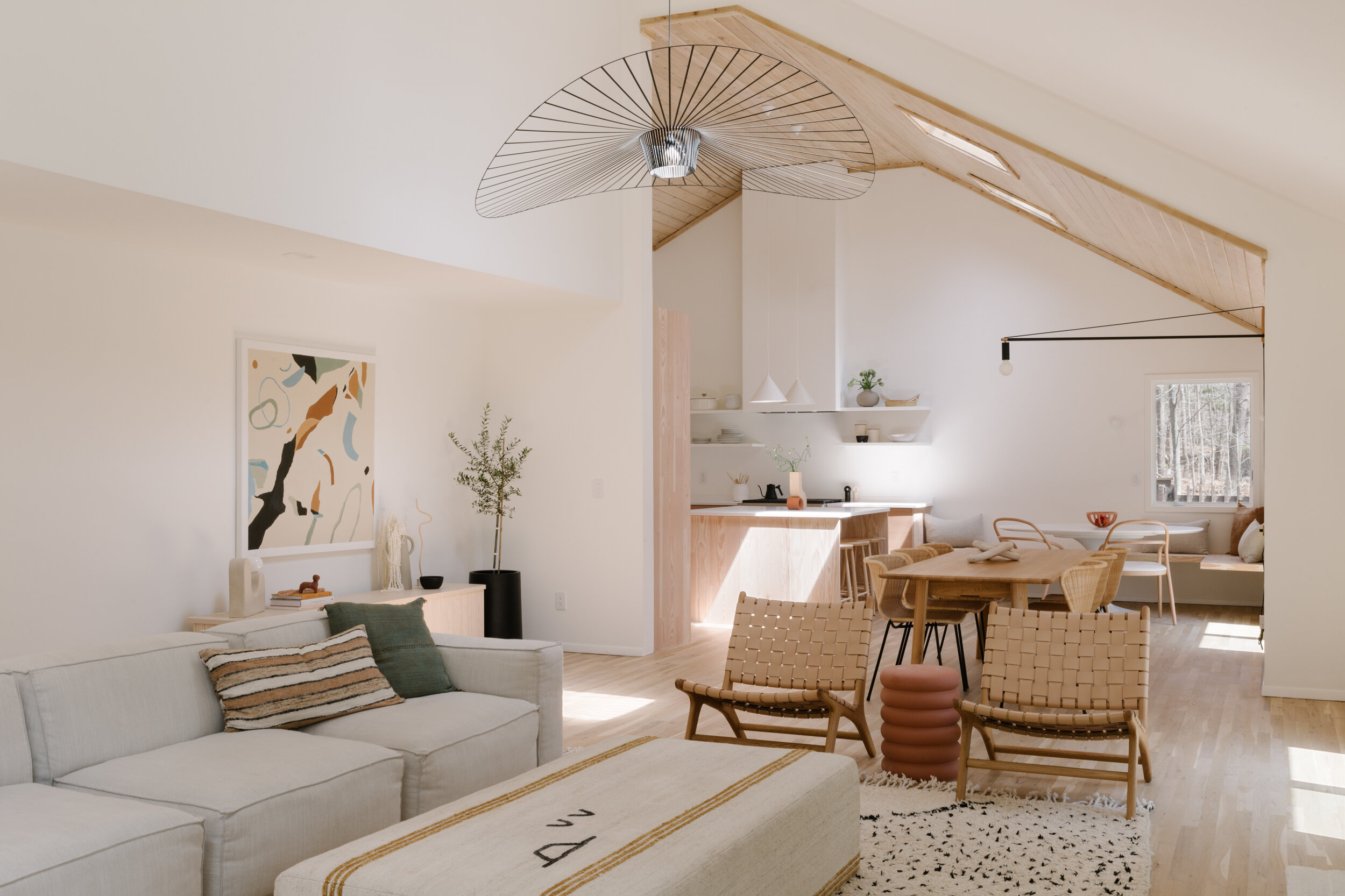 뉴욕 Amagansett에 위치한 미니멀리즘 주택, Amagansett Summer Home은 Studiofauve가 디자인 했습니다. 거실공간은 맞춤형 빌트인 블랙퍼스트 누크공간과 함께 개방형 레이아웃으로 구성됩니다. 클래식한 스칸디나비아 가구와 일본가구가 아늑하면서도 세련된 분위기로 인테리어를 장식합니다.