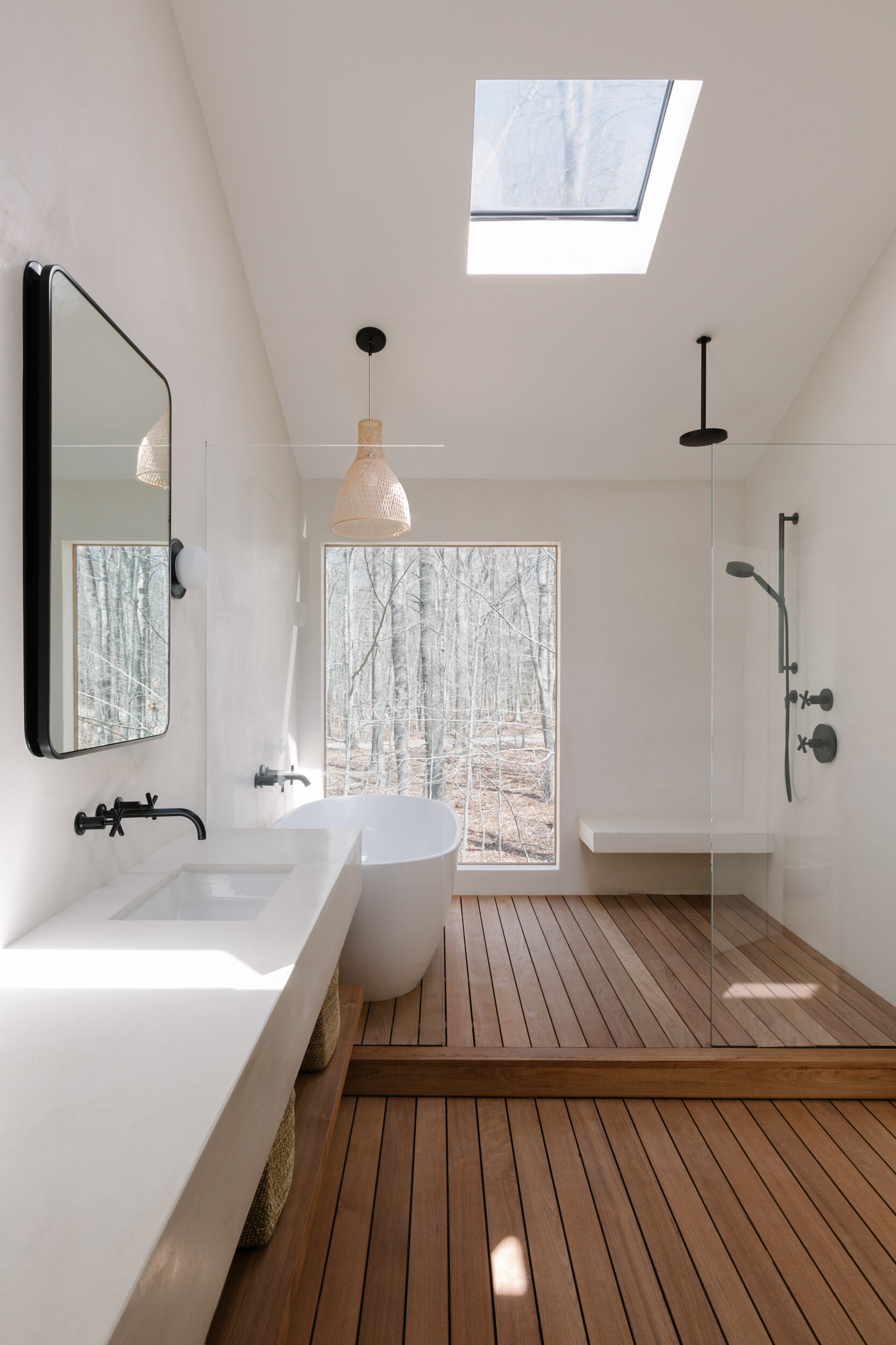Amagansett Summer Home is a minimalist house located in Amagansett, New York, designed by Studiofauve. The main living area features a open layout with kitchens by Reform adjacent to a custom built-in breakfast nook. Light and warm materials, specifically Douglas Fir, create a warm and airy atmosphere. Classic Scandinavian and Japanese furniture adorn the interiors with a cosy yet sophisticated temperament.