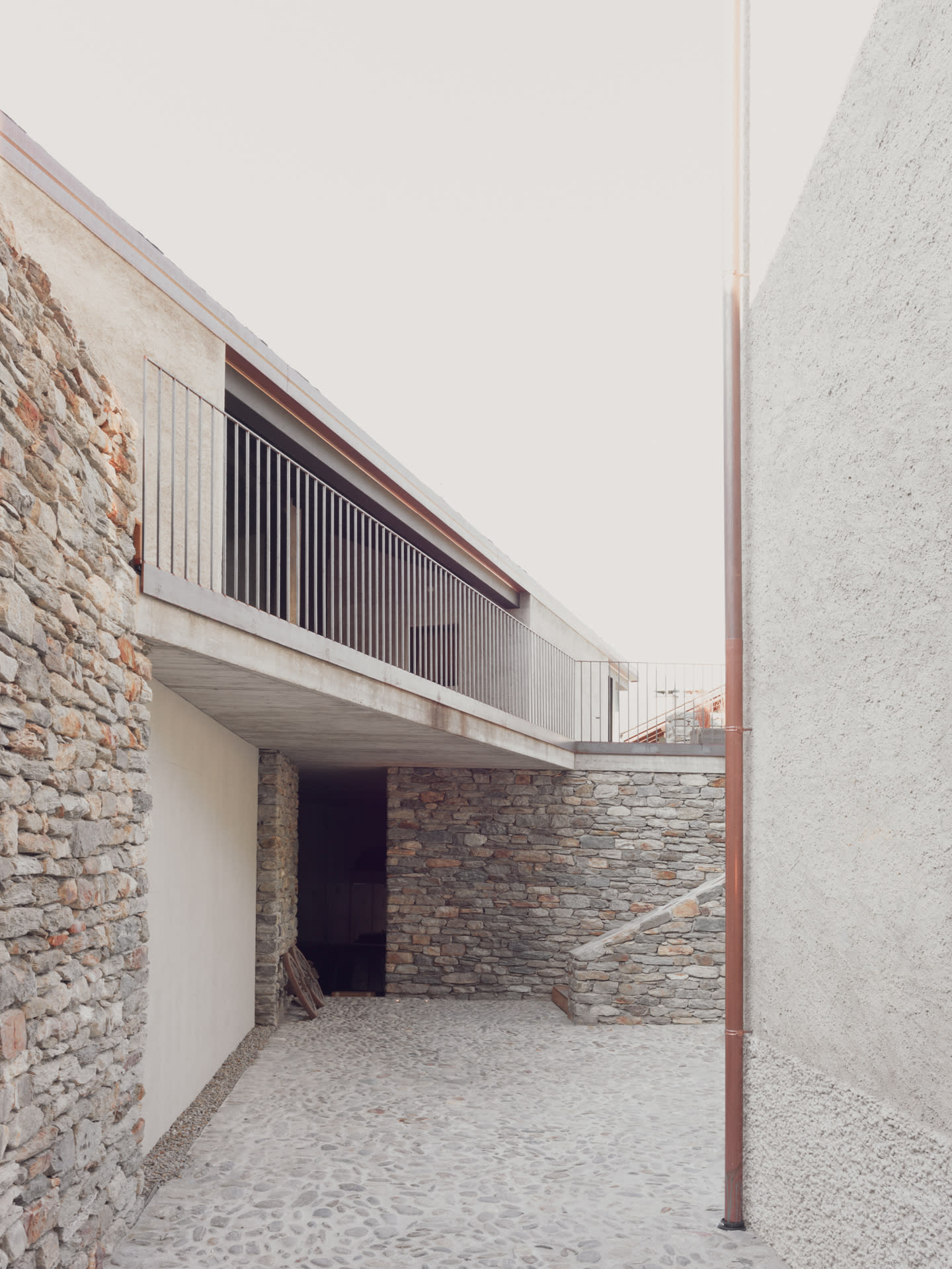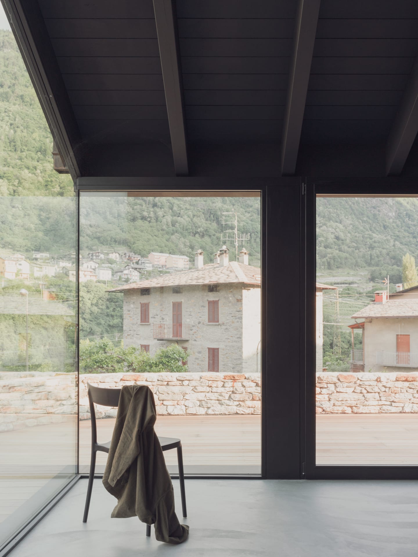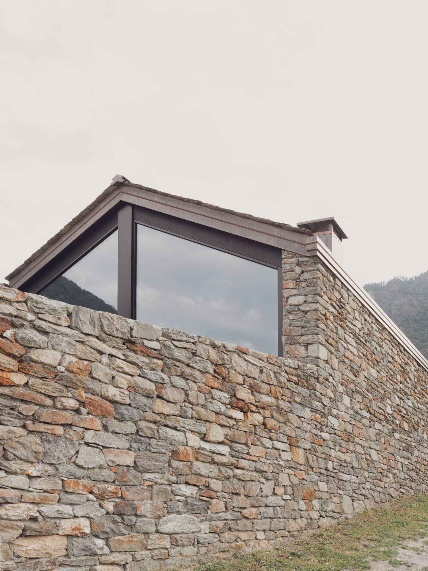 The particular conformation of the lot, the various perspective openings on the territory, the proximity of the road on the west side and of the Sentiero Rusca on the east side, led to the determination of a design choice that could satisfy the requests of the client without strongly distorting the perception of the context. characterized by traditional shapes and materials. In order not to impose itself unevenly, the desire was born not to build in height and to request the possibility of intervening on the border by setting part of the building on the site of a ruin. This pre-existence was distributed on two levels, formerly used as a stable and at the time of the intervention it was in disuse and structural degradation.