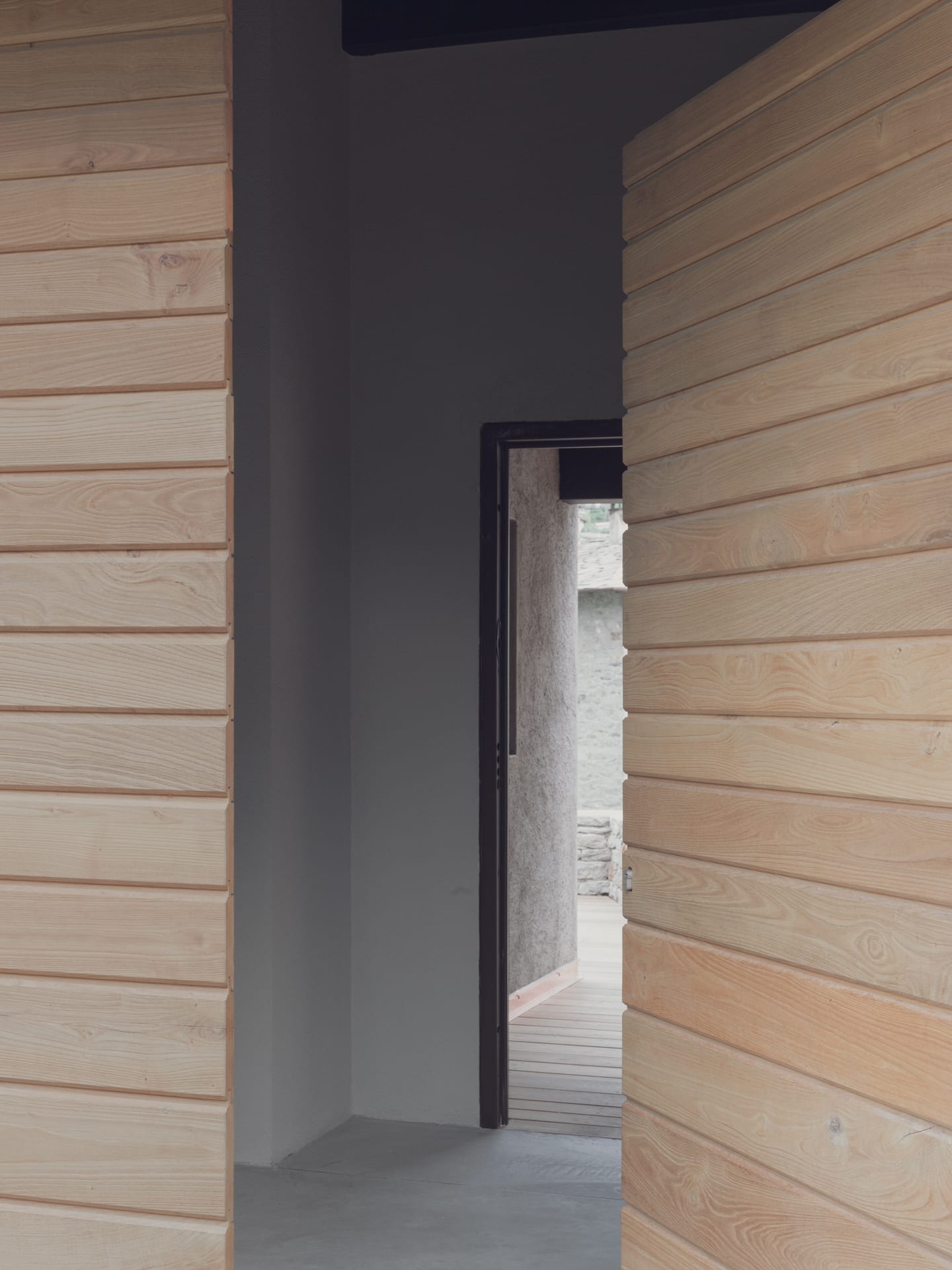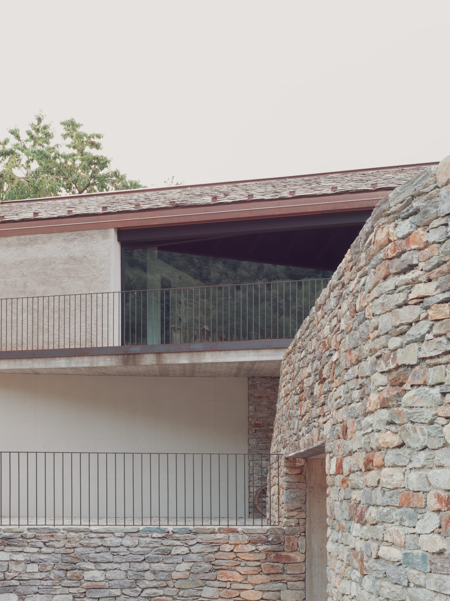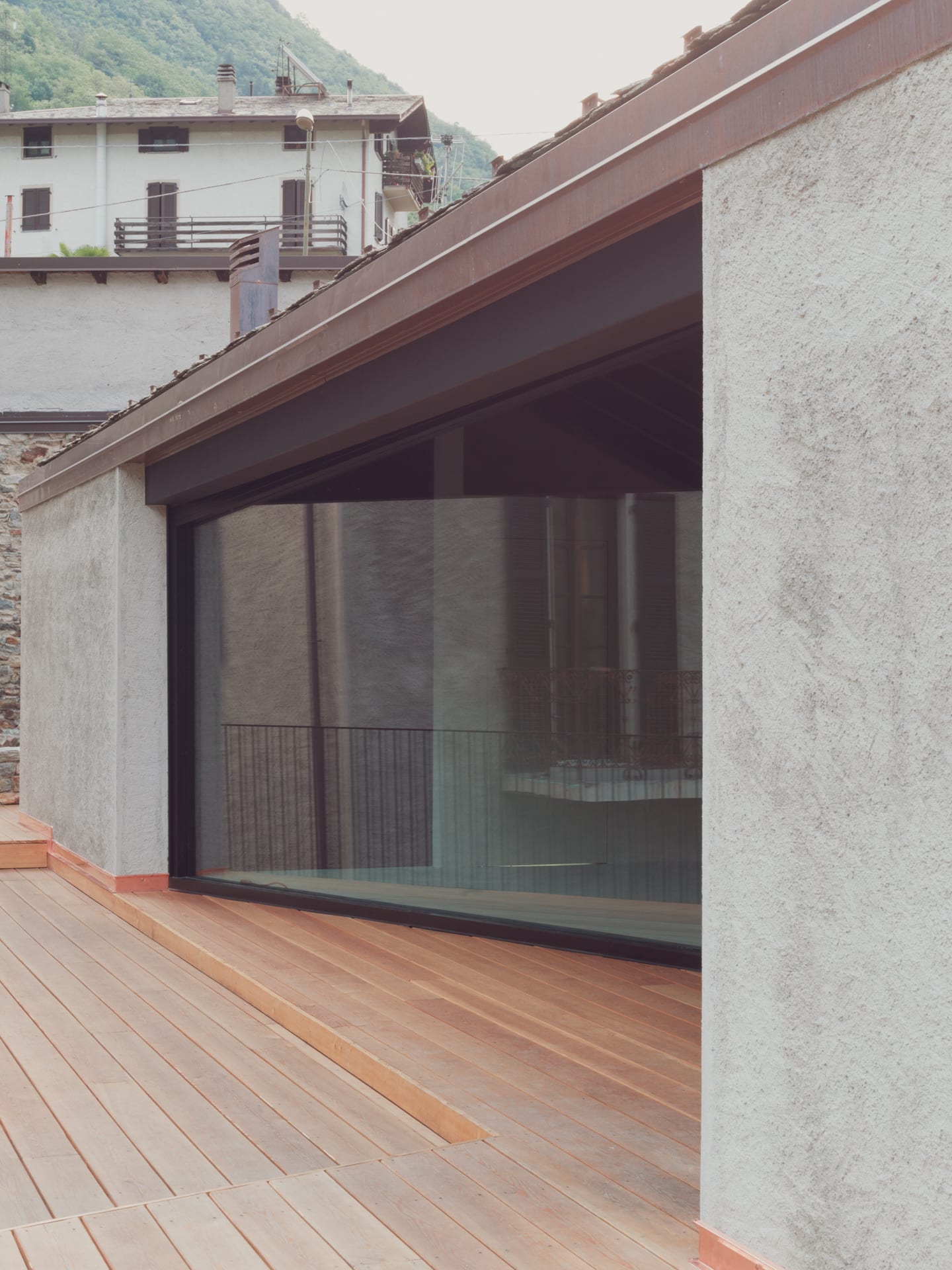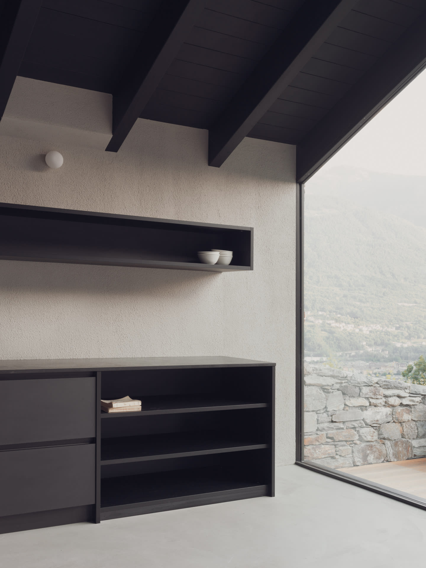 The particular conformation of the lot, the various perspective openings on the territory, the proximity of the road on the west side and of the Sentiero Rusca on the east side, led to the determination of a design choice that could satisfy the requests of the client without strongly distorting the perception of the context. characterized by traditional shapes and materials. In order not to impose itself unevenly, the desire was born not to build in height and to request the possibility of intervening on the border by setting part of the building on the site of a ruin. This pre-existence was distributed on two levels, formerly used as a stable and at the time of the intervention it was in disuse and structural degradation.
