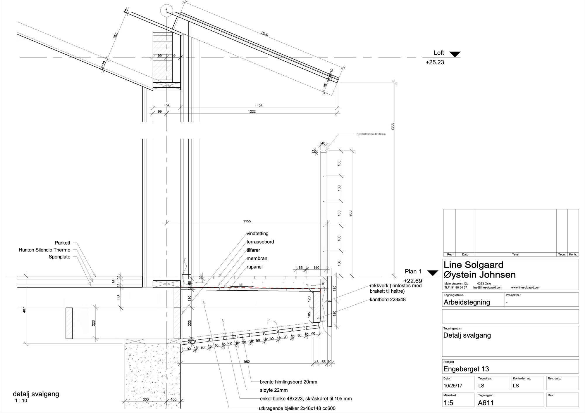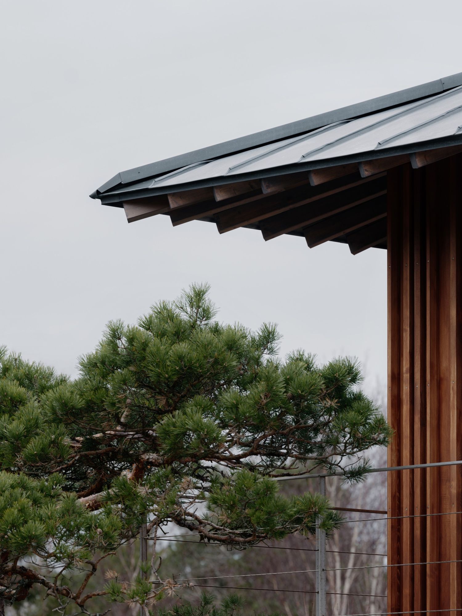 Cladding is in cedar and has different widths. There are also pillars with two different profiles. One is square and the other is deeper and concave. It provides a rich play of light and shadows in the facade. The profiles are designed and specially made at a local sawmill. The outside gallery is clad in burnt cedar to emphasize the envelope of the space within