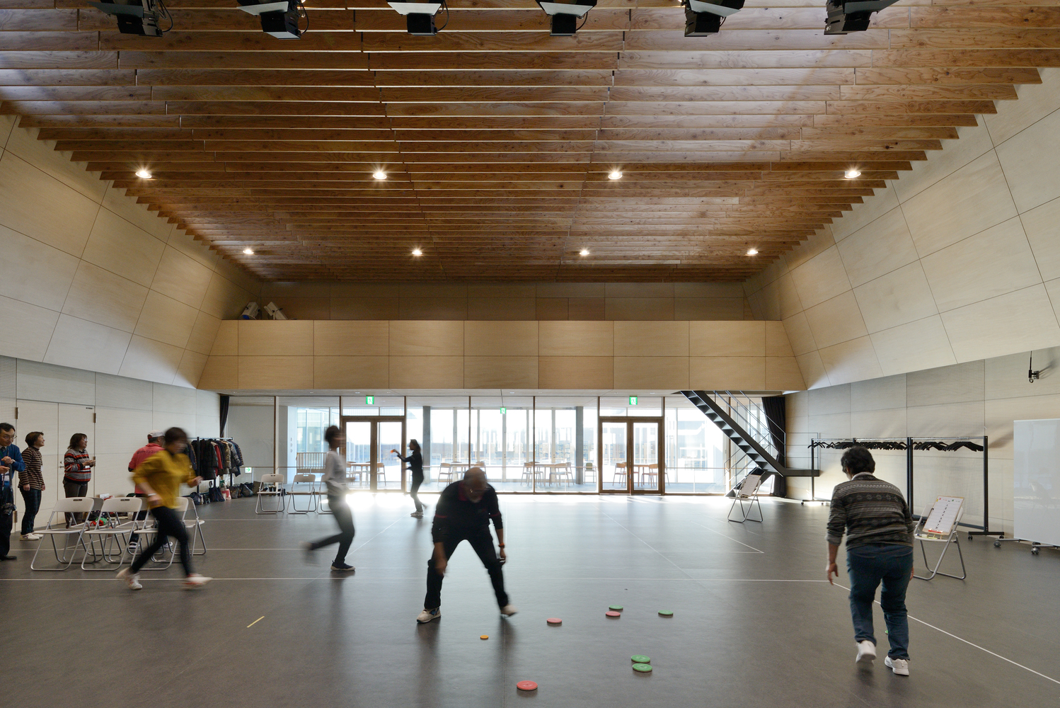 In Takasu Town, which is adjacent to Asahikawa City in central Hokkaido, two districts form an urban area as dormitory towns for Asahikawa, and three districts are spread across rural areas. This is a design for rebuilding the Residents Center in the central urban area of Takasu District. While maintaining its function as a public hall for the Takasu District, it was planned to also function as a library that all Takasu residents can use, and to become a new town base where the various generations can interact.