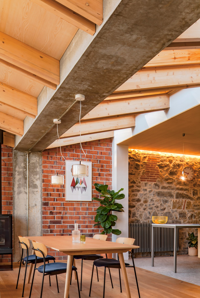 L’Esquirol House is situated in a row house of several stories in the village of the same name in the county of Osona. Francesc, one of the children of the house’s owners, contacted Sau Taller d’Arquitectura, a Catalan practice with a great deal of experience in this type of intervention, to turn the ground floor into a separate dwelling, independent of the rest of the building. Francesc’s objective was to live in “a house with large shared spaces, with lots of light and easy access”, and for his mother to continue living independently. This meant that the biggest challenge of the project was climate control, addressing both lighting and ventilation..