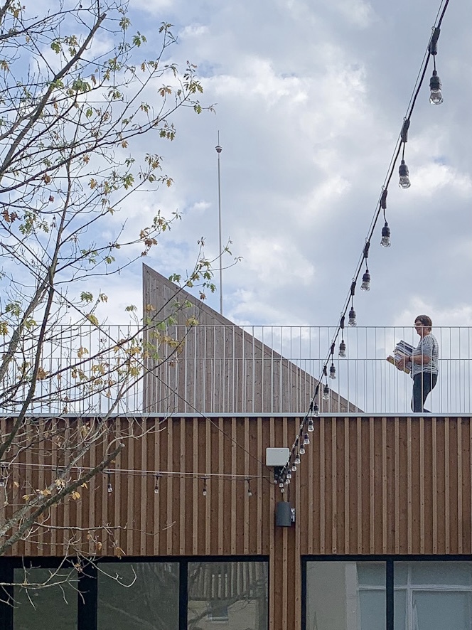 각 교실 지붕 위에 설치된 경사지붕 천창을 통해 일정한 자연채광 유입을 확보합니다. 그리고 내부로 유입되는 빛의 변화에 따라 달라지는 공간의 깊이를 탐구할 수 있는 시간을 선물합니다. 창문 또한 아이들의 놀이공간에 맞추어 설치, 확장된 공간감을 유지합니다. 두개의 출입구를 통해 연결되는 내부 테라스 공간은 그린 중정, 세이프, 프라빗 그리고 작은 지붕을 완성하는 유치원의 핵심공간입니다.