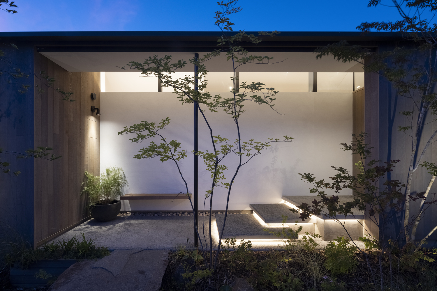 The primary goal of this design was to incorporate abundant views of nature into the living space of the residents, enriching their daily life. Nature is beautiful in itself, without artificial manipulation. This residence melts into the landscape on equal standing with natural elements, balancing relaxed comfort and stillness.