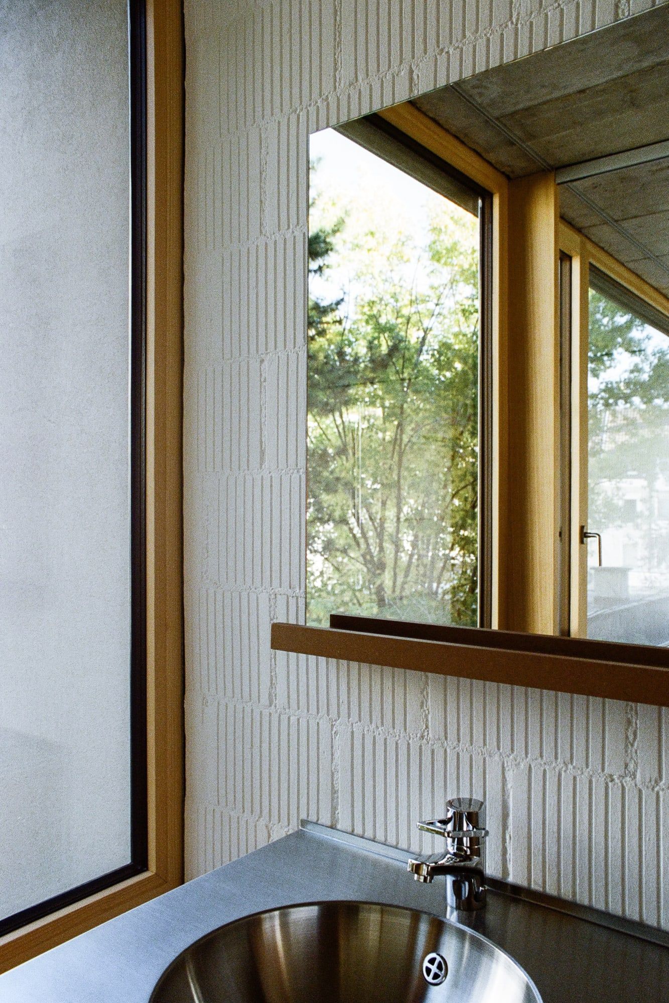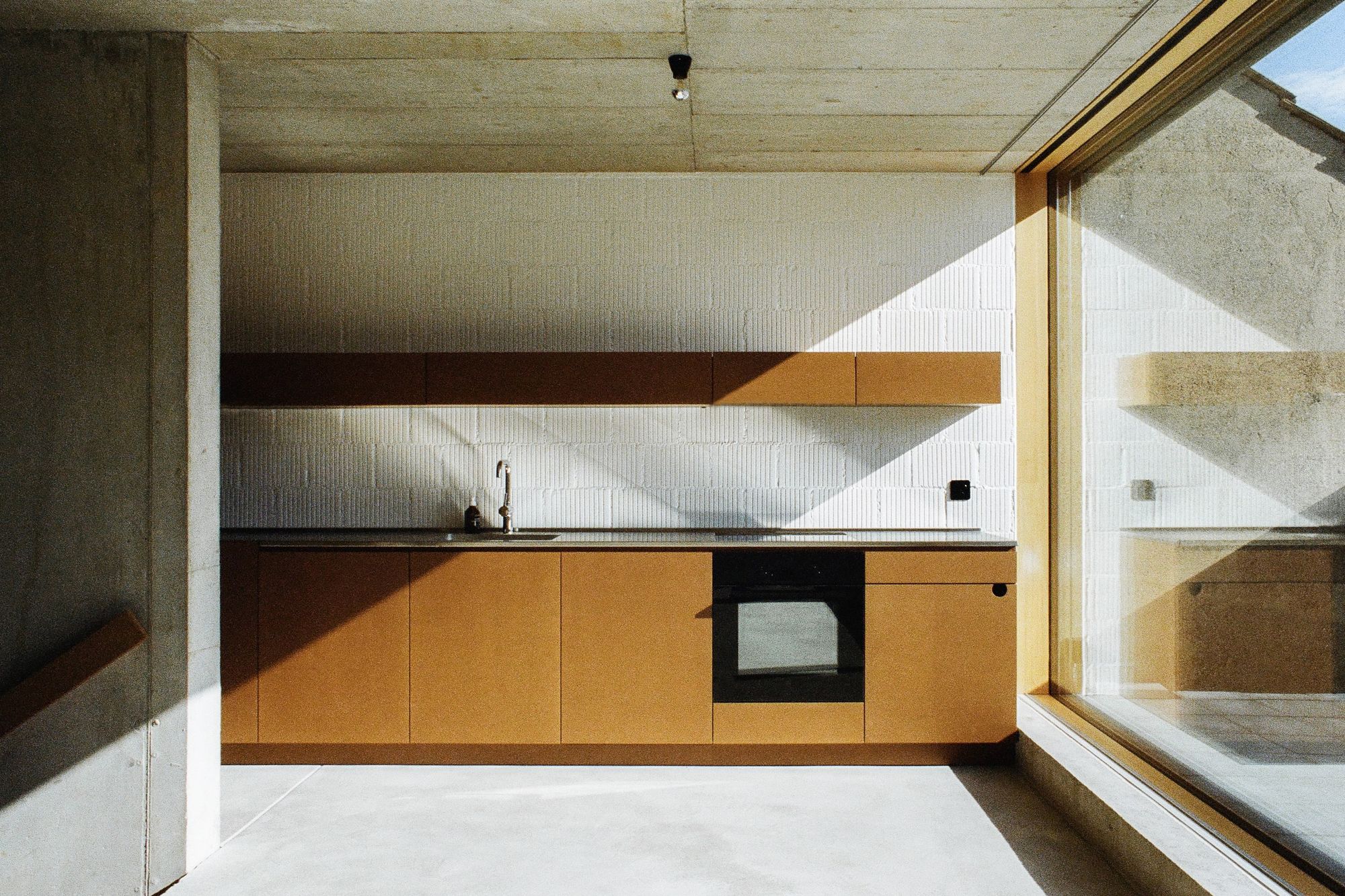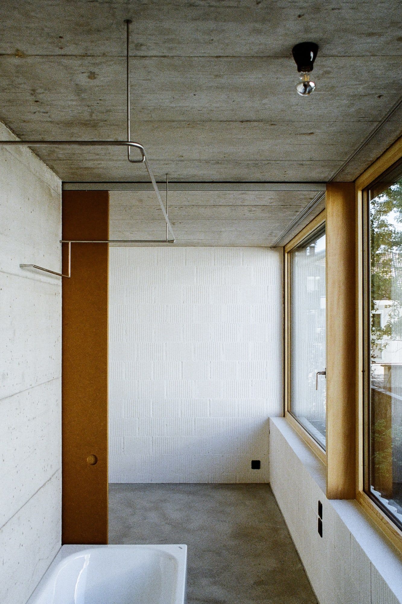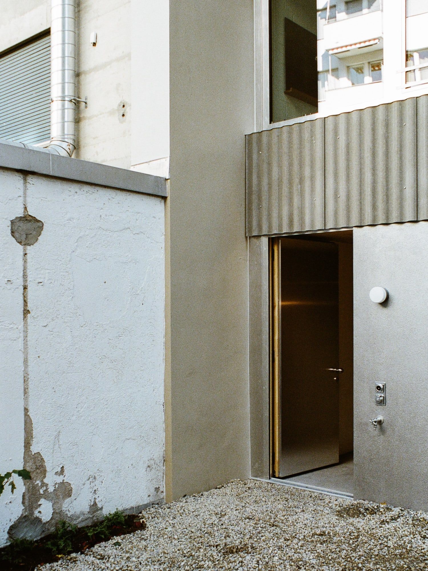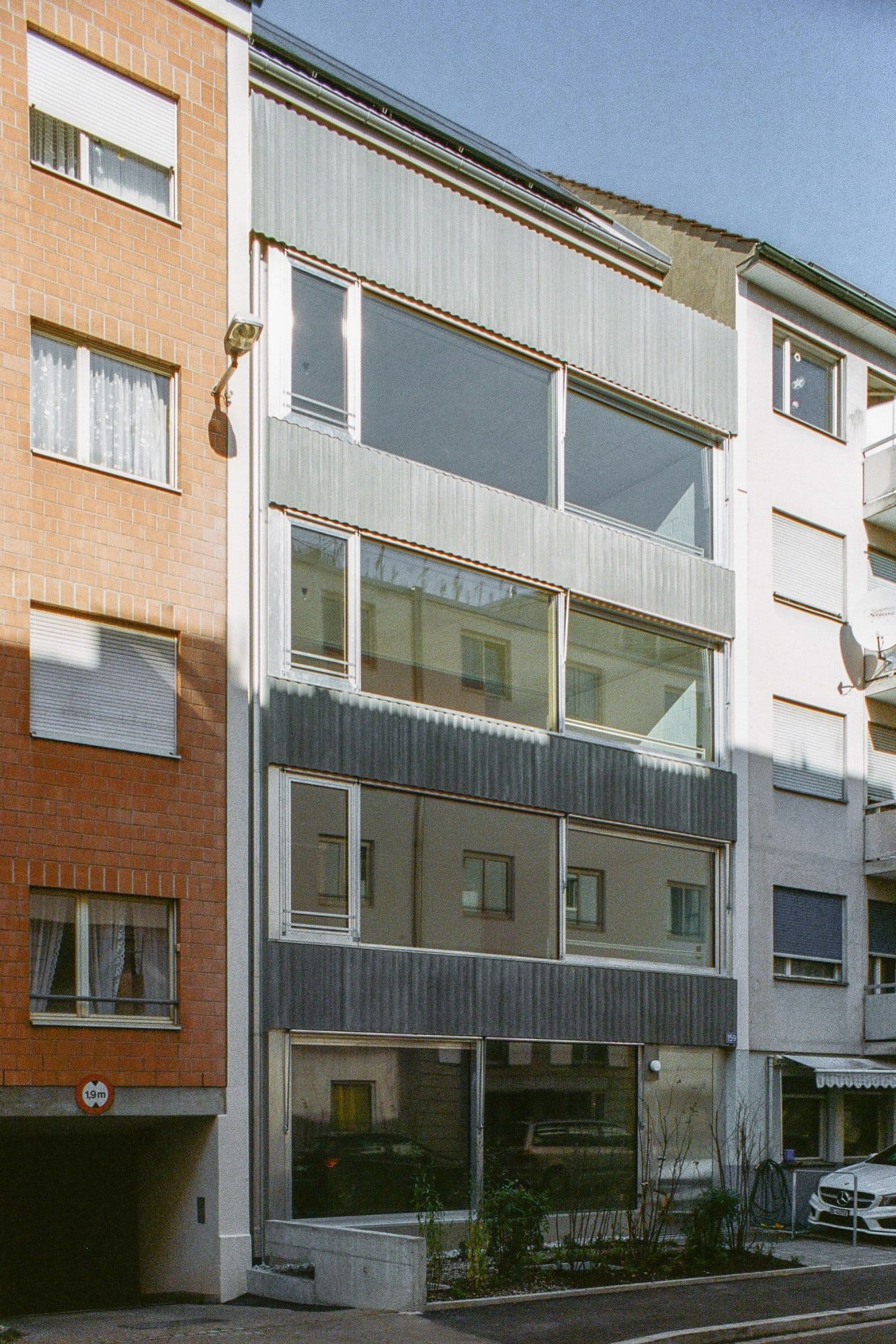Blaesi is a minimal home located in Basel, Switzerland, designed by Estrada Reichen Architekten. Christoph Estrada Reichen (* 1984, MSc ETH Arch SIA) grew up in Mexico City and Riehen, BS. During and after studying architecture at ETH Zurich, he worked in Switzerland and abroad, including in New York, Zurich and at Christ & Gantenbein in Basel. Nicole Maria Wallimann (* 1990, MSc ETH Arch) was born and raised in the canton of Lucerne. After studying architecture at the ETH Zurich, which she completed with a diploma thesis with Annette Spiro, she worked from 2016 to 2018 as a project and construction manager at Andreas Fuhrimann Gabrielle Hächler Architects. Constructed mainly of concrete, the exterior facade features corrugated metal separating full-length glazings of each level. The glazings offer abundant natural light, and are complemented by windows pointing into the interior courtyard.