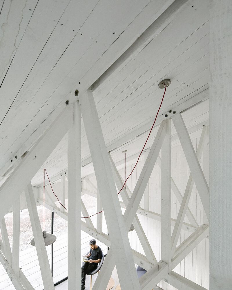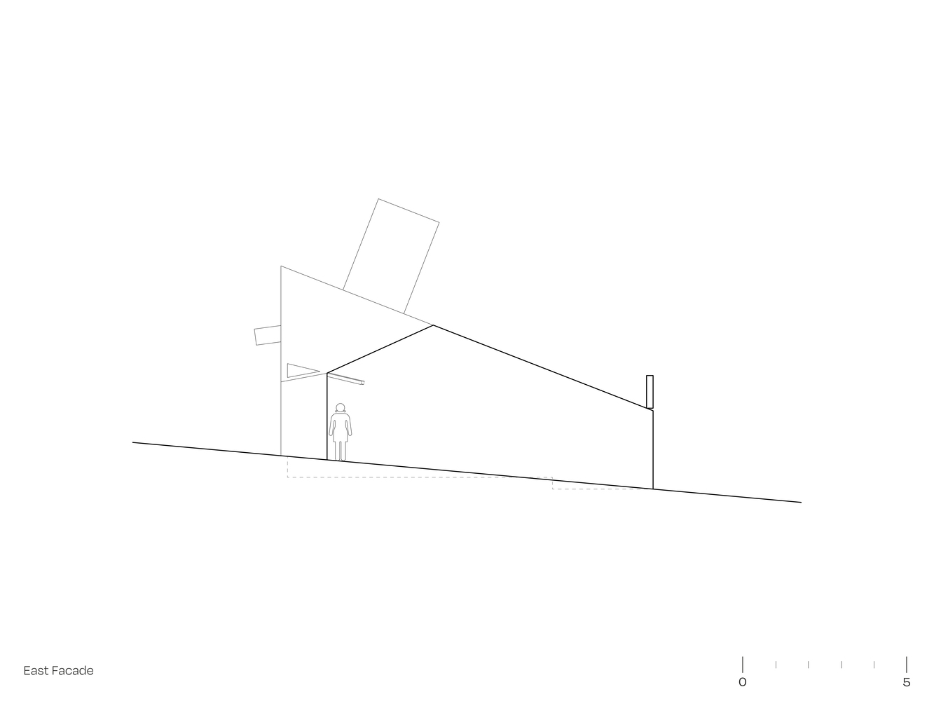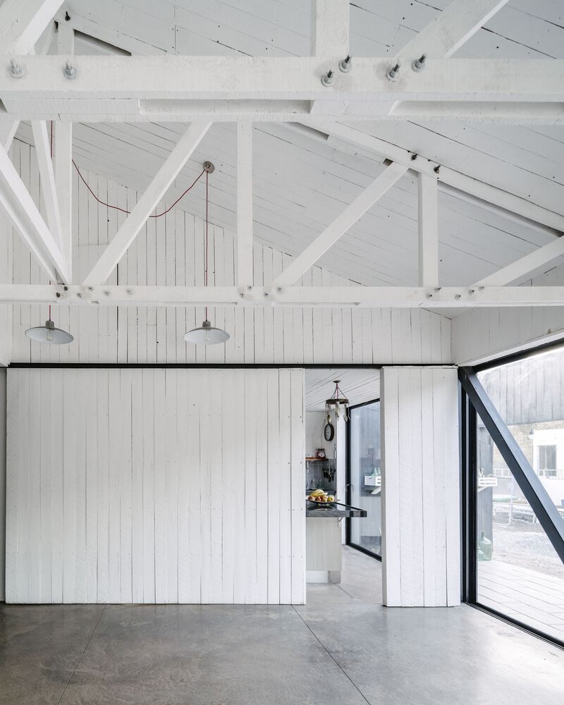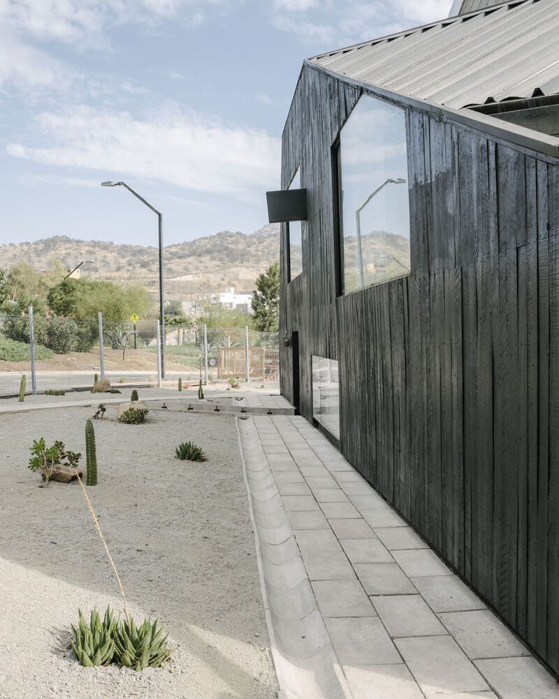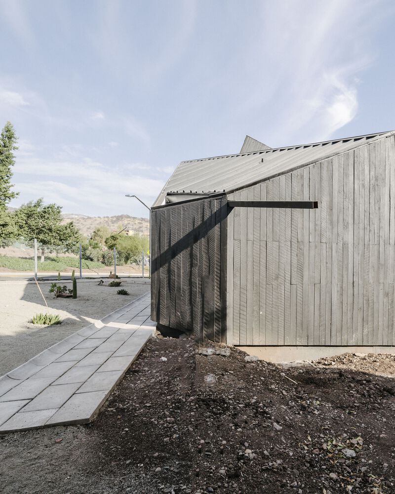 산티아고 북부에 위치한 주택의 디자인 특징은 로컬건축의 전통양식을 재해석한 미니멀 양식입니다. 전통적인 지붕형식을 독특한 형태로 추상화한 작업은 지붕과 벽의 경계를 허물며, 연속된 공간을 확보합니다. 외부(거리)로 부터 이격되기 위한 경사면(지붕) 덕분에 북쪽으로 오픈공간 확보하여 내부 공용공간과 테라스가 함께 호흡하도록 설계합니다.