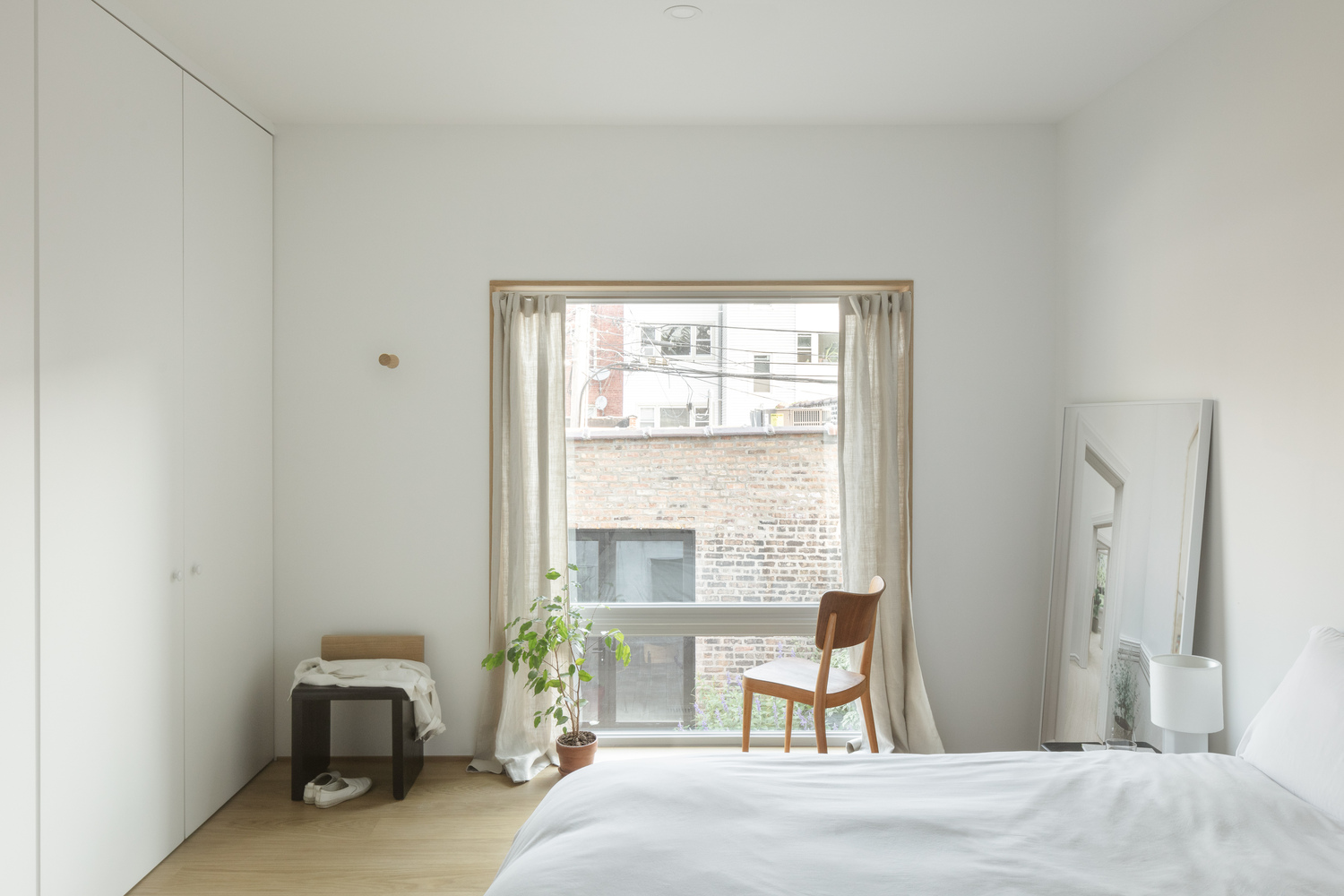 그웡 본 글로우가 설계한 미니멀 주택 애드모어는 시카고 엣지워터에 위치합니다. 전통적인 주거양식과 다른 구성방식으로 구성된 내부는 침실을 1층에 배치하는 동안 주 생활공간(공용공간)을 2층 배치합니다. 이러한 접근방식은 풍부한 자연채광을 내부로 유입시키는 동시에 주변 도시 컨텍스트와 조우하는 외부환경을 구성합니다.