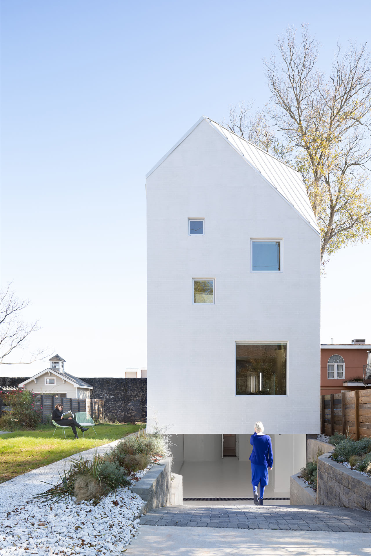 Haus Gables는 독특한 지붕 라인을 형성하기 위해 6개의 박공 지붕을 클러스터링하여 배치 및 입면과 관련하여 새로운 접근 방식을 모색합니다. 그 단독 주택은 조지아주 애틀랜타에서 현대 건축물을 설계하고 개발한 MALL의 건축 디자이너 Jennifer Bonner의 아이디어입니다. 2,200제곱피트의 이 레지던스는 재료, 색상 및 형태를 통해 전형적인 가정 인테리어를 재해석하여 방문자와 행인의 눈을 사로잡을 디자인을 만듭니다.
