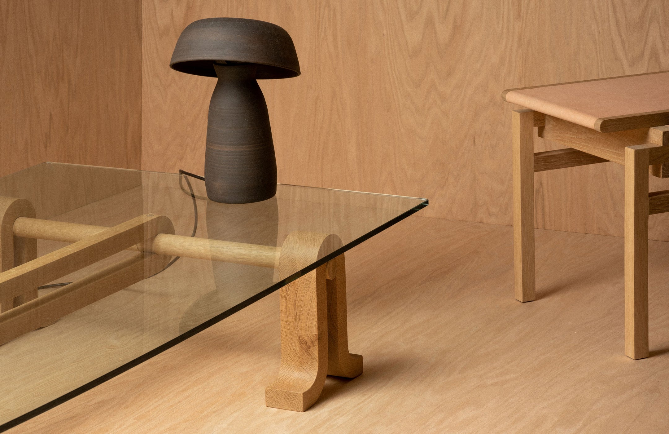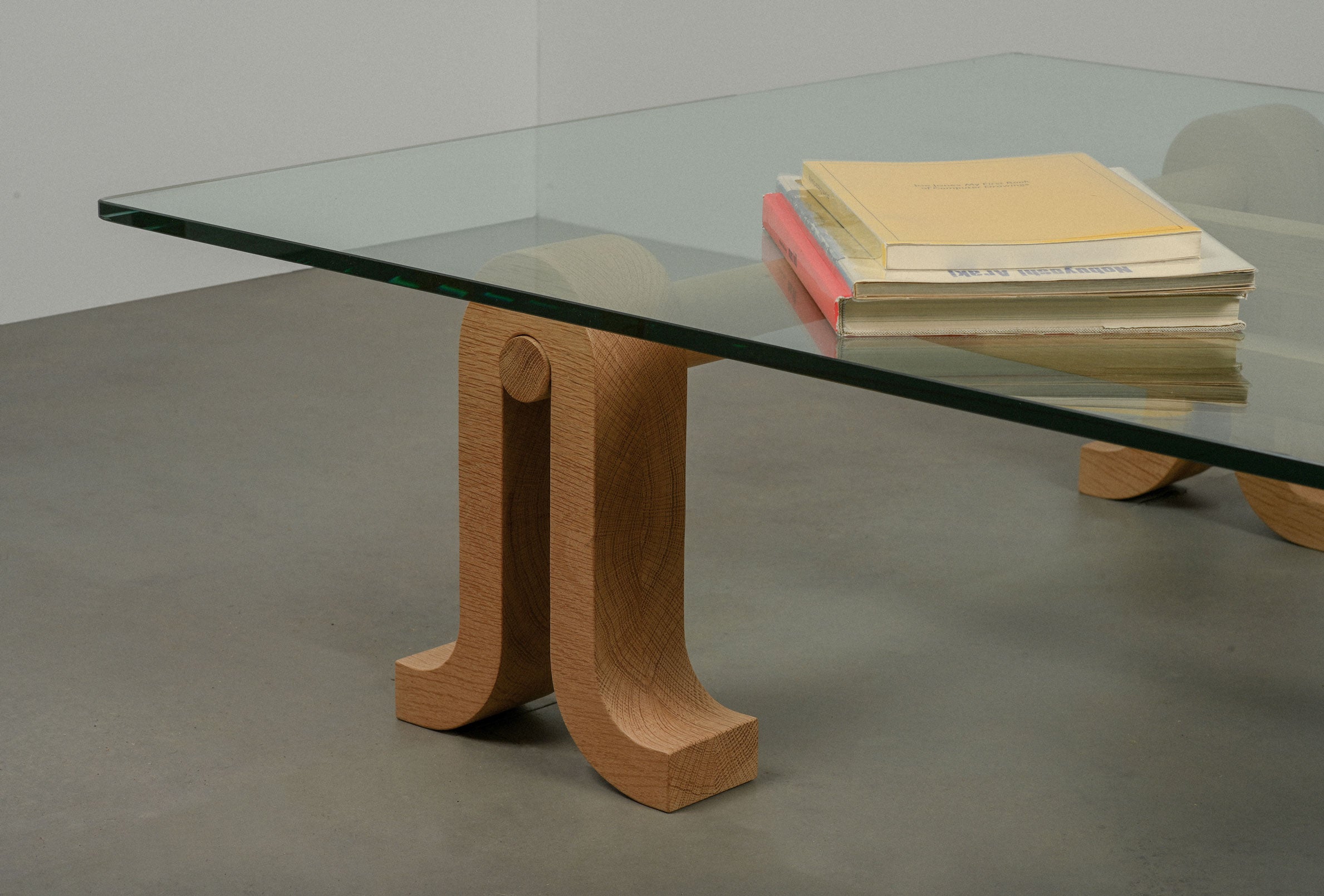Loop Table is a minimal table created by California based designer Nicholas Bijan Pourfard. The table is a continuous wooden loop connects these substantial leg supports to create a fluid visual. The glass piece rests on top allowing a clear sightline of the base. The table is constructed of hardwoods and tempered glass.