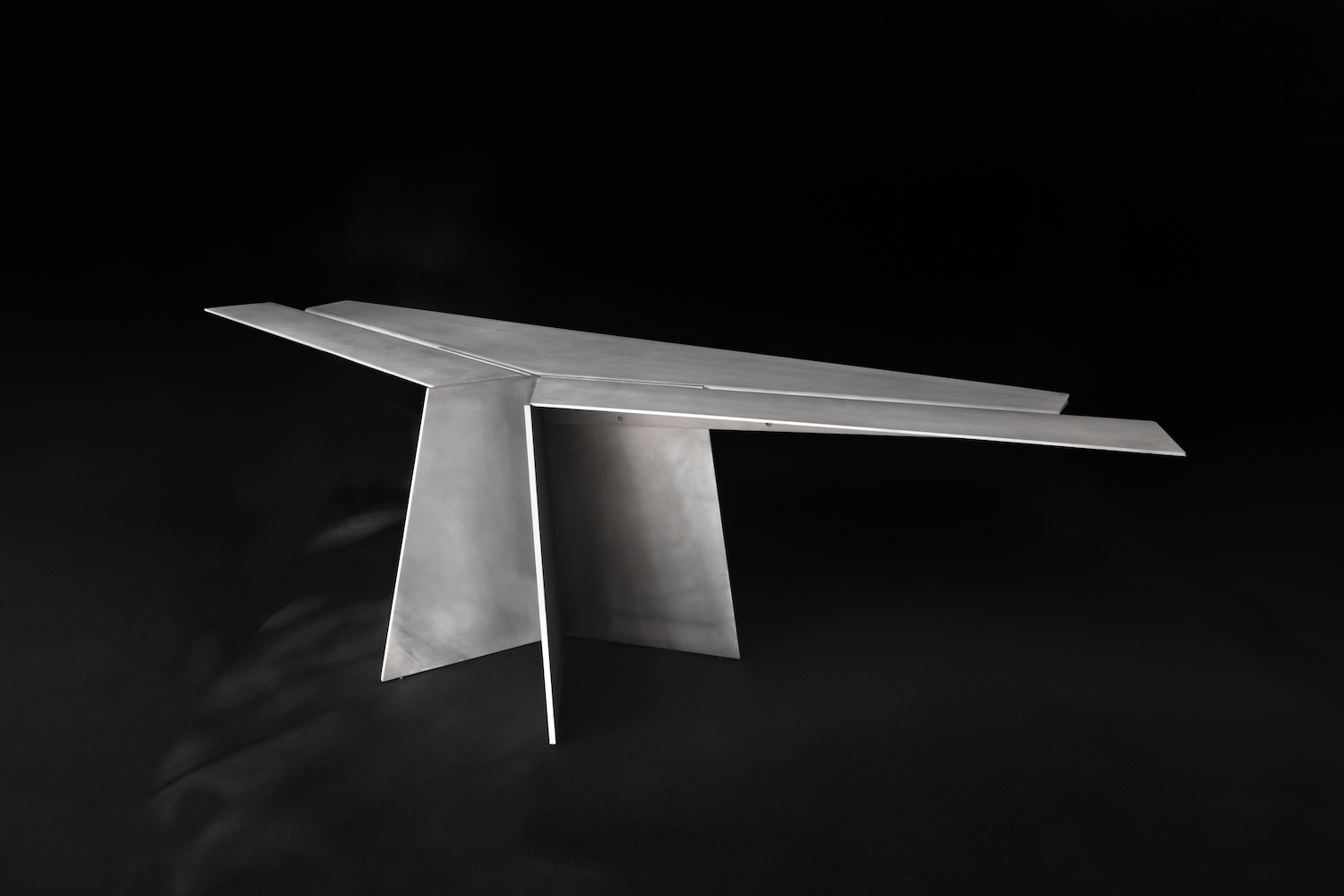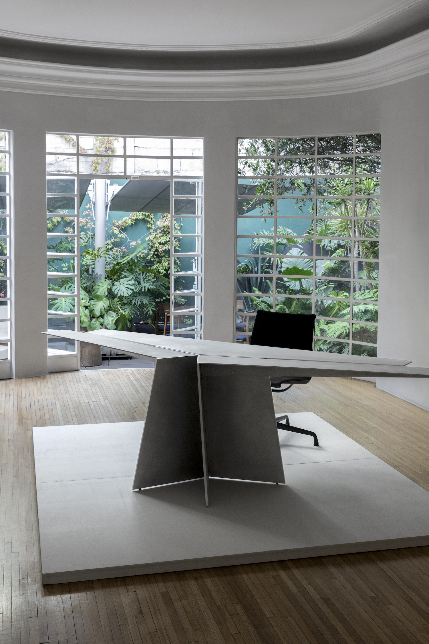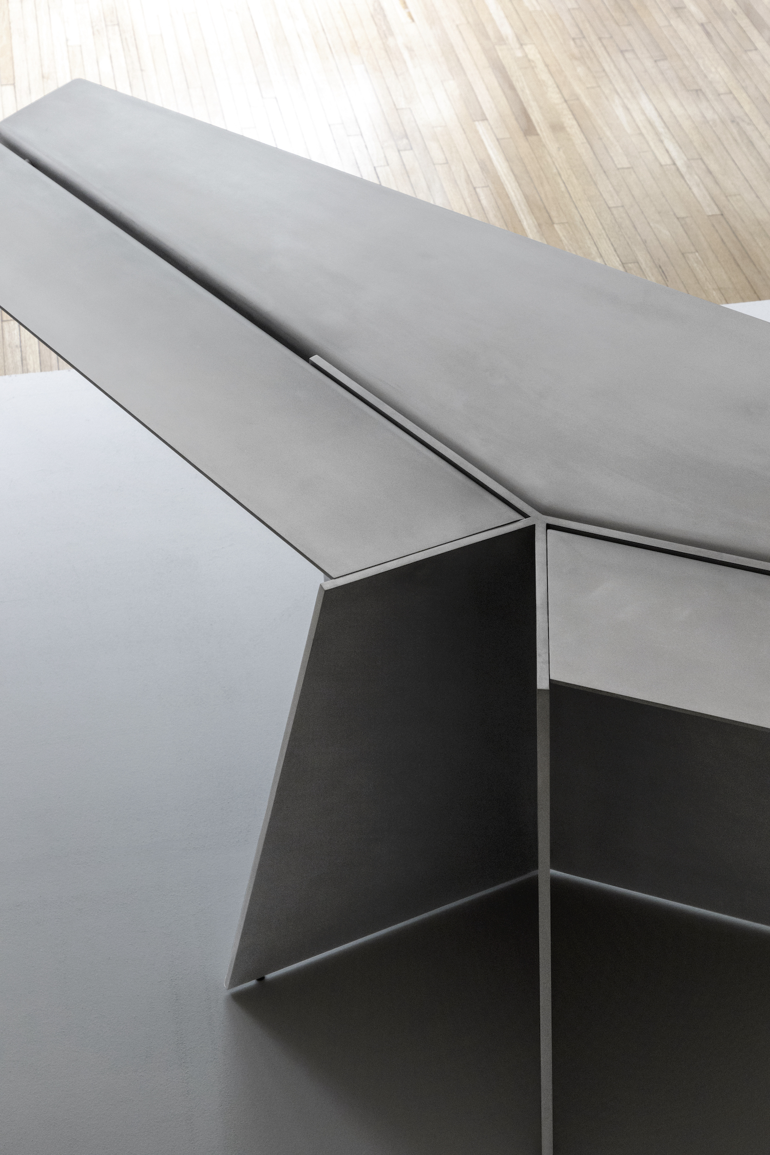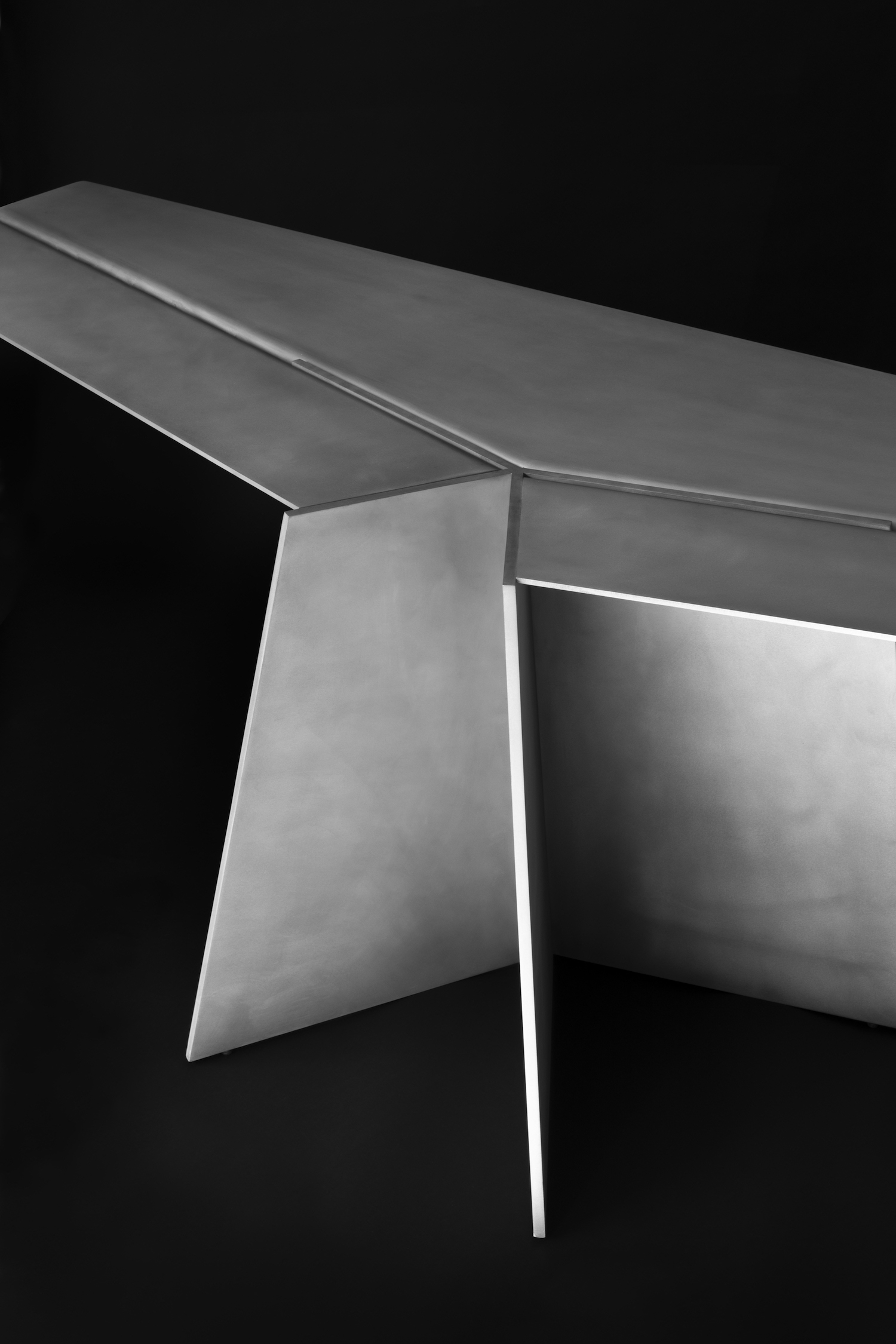 Aero is a minimal desk created by Mexico City-based designer Héctor Esrawe. Of monolithic expression, Aero is composed of a single, sober, and forceful material. It defies tension and gravity with its wide top, which is stabilized by the folds of the material, providing the structural response to the piece, as well as being part of the essence in its expression. The interest in a unique material, without ornaments, where the presence of each element fulfills a function, where the constructive folds and the light provide dynamism and depth to the piece. Aero continues the interest in a constant exploration of finishes, techniques, and textures. Aero is based on the skills’ knowledge of artisan workshops by challenging them, promotes their craftsmanship and the evolution of the technique on the use of materials, as well as the link between them.