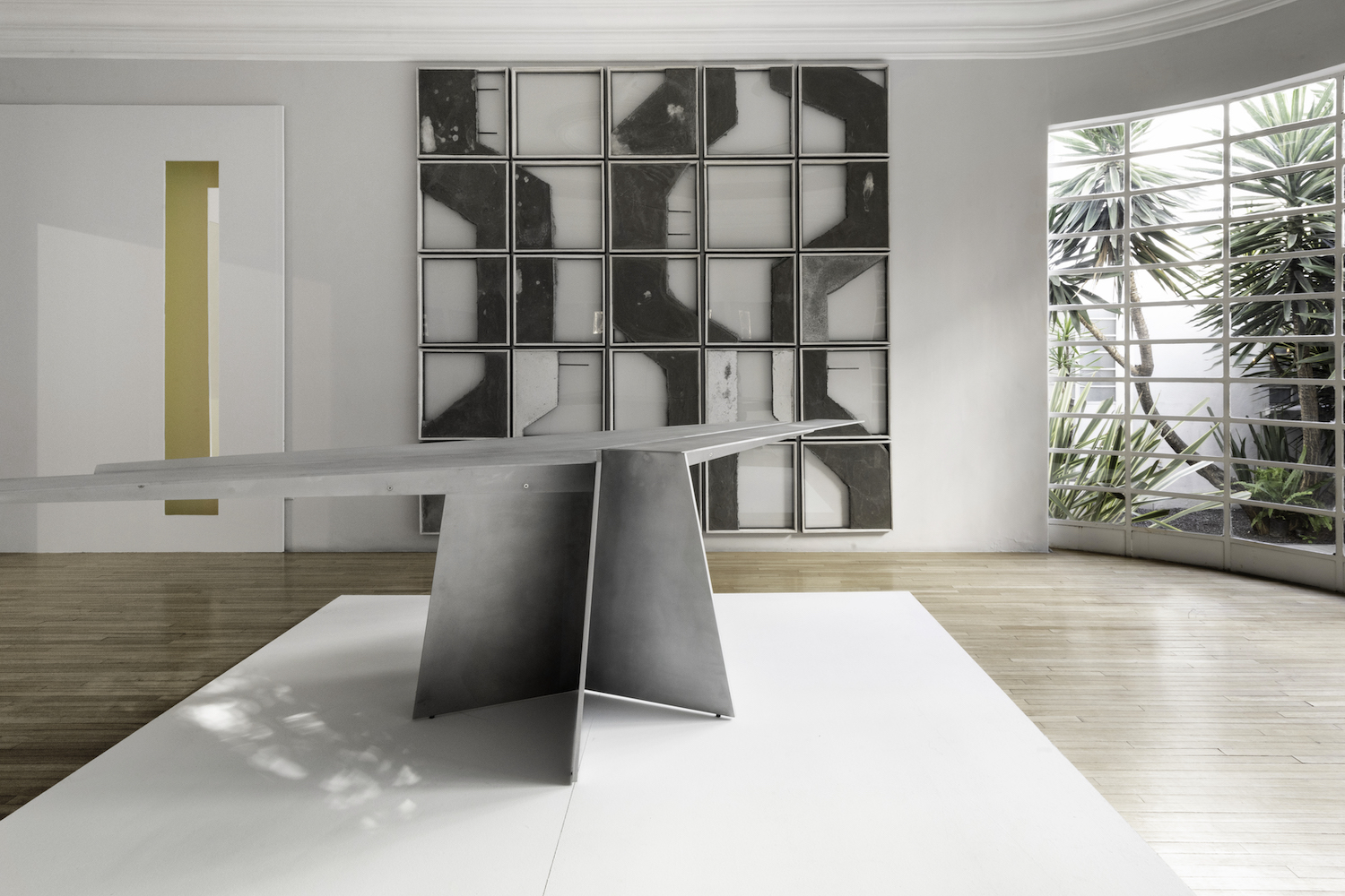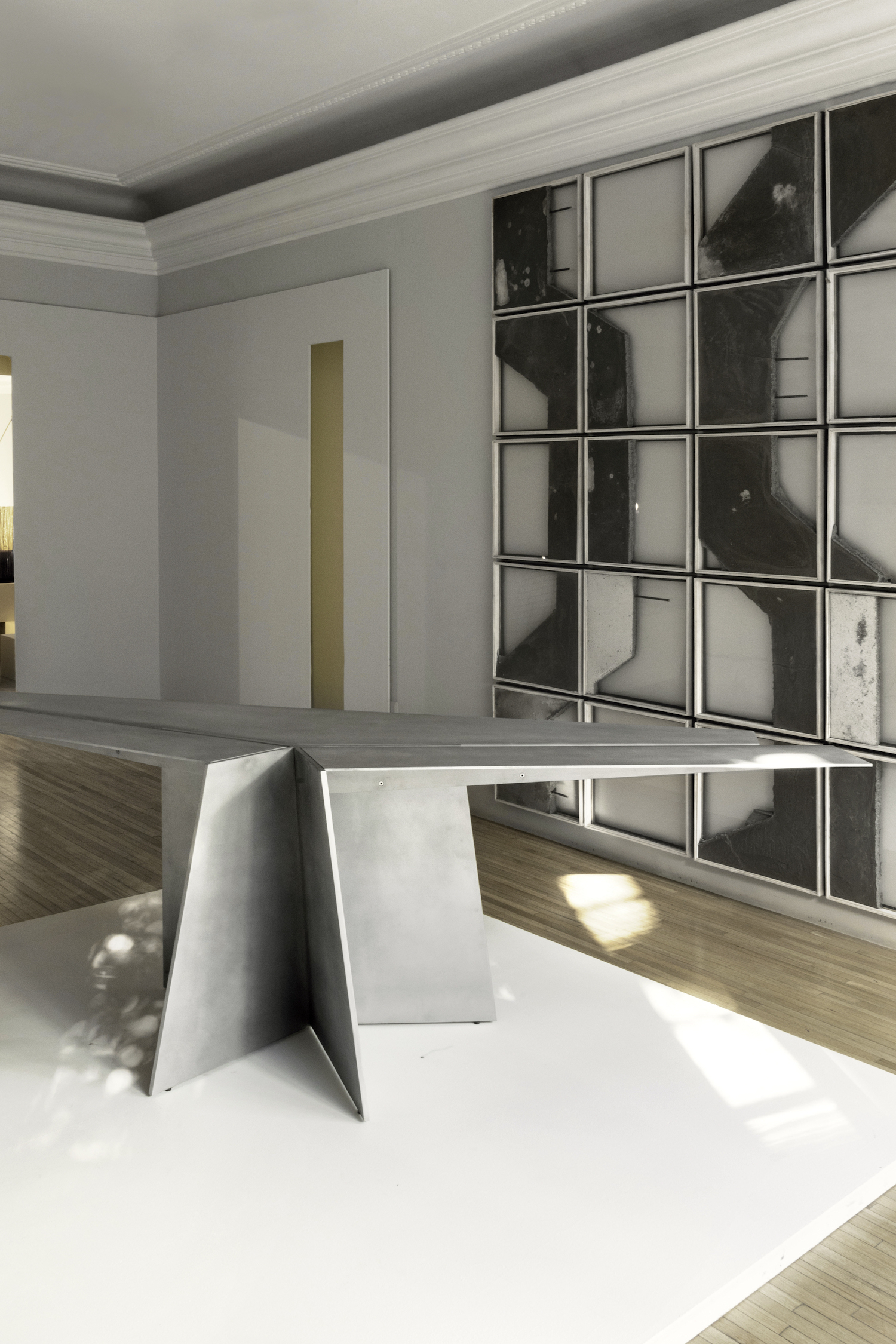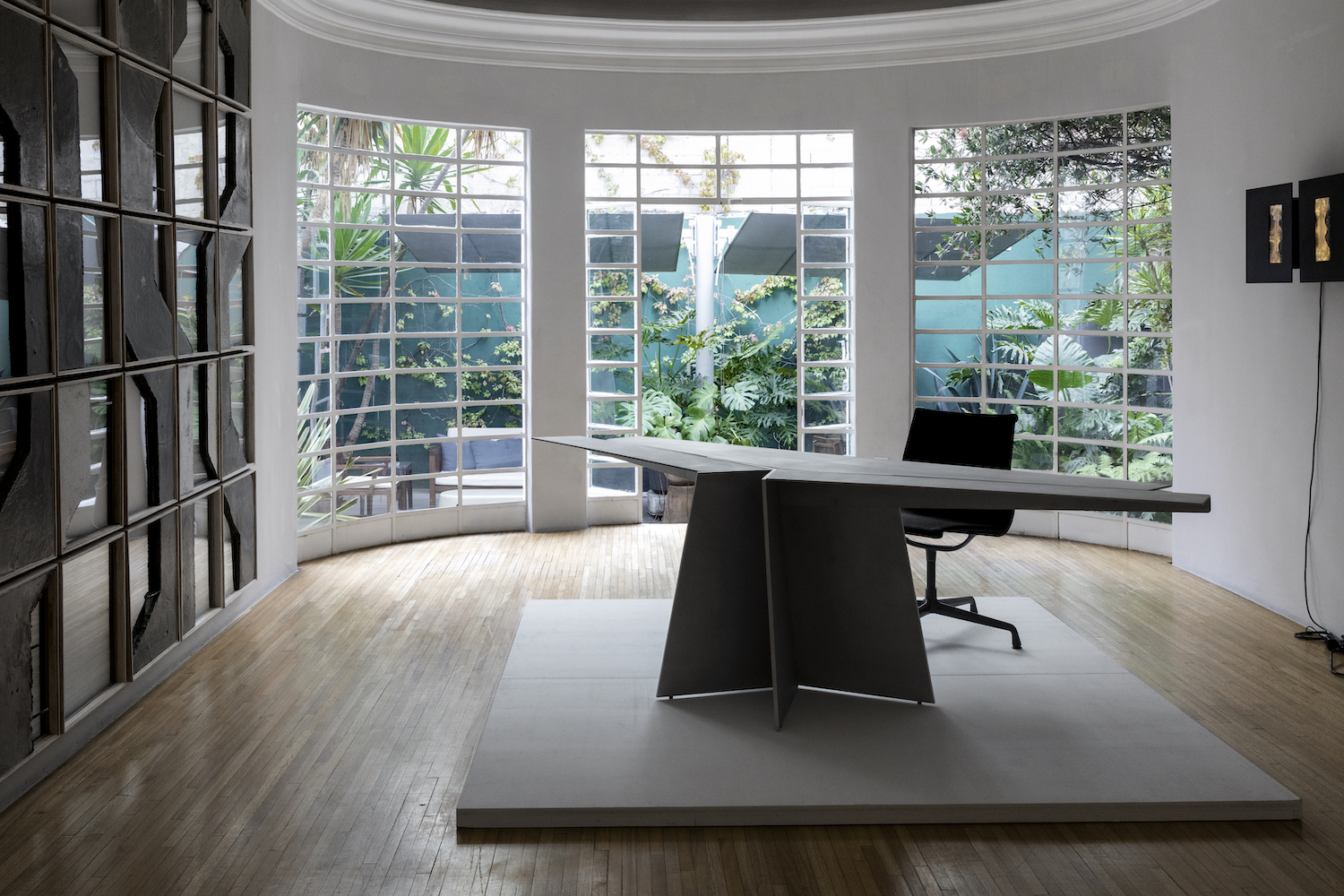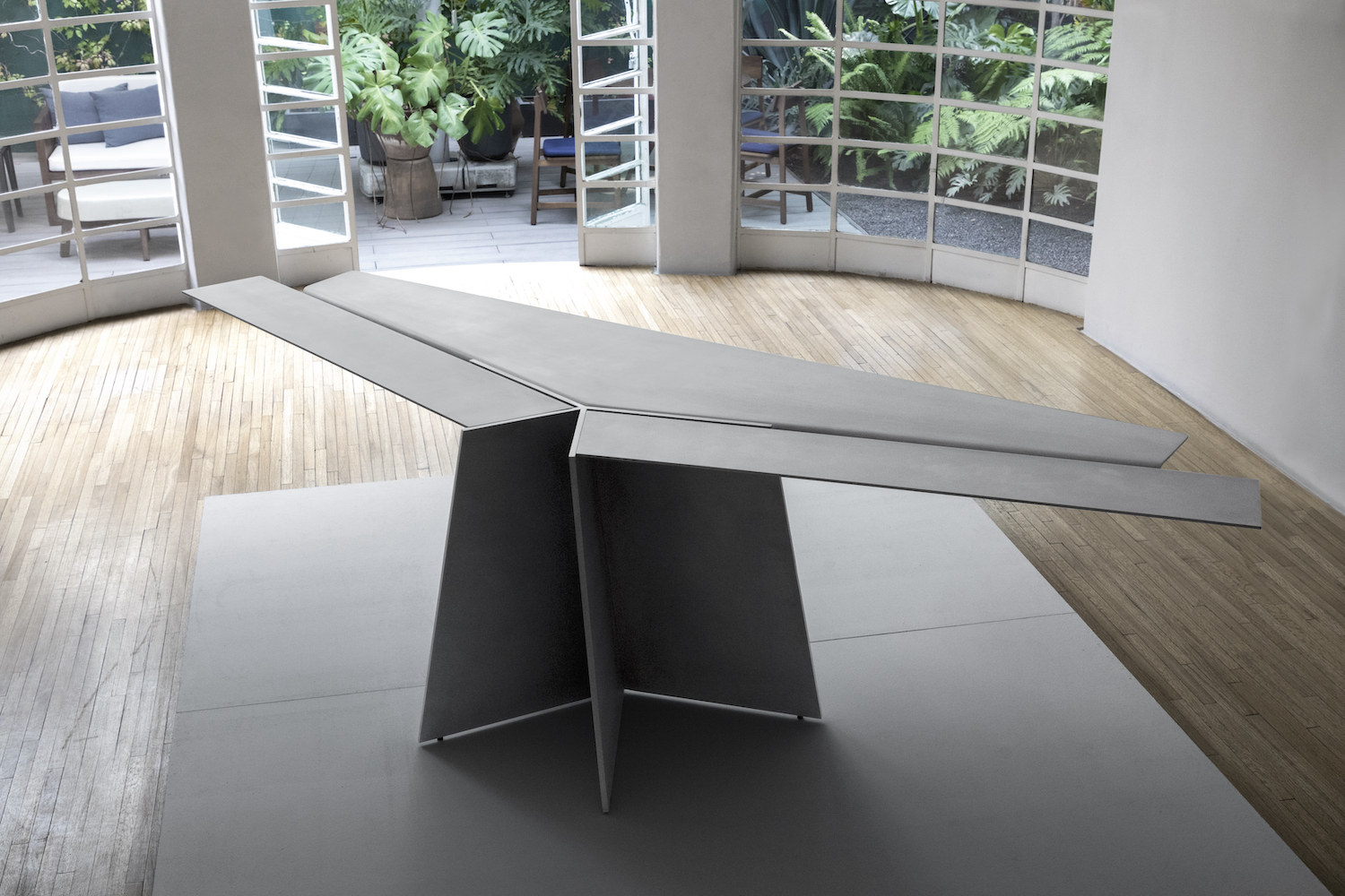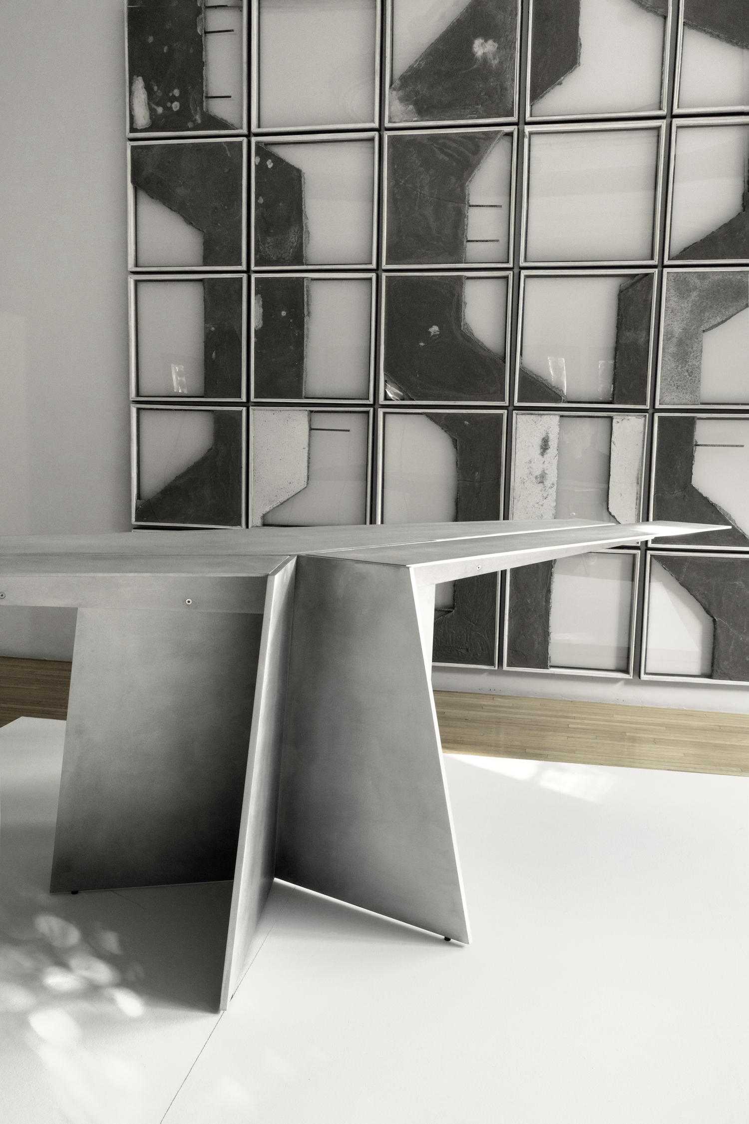 Aero is a minimal desk created by Mexico City-based designer Héctor Esrawe. Of monolithic expression, Aero is composed of a single, sober, and forceful material. It defies tension and gravity with its wide top, which is stabilized by the folds of the material, providing the structural response to the piece, as well as being part of the essence in its expression. The interest in a unique material, without ornaments, where the presence of each element fulfills a function, where the constructive folds and the light provide dynamism and depth to the piece. Aero continues the interest in a constant exploration of finishes, techniques, and textures. Aero is based on the skills’ knowledge of artisan workshops by challenging them, promotes their craftsmanship and the evolution of the technique on the use of materials, as well as the link between them.