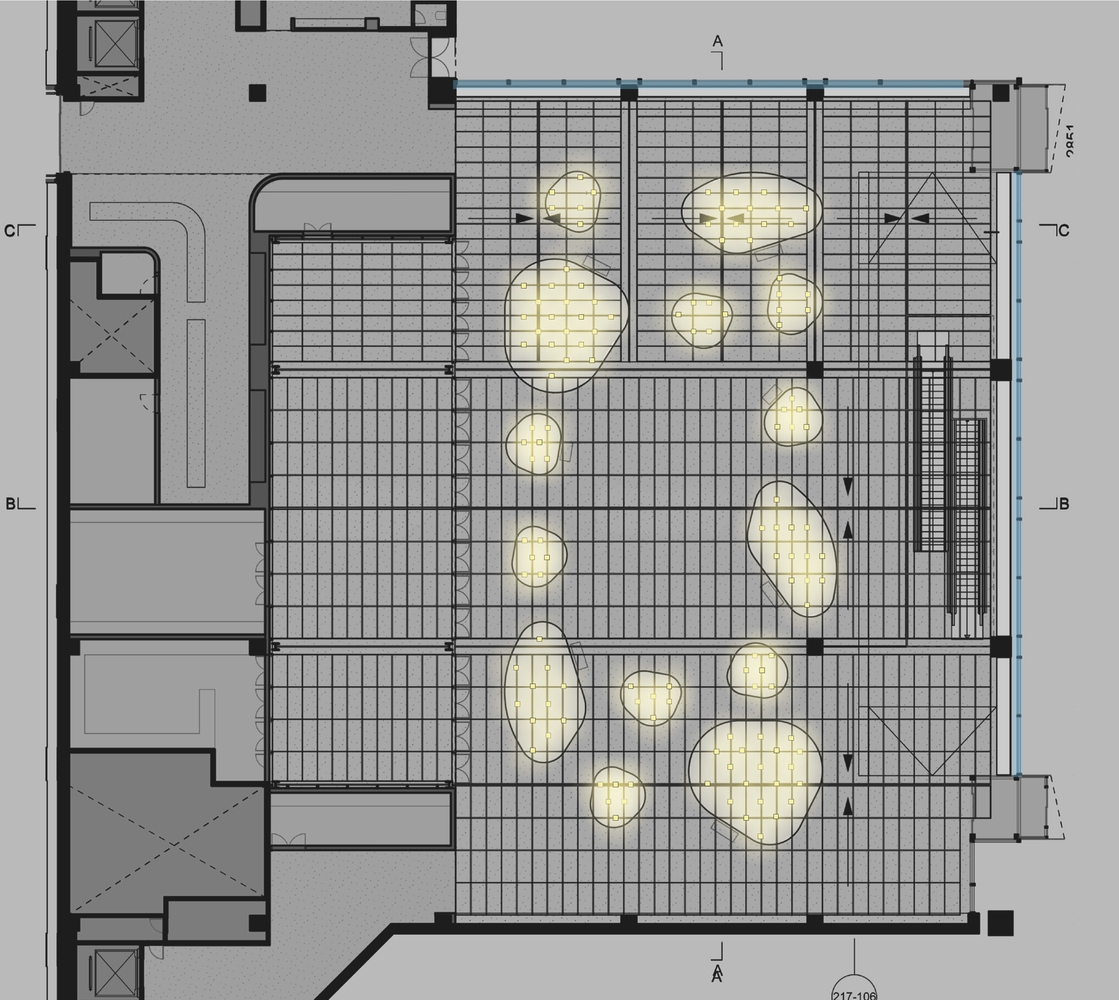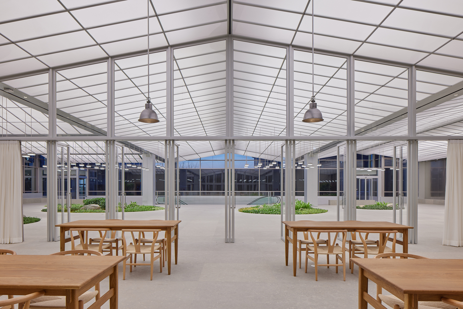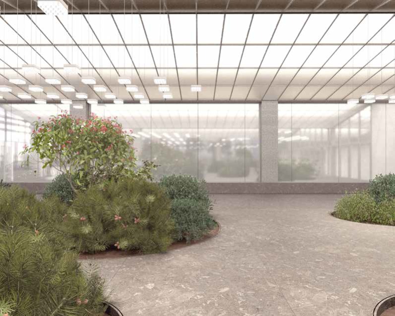 서울 현대백화점 목동점에는 미니멀리즘을 추구하는 ‘글래스 하우스 가든 룸’이 위치합니다. 정적인 오픈플랜 속에 자연적인 조경요소를 배치함으로써 쇼핑객과 방문객들에게 고요한 공간과 사색을 할 수 있는 시간을 선물합니다.The Hyundai Department Store Mokdong in Seoul features the world's most famous luxury brands. While one’s senses are challenged in the shopping sections below, the top floor offers a space to rest. The minimalist “Glass House Garden Room” offers a place of tranquillity for shoppers and visitors. It serves as the entrance floor to the surrounding residential towers and can play host to events and exhibitions. The space is visually broken up by islands of green plants that are embedded in the floor. A swarm of plant-friendly LED lights is placed above each island, which is intended to promote both human and plant well-being.