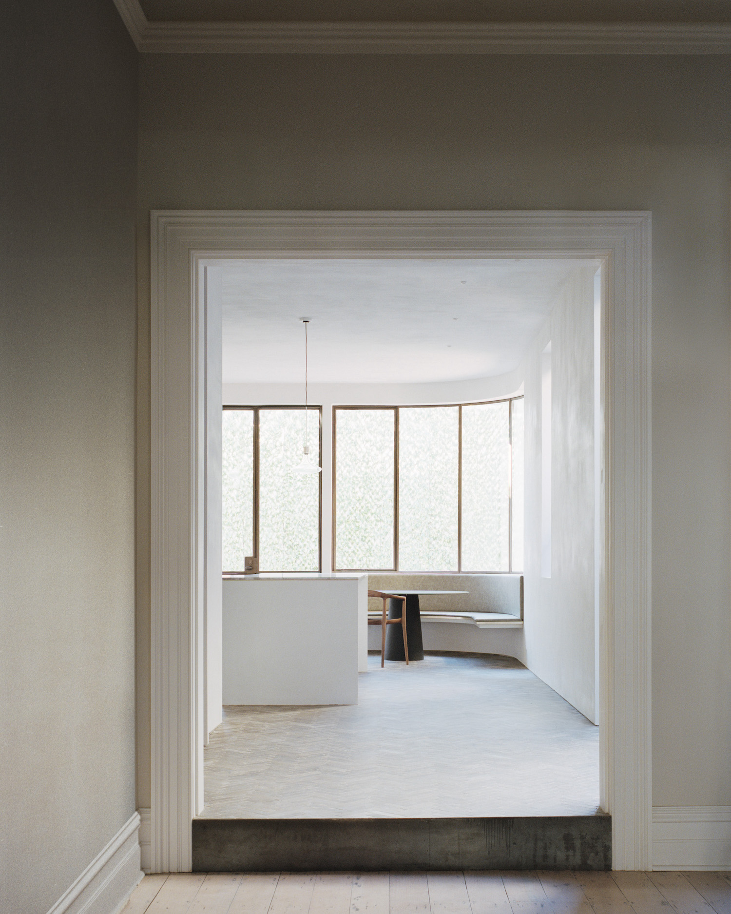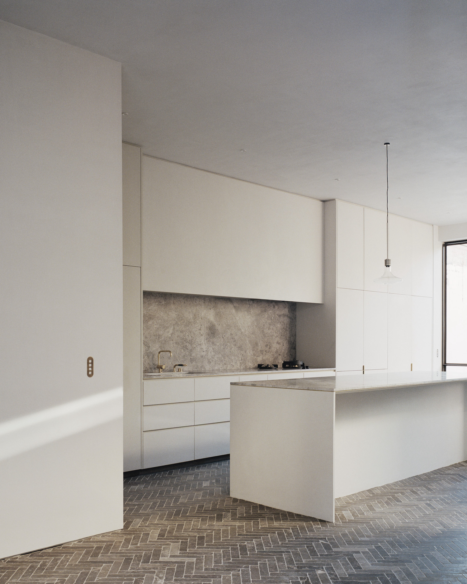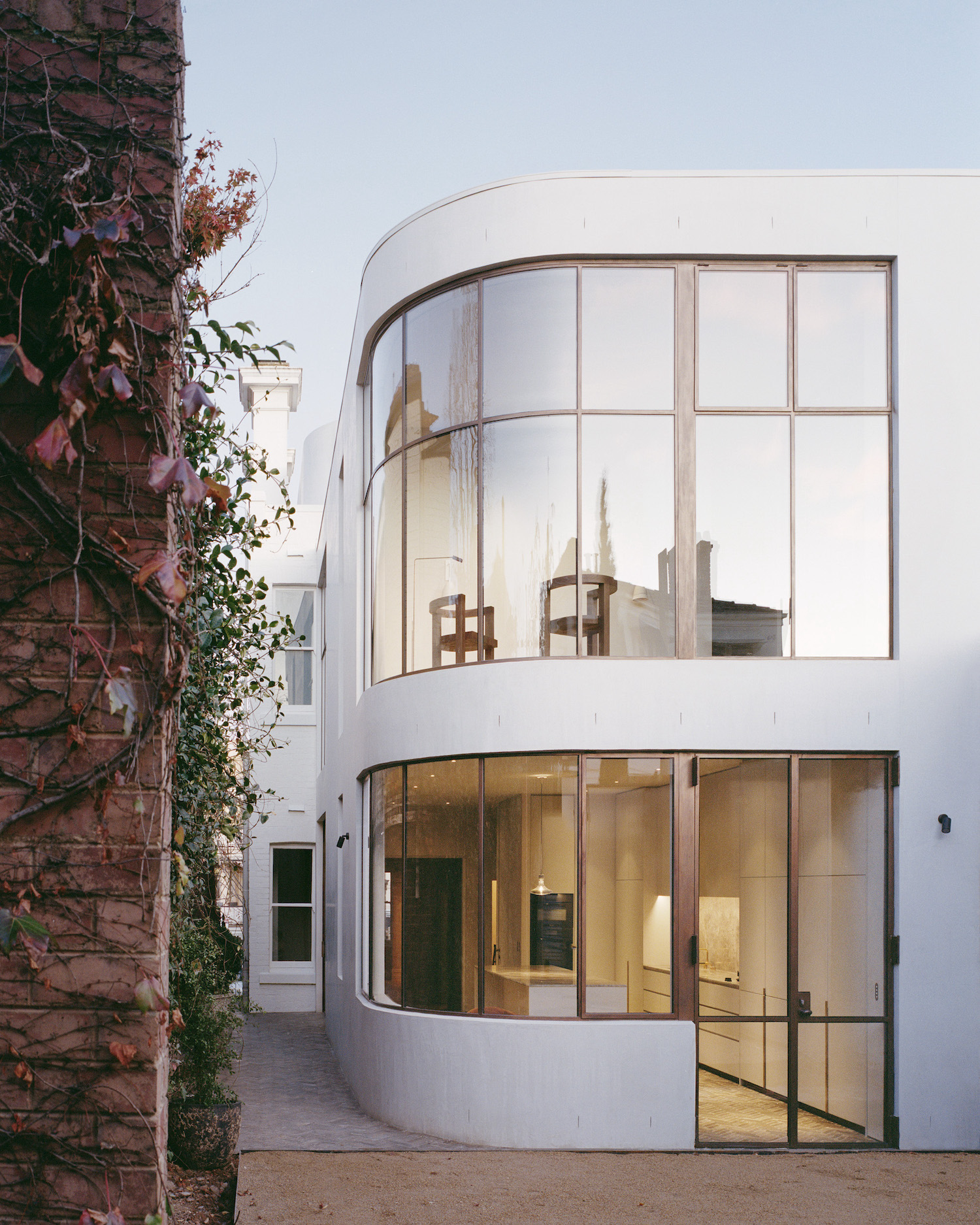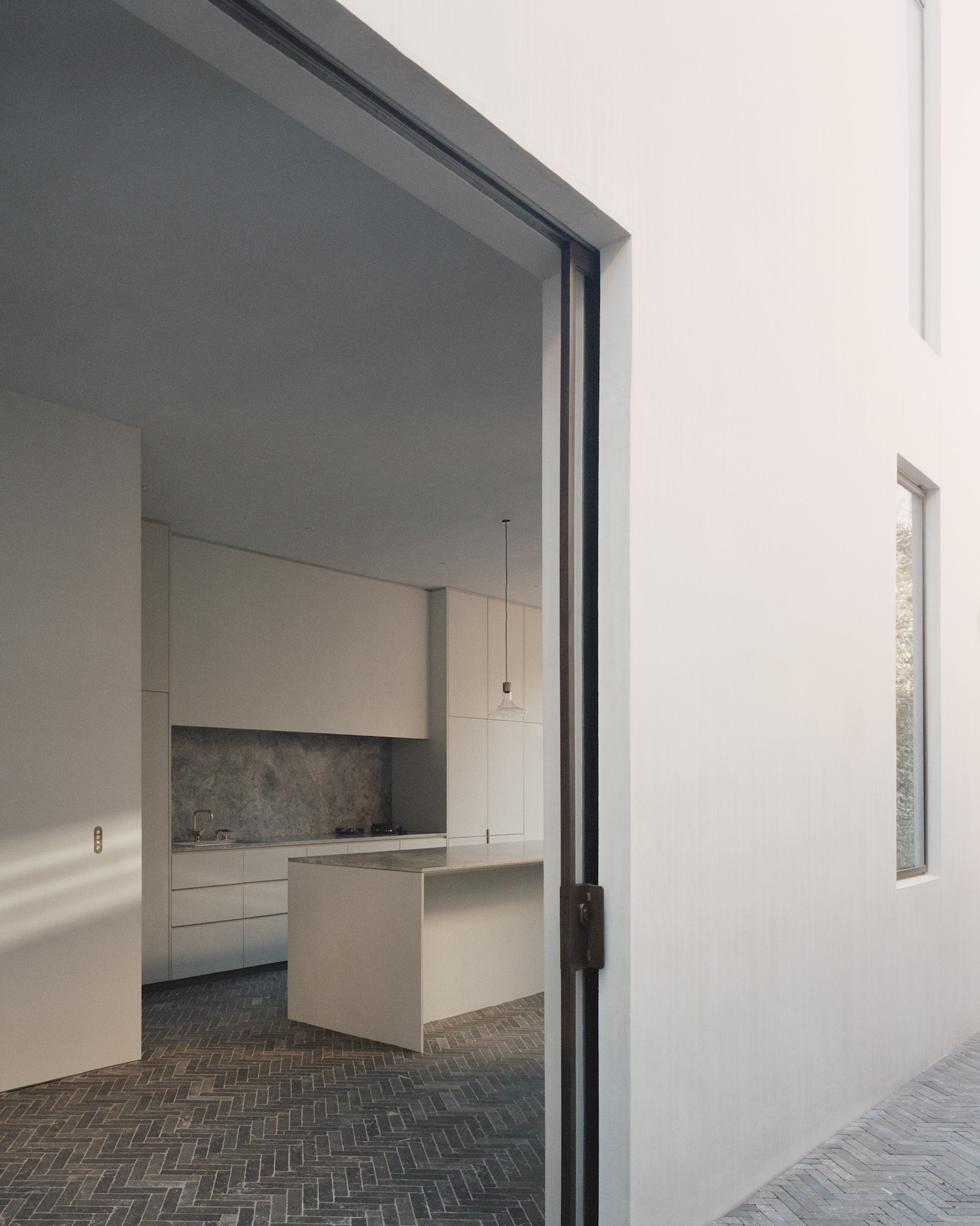 Sussex House is a minimal residence located in South Yarra, Australia, designed by Templeton Architecture. Sussex House is one of several Victorian terrace houses located in the residential streets that bound the Botanic Garden on the inner fringe of the city. The two-storey residence is of modest scale with a grand façade that sits proudly atop the highest point within the local context. The design aims to provide our client with a ‘foot on the ground’ close to the appealing attributes of the city yet offering a quietness that provides respite. The historic façade has been retained along with a sequence of classical rooms where we have removed the unnecessary detail and focused on the essential form. The extension is an ensemble of simple spaces that respect the existing proportions of the dwelling and offer a variety of intimate spatial experiences. The rear facade is the most delicate part of the project.