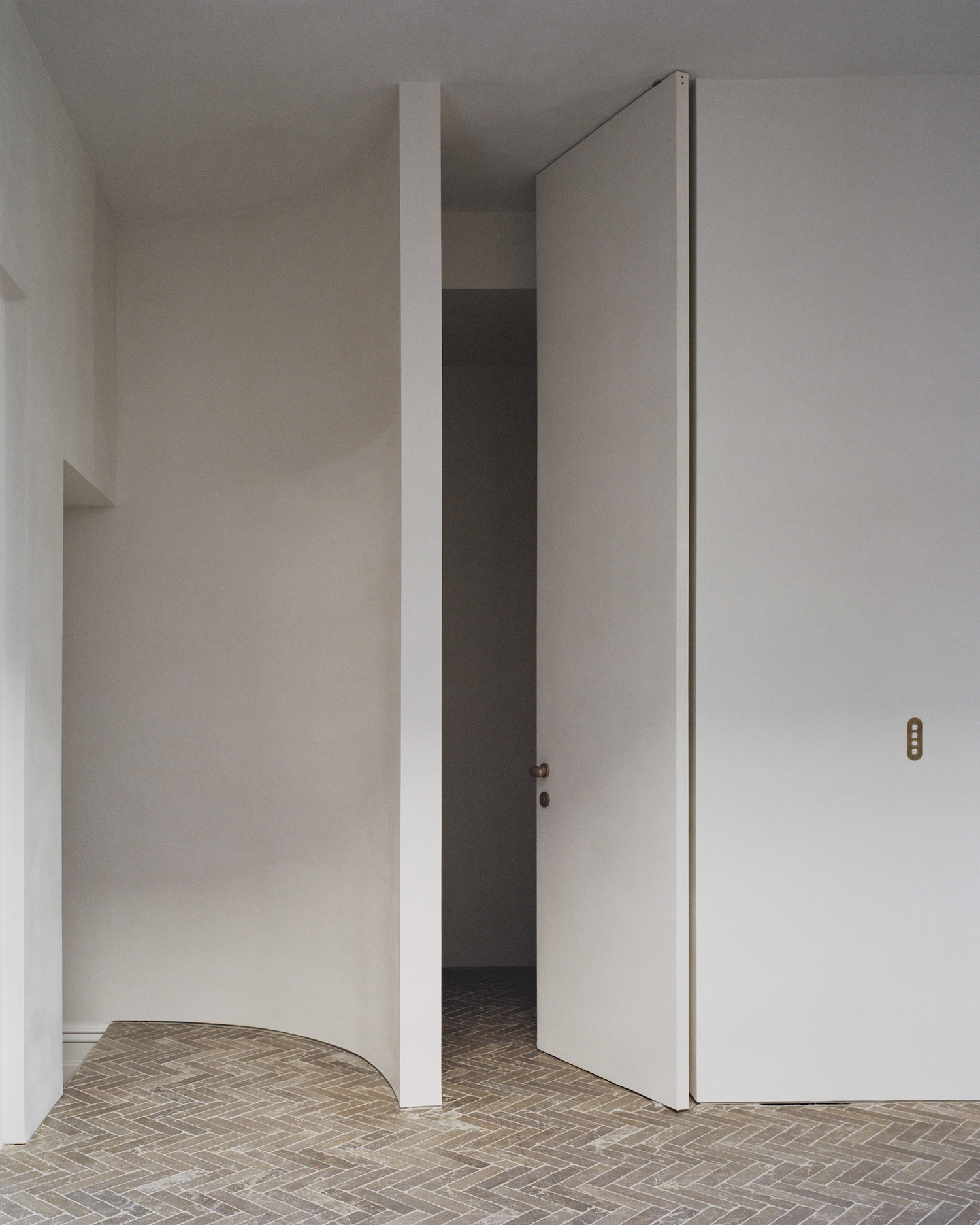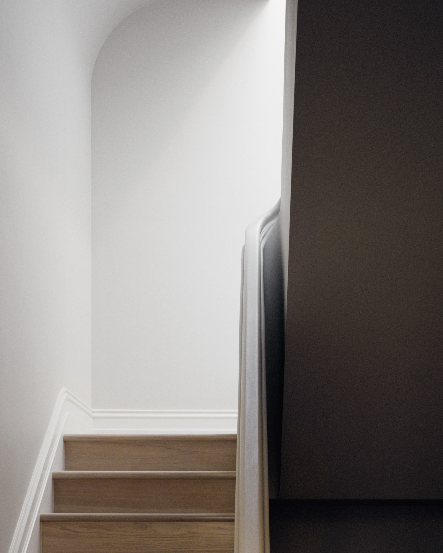 The soft curve of the facade is bound to the brick architecture using traditional solid masonry and fine window detailing. It is the expression of the house towards the garden and is designed to captures optimal natural light while providing privacy within the density of the inner city. The gentle curve is repeated in the continuation of the staircase. The stair gracefully links the house to the newly created roof deck, beautifully hidden from the street behind the existing Victorian parapet. From this space the proximity to the city and the gardens can be appreciated and celebrated. Considered details and careful material selection throughout the project blend the existing with the new to create a harmonious, small home with an abundance of spatial options to cater for the many emotional and physical requirements of life.