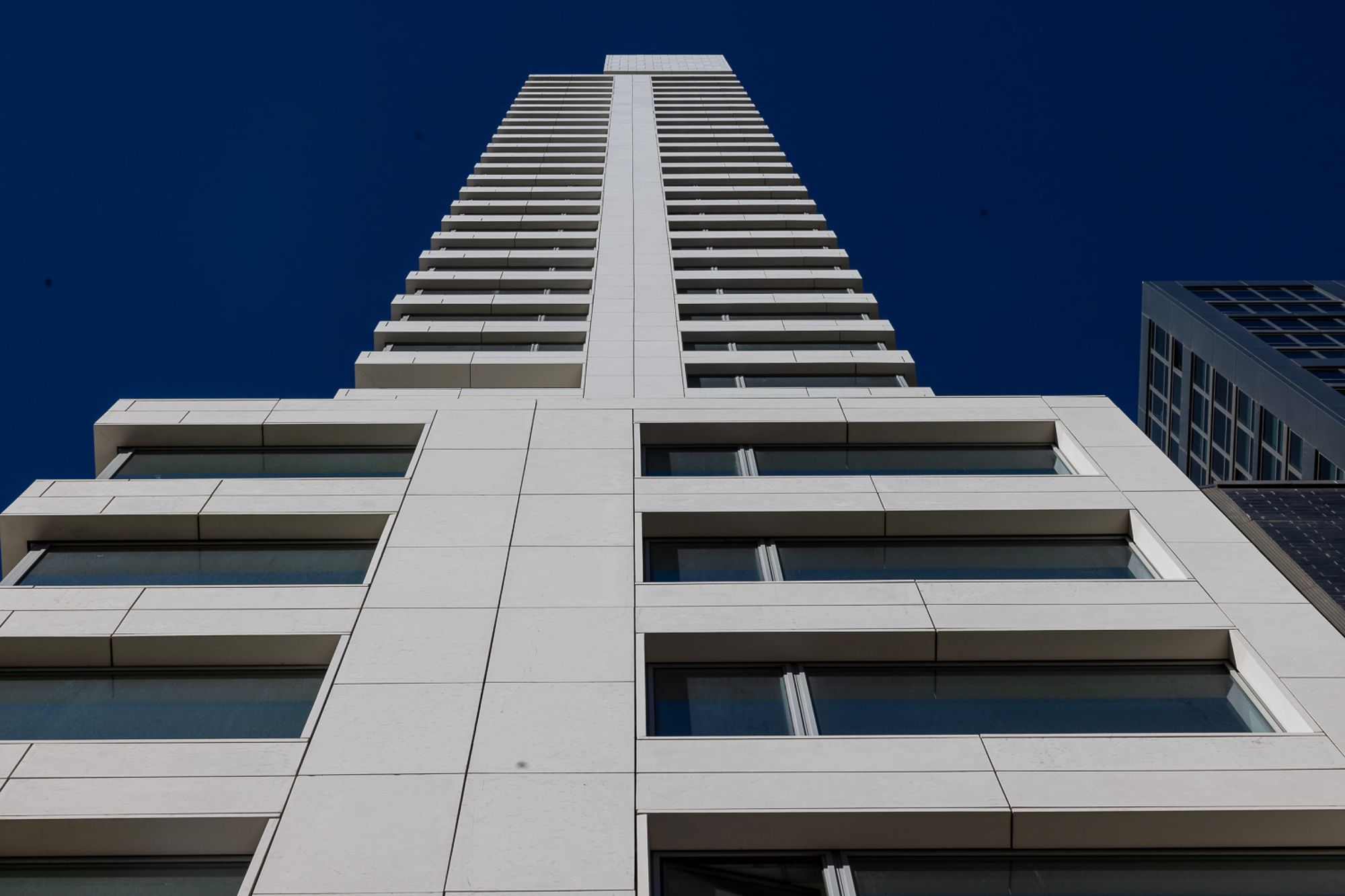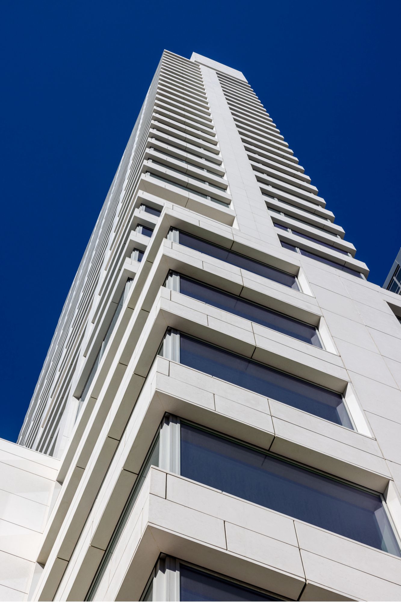 A primary architectural design objective for the 611 W 56th St residential tower was to mark this important urban intersection, creating a strong architectural presence on an extremely narrow site in order to firmly connect with and celebrate its prominent corner relationship within the city and its streets.