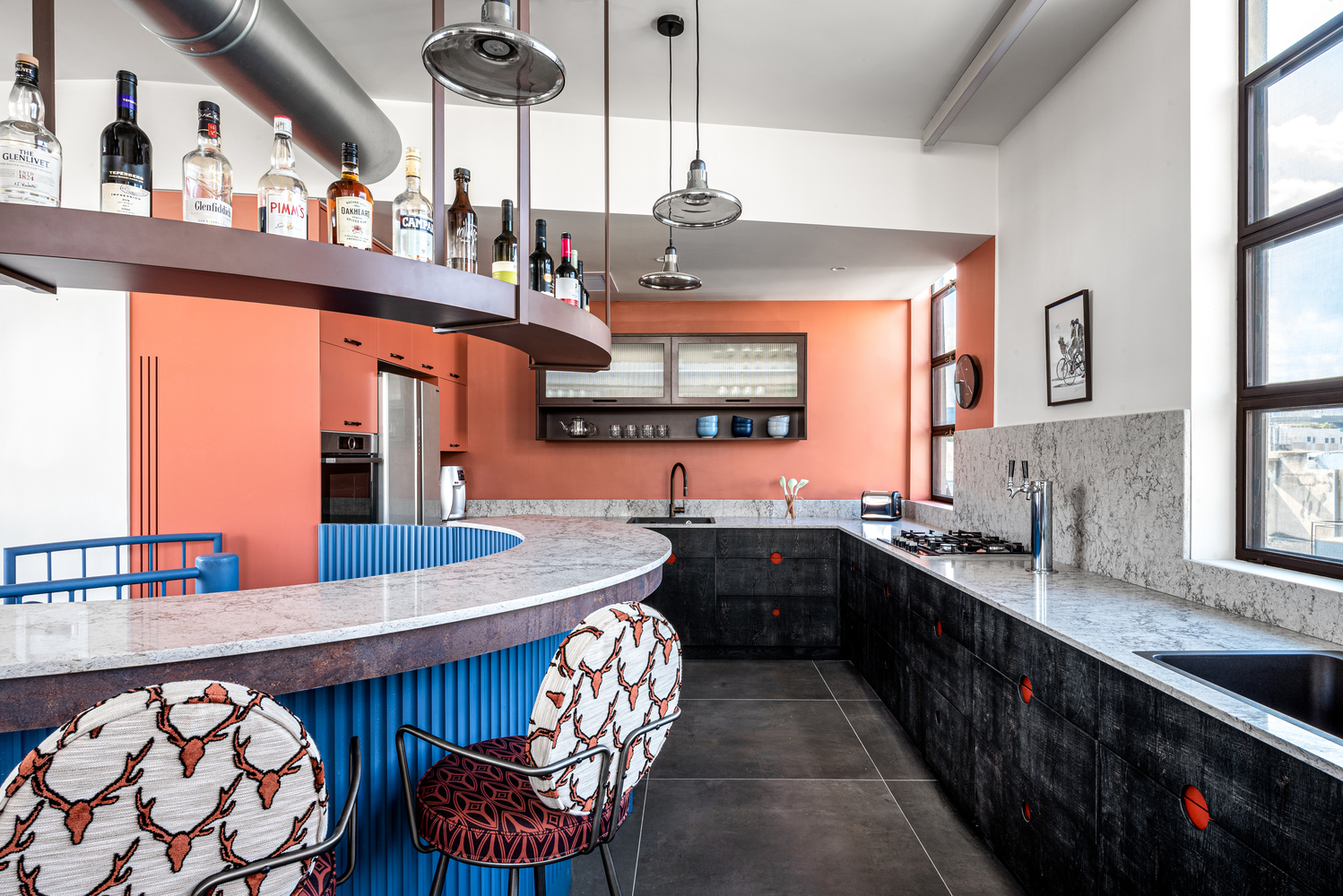 Bespoke furnishing - Almost every item in the apartment was tailor made using local artisans - from lighting, carpentry, windows, furniture, to the beds and closets. We also focused on using unconventional combinations of ceramics or wallpaper, bold color combinations, and textures.