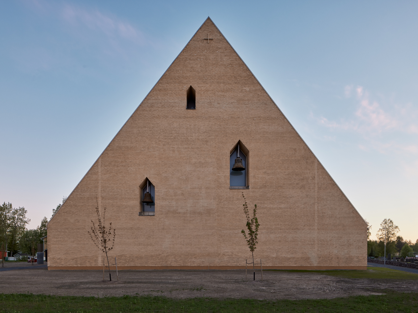 The new church of Ylivieska forms a visible landmark to the urban surroundings of the Kalajokilaakso area. The building mass is divided into three parts with gabled roofs – the church hall, the vestry, and the entrance lobby.