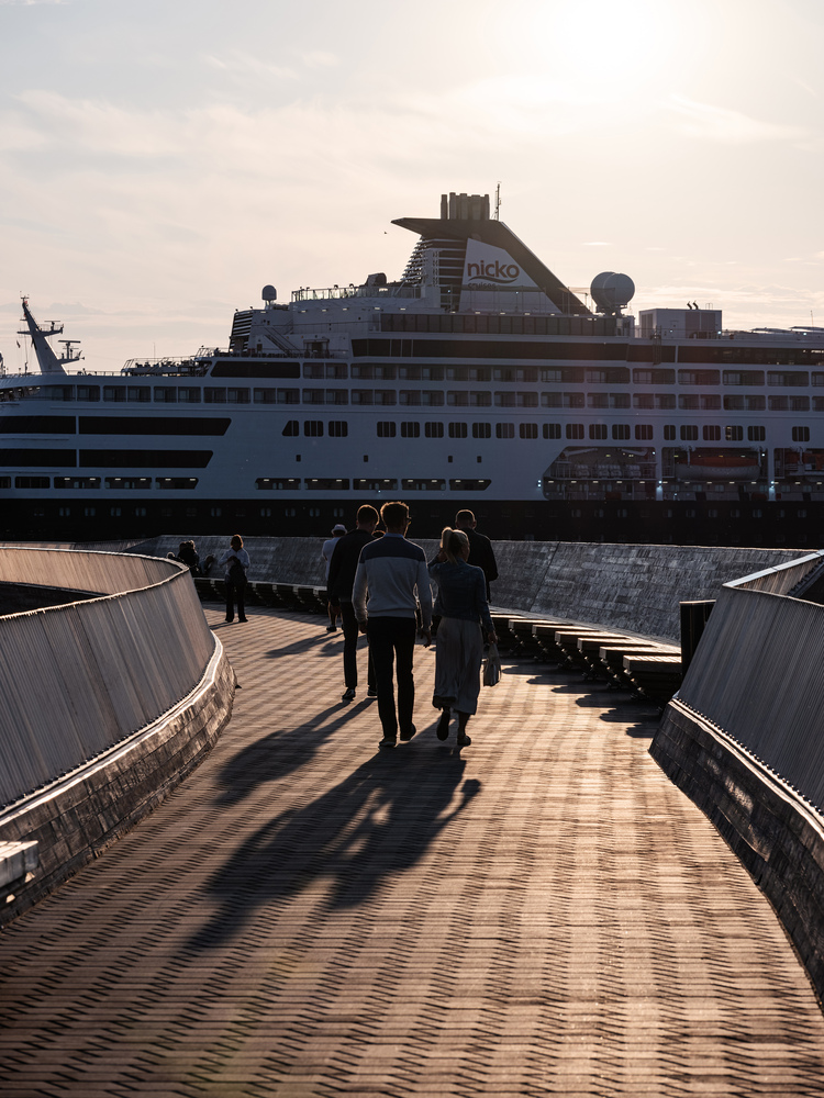 The cruise terminal is located on the North West Seawall (Loodemuul) of the Tallinn Old City Harbour, extending from Logi street to the end of the seawall. It is a combination of a promenade and hall construction, where the cruise terminal functions as the driving element in creating the 850 m long seaside urban park.