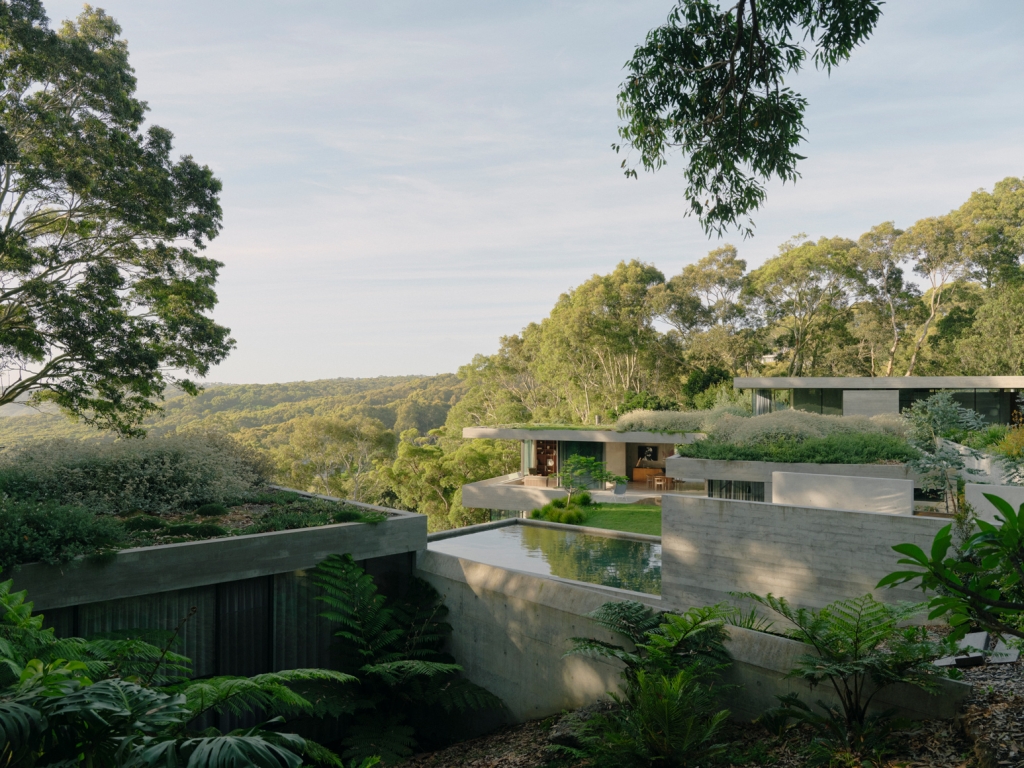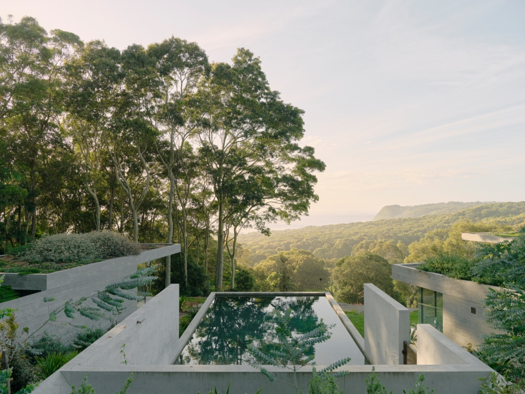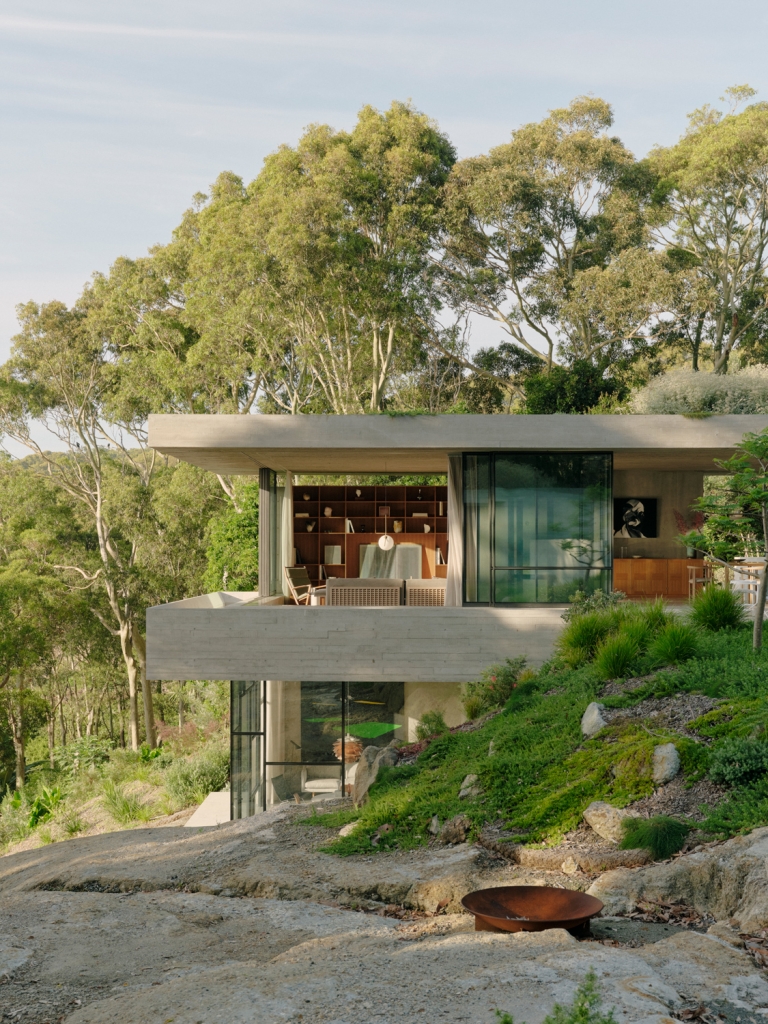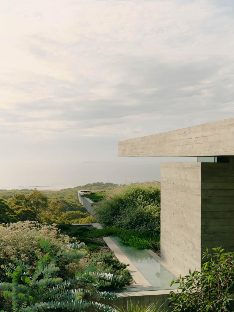 The earth filled concrete plates of Bunkeren are balanced carefully on a coastal site within the unceded lands of the Awabakal people in Whitebridge, a southern suburb of Newcastle. The project is an incredibly photogenic study in concrete textures and form, containing subtle nods to the kinds of architectural references one might expect from a collaboration between experienced architect James Stockwell and Danish-Australian clients with an eye for design. Yet the building is far more than just finely crafted details and dramatic concrete cantilevers. At its heart, Bunkeren attempts to actively dismantle the object qualities of the architecture in favour of ambiguous, landscape-driven spaces of discovery and inhabitation.