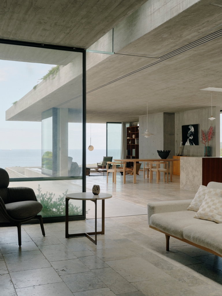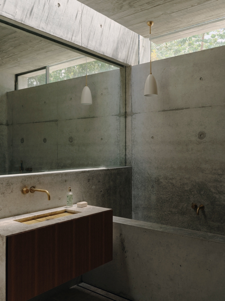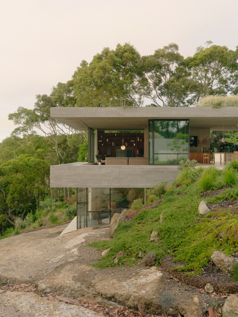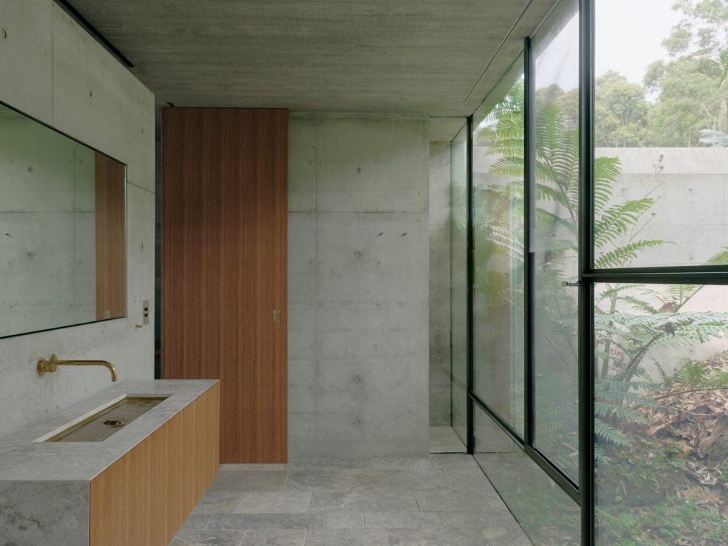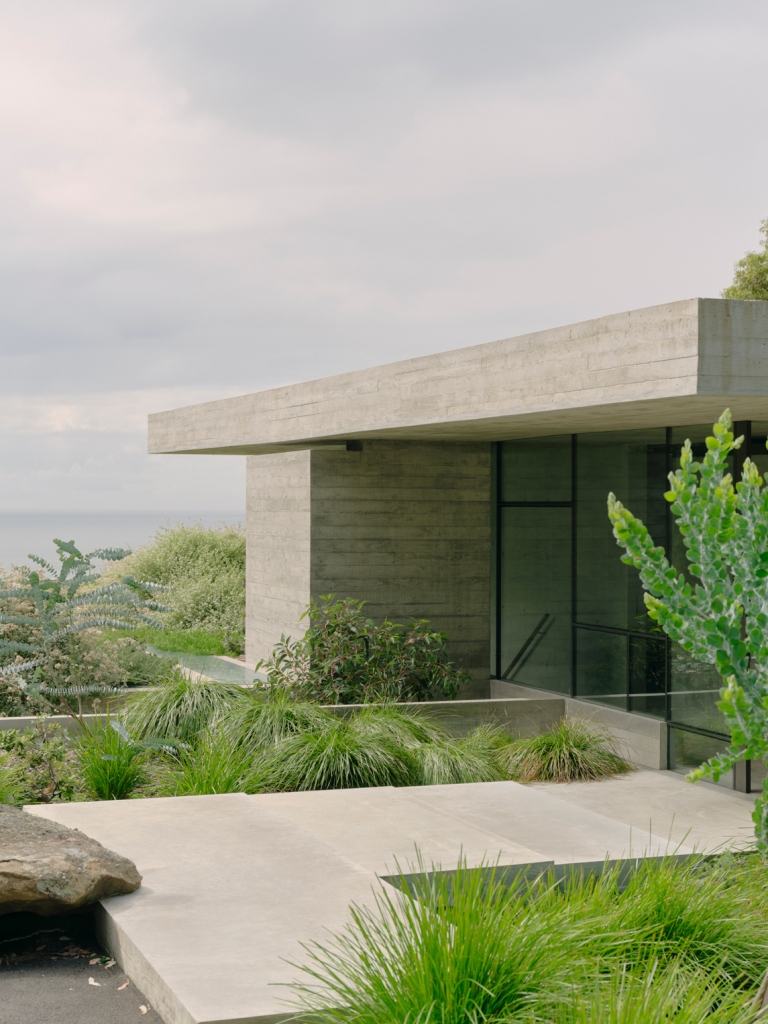 Building on initial discussions about the use of concrete in the Opera House, the architect and clients also discovered a shared fondness for bunkers. “You can’t really suggest to someone to do a house like a bunker,” James explains, “but we both realised – and it was a bit of a watershed moment that we really loved them and all thought it was a great idea.” James was drawn to memories of the ruins of military fortresses in his hometown of Albany, while his clients remembered time spent around decaying World War II bunkers along the Danish coast. These influences are powerful, personal touchstones, and they infuse the project – registering not just in its material palette and exterior form but in deeper decisions about the siting and interior experiences.