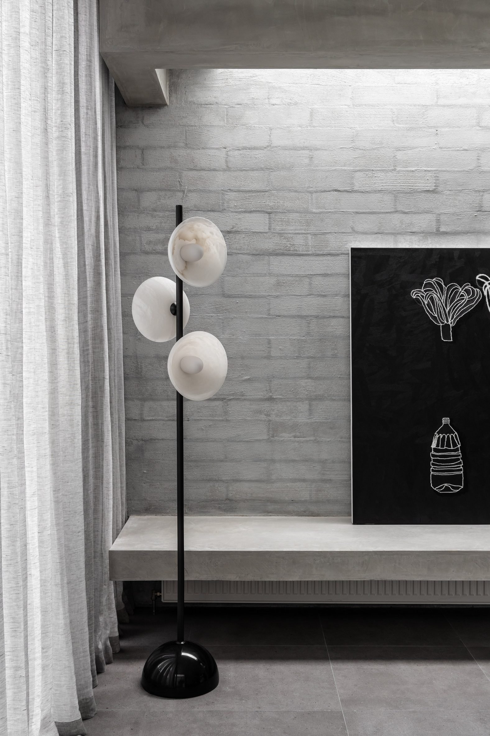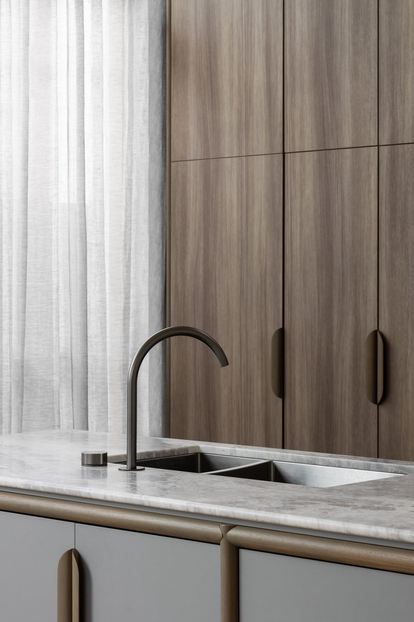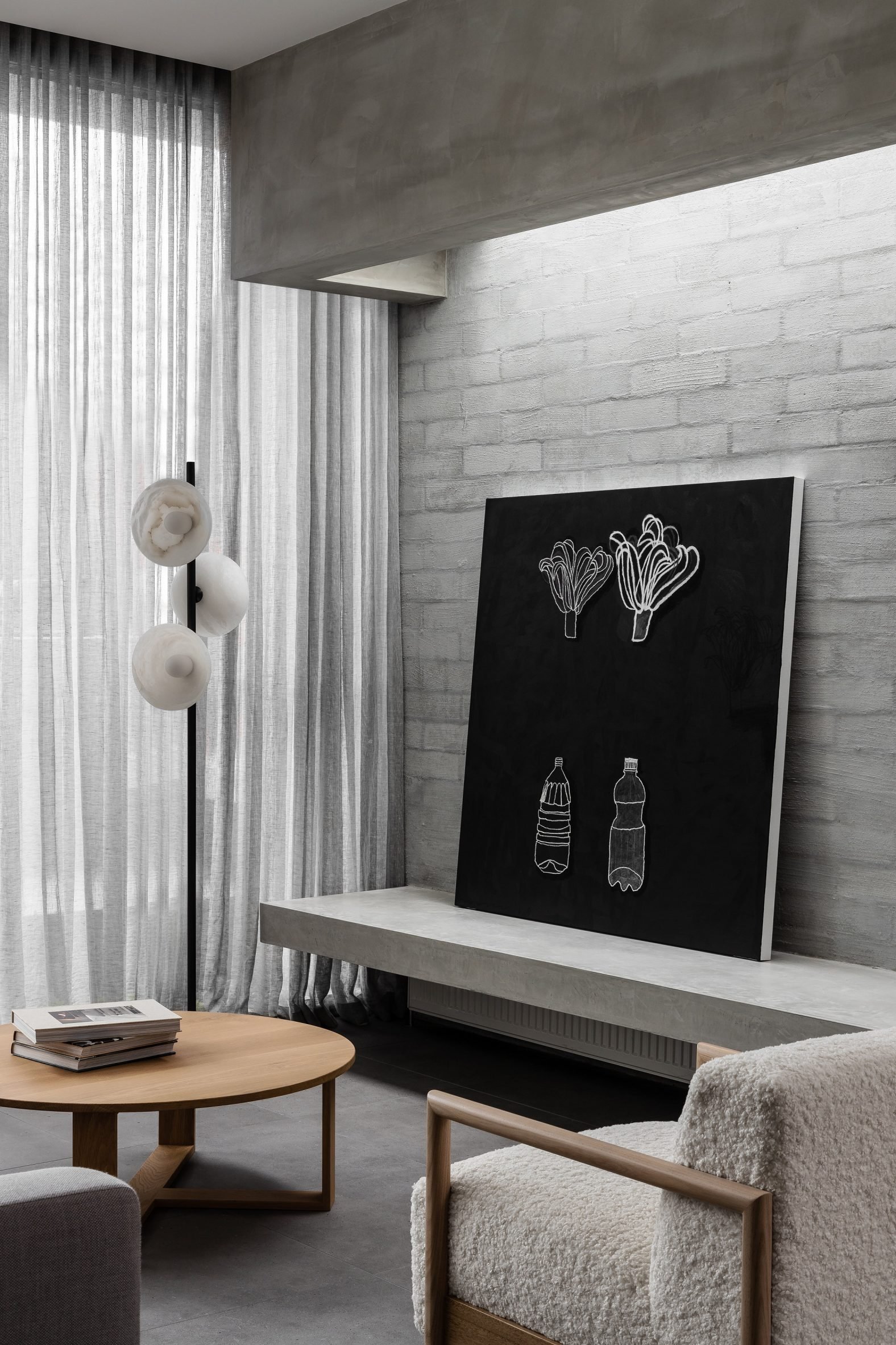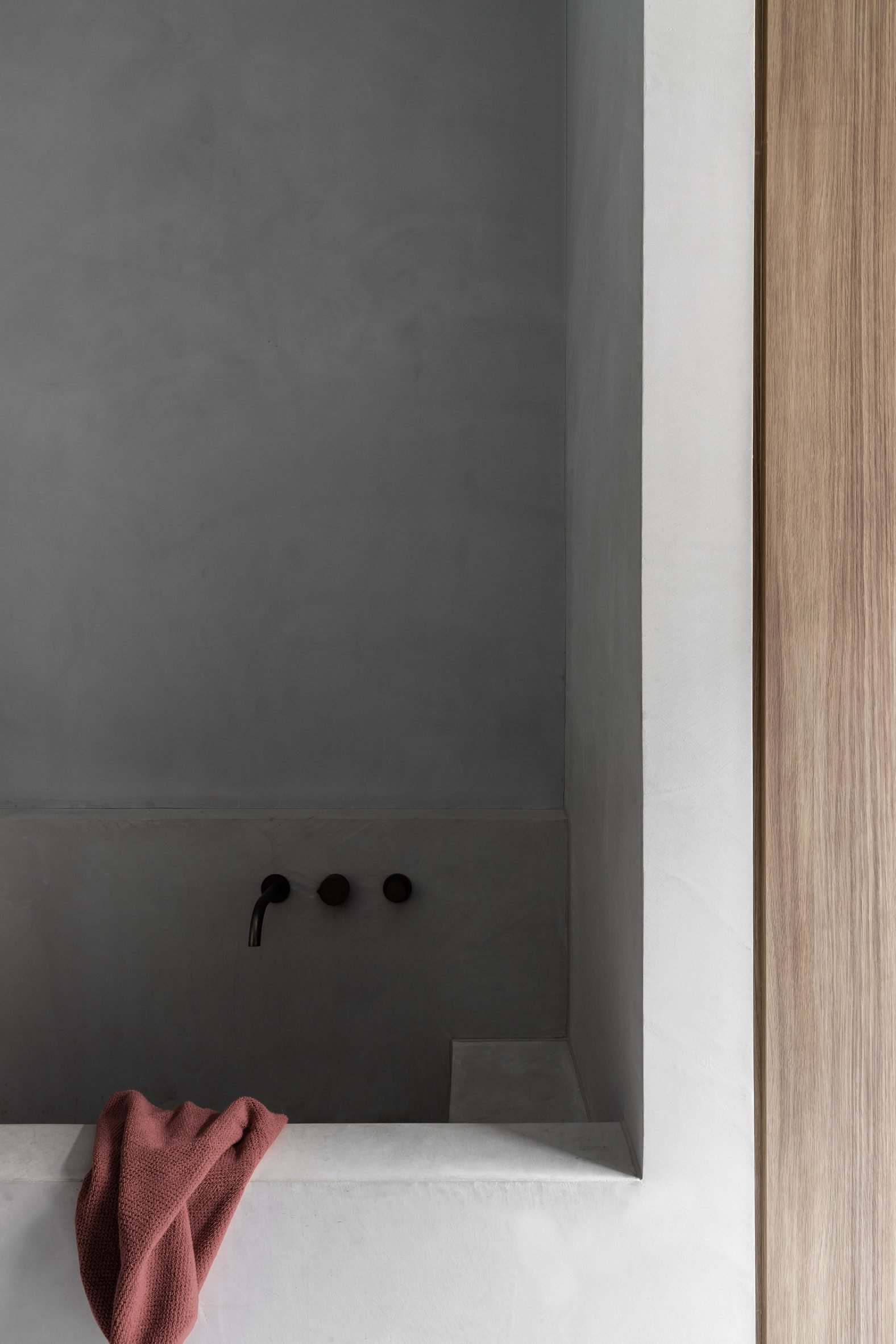 The space is fronted by expansive three-by-three-metre glass doors that had to be lifted onto the site by crane.