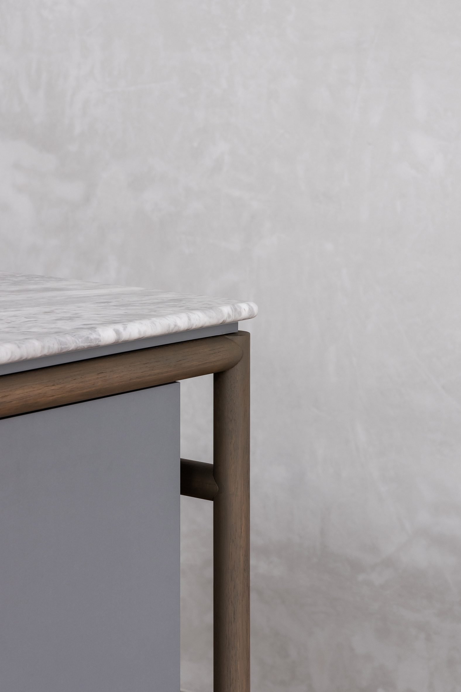 The space is fronted by expansive three-by-three-metre glass doors that had to be lifted onto the site by crane.