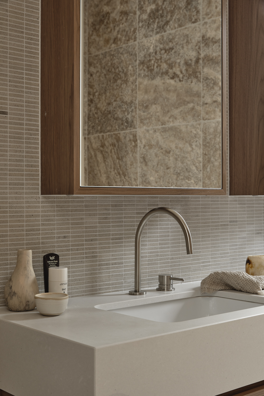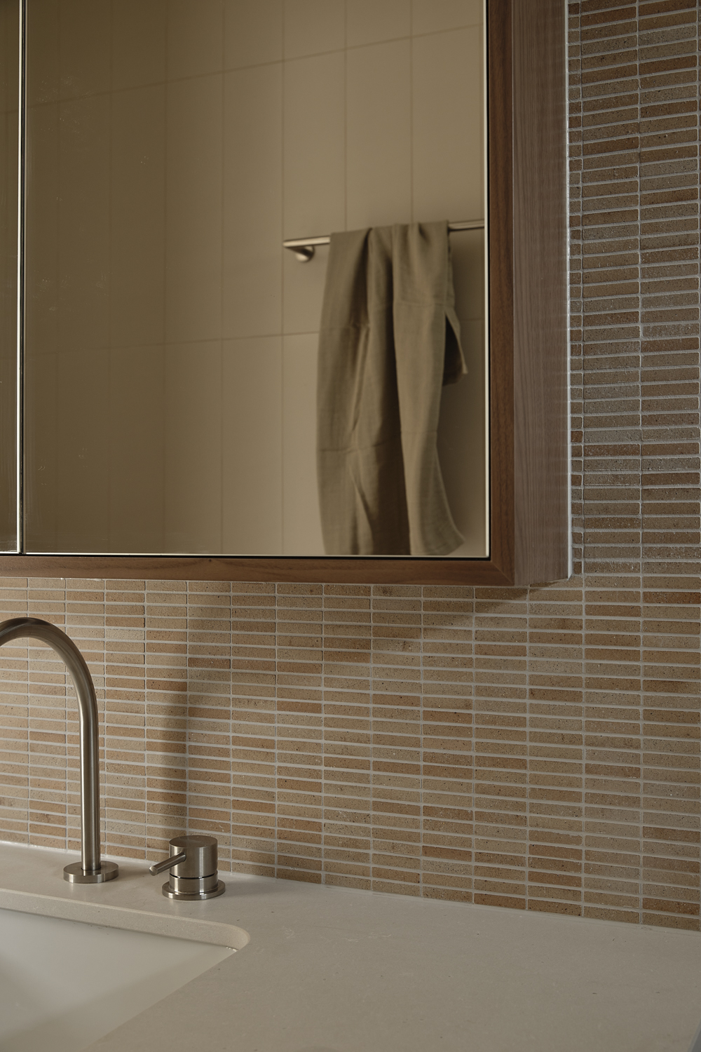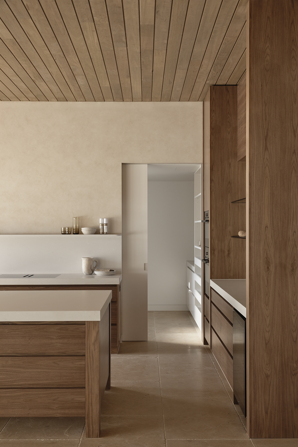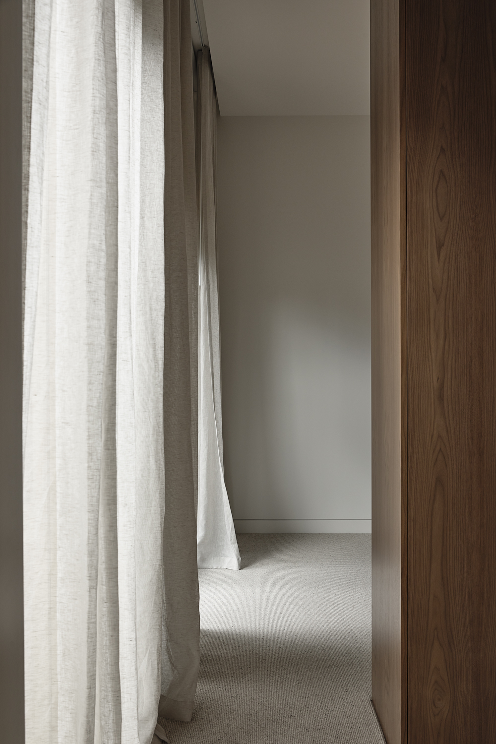 Built by Smith Builders and with landscape design by The Good Garden Co. and Point Nepean Landscaping, the form optimises the unique site, leaning into the undulations in the terrain. The cupping of open areas creates dedicated courtyard spaces, inspiring the home’s namesake, while also creating opportunities for the living areas to extend outward. A focus on inside and outside flow also reinforces a sense of place, while creating areas protected from the sea winds and natural elements when needed. Combining a quiet stillness, the soft and muted neutral palette creates a sense of calm and separation, while openings frame views out.
