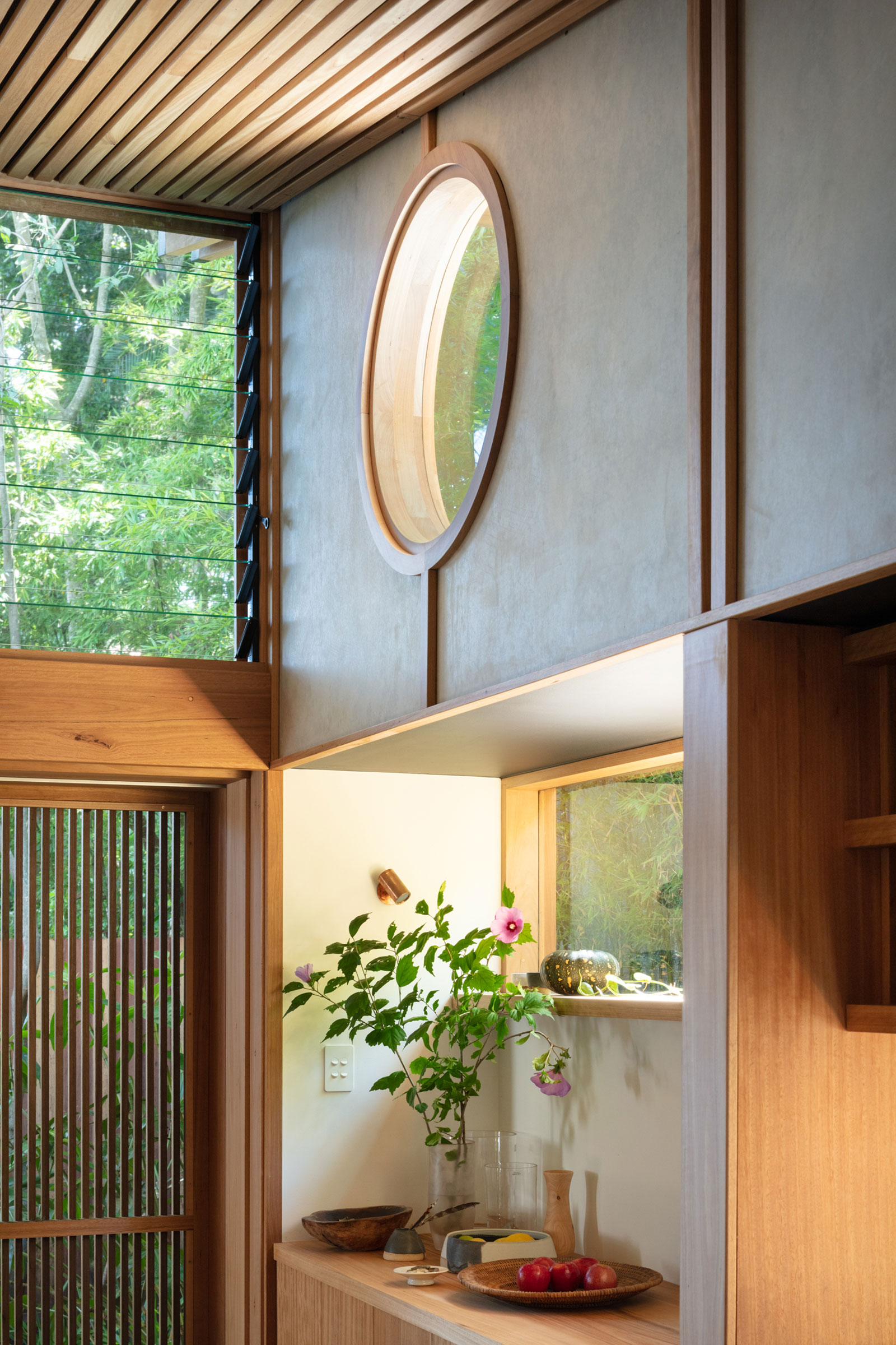 As an addition to an existing home, Tsubo Niwa takes its name through its meaning of ‘small town garden’ – an expression of its offering to the area. Its unique L shaped arrangement, together with its immersion within an important green strip of Sydney, inspired the approach, focusing on the natural through a deliberately light touch. Timber presents as the most prominent material throughout, wrapping the new form externally whilst also adding texture and warmth internally. The aim was to create an addition that opens to the surrounds and becomes a welcoming embrace of the landscape. Matt Elkan Architect worked closely with the owners who have lived in the original home for 40 years to ensure the addition also captured them in the process.