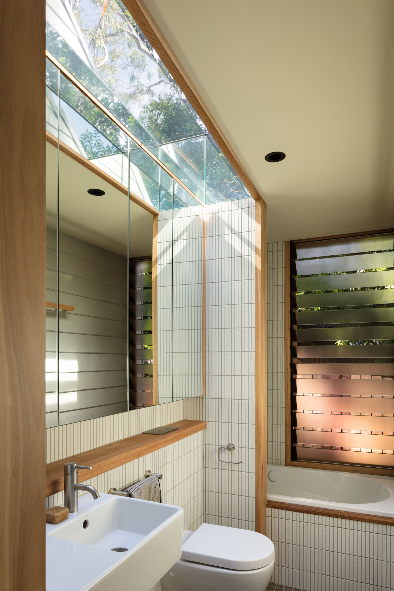Its unique L shaped arrangement, together with its immersion within an important green strip of Sydney, inspired the approach, focusing on the natural through a deliberately light touch.