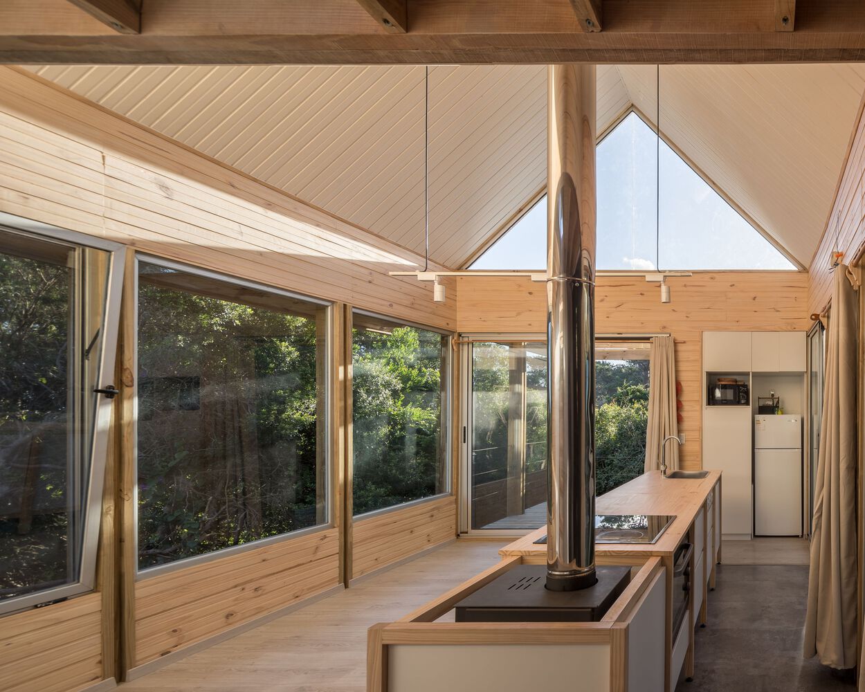 주변 자연환경의 조우를 첫번째 원칙으로 한다. 두번째는 거주자에게 안락한 휴식처를 제공한다. 나무를 구조를 사용하고, 최대한 개방되는 외형적 특징을 보여주기 위해, 유리를 시원하게 적용하였다. 박공지붕은 지속가능한 거주공간을 유지시켜주는 쾌적한 실내는 완성하는 동시에 아이코닉한 건축디자인을 보여준다.