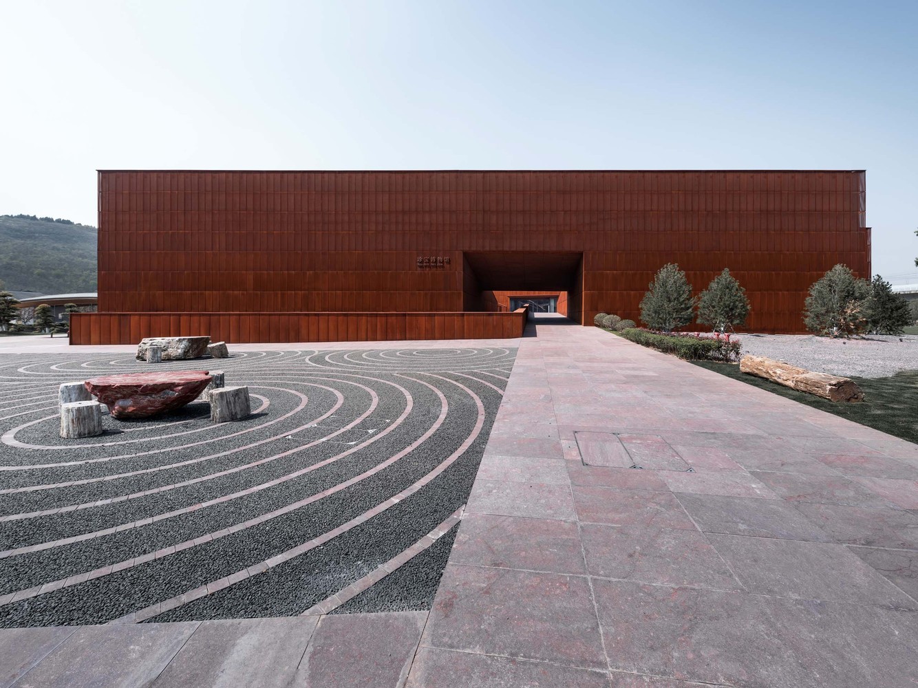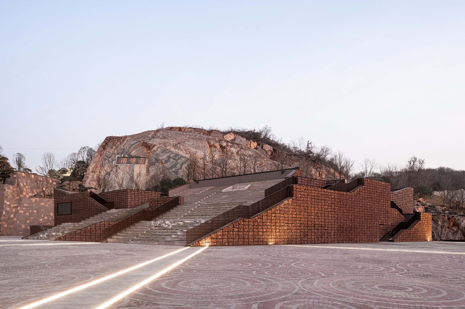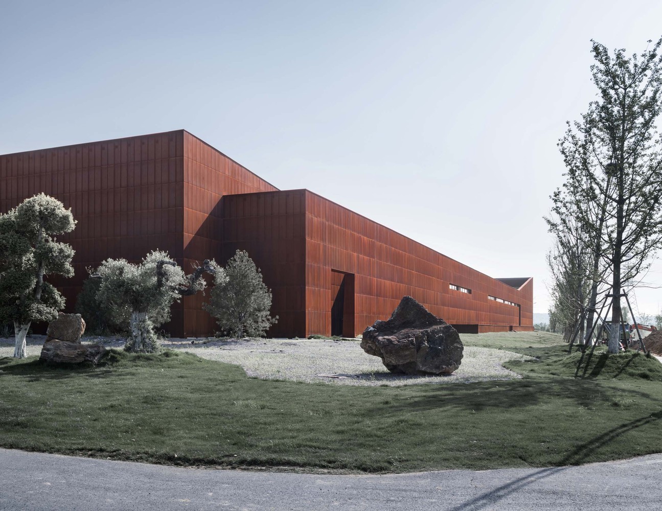 Due to urban expansion and ecological conservation, the Chinese Cement Factoryonce famous in the industry, was closed and relocated away in recent years. The construction of the Garden Expo Park now becomes a sustainable strategy for the city development . Previous production of cement and mining makes a flat and low lying terrain center in the Garden Expo Park, while the surroundings are all covered with mountains. The Treasure Pavilion is located at the north edge of the Park, on a narrow green belt between the mountains and a high-speed railway line. The planned construction site is one-hundred-ninety meters long, seventy-five meters wide, and the height limit goes to eight meters high.