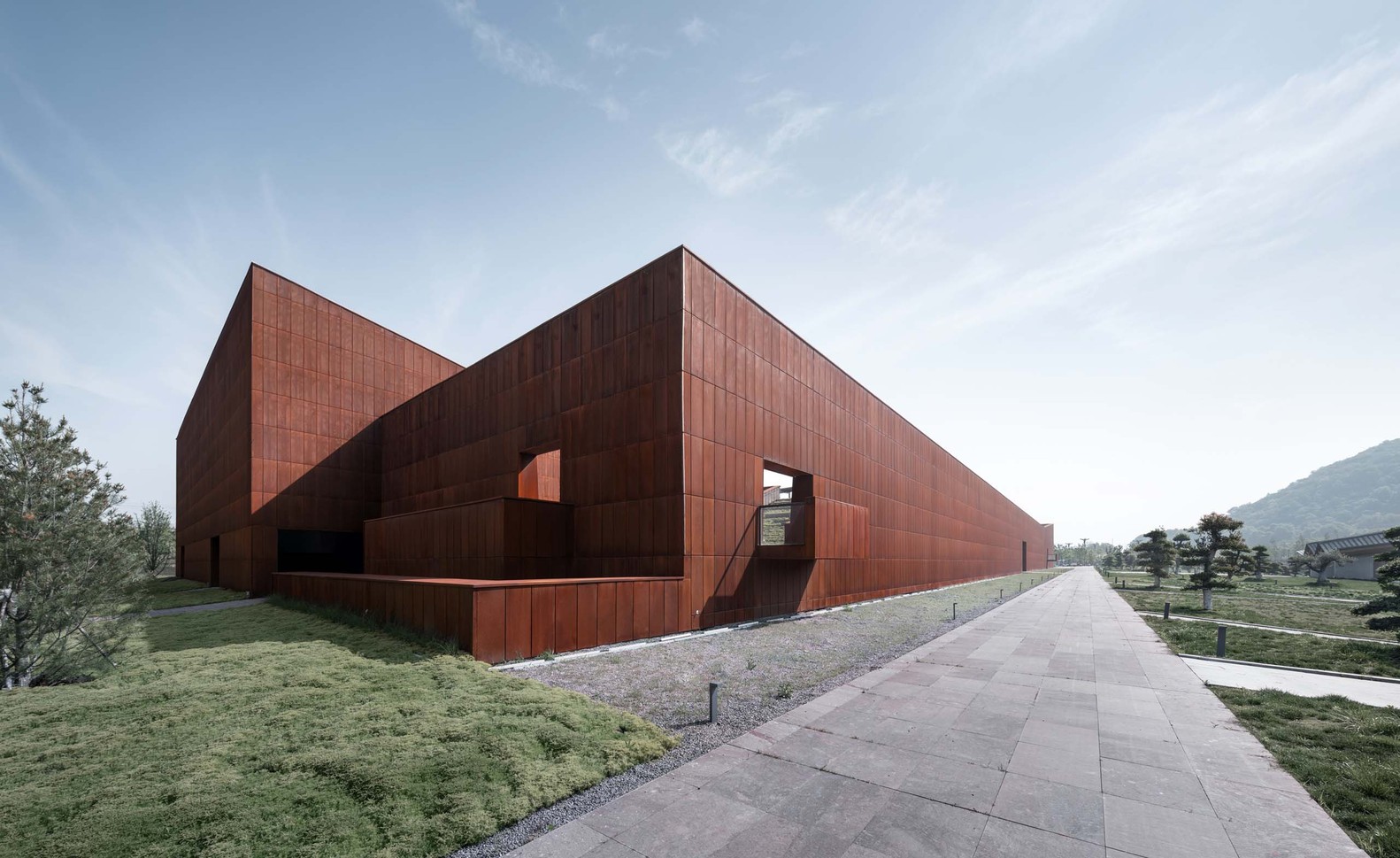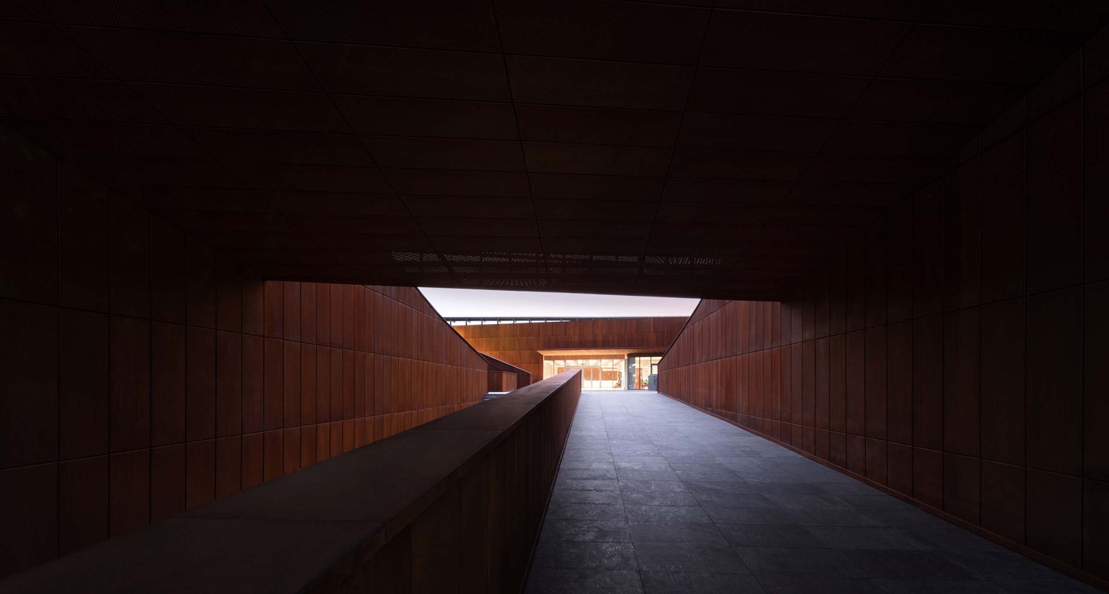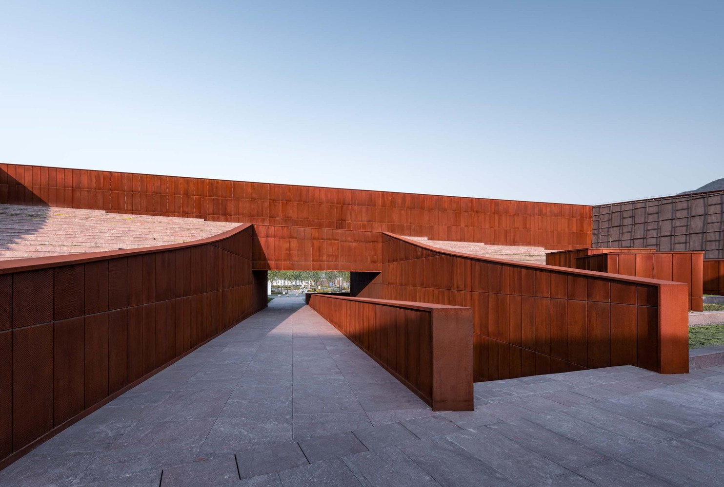 Folding, a concept originated from geology, describes the crustal movement squeezing rock layers into folds, and creating the flexed textures. The project is located in Tangshan Fangshan GeoPark, whose famous six stratigraphic sections are the classic sections for geological teaching practice. Architecture design continues the site context by spatial folding. Starting from the area, the site, the pathway, and the material, the design talks about the relationship between building and site, plans visiting and wandering pathways, and incorporates the memory and timeliness into the space. The application of “Folding” concept connects all these thoughts into a whole, with a simple external form and rich spatial contents.