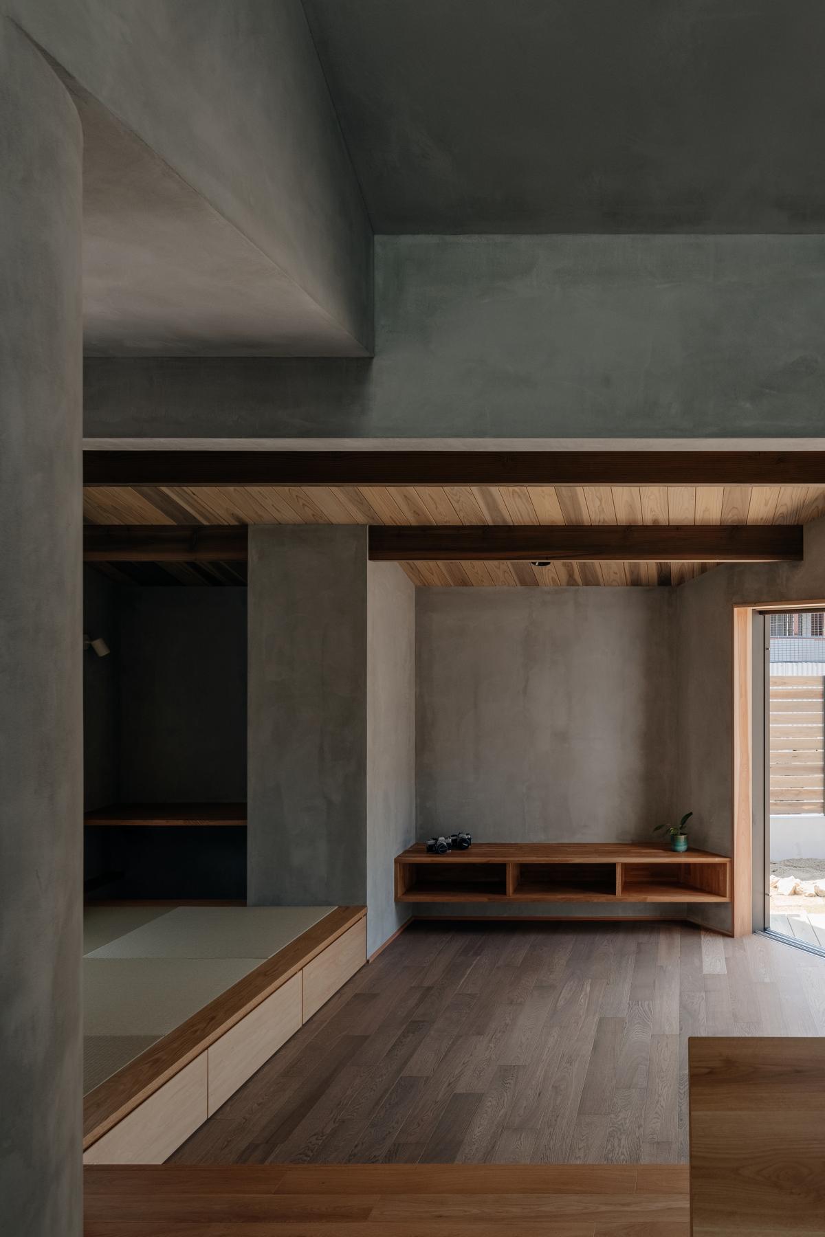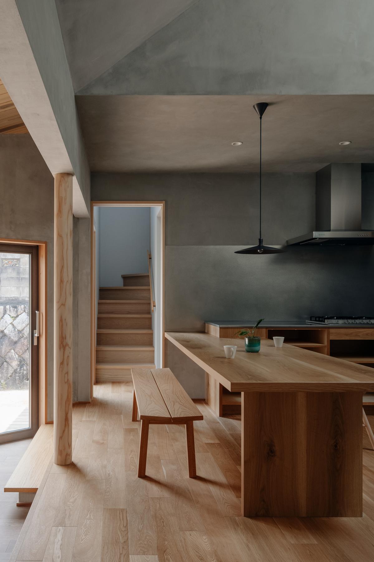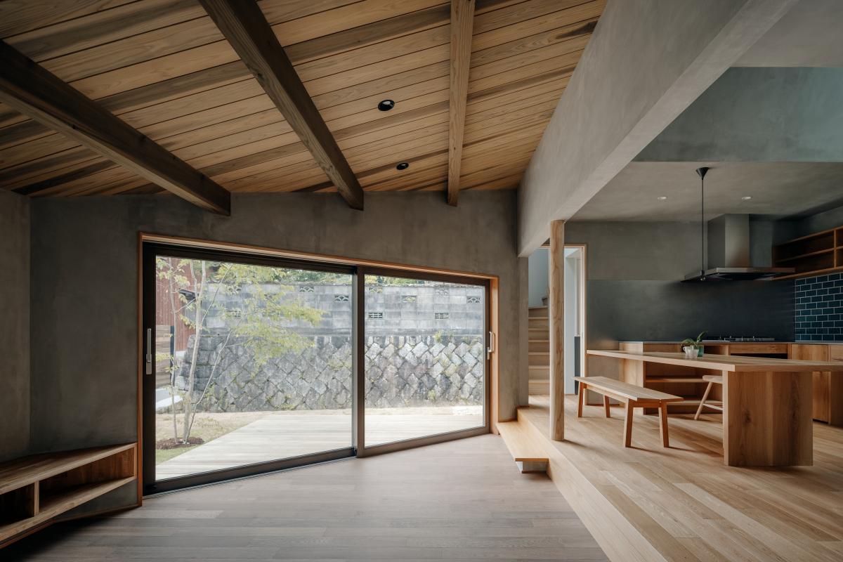 House in Nango is a minimal residence located in Shiga, Japan, designed by Hearth Architects. This project is a detached house project planned on a site with different heights. In order to design the site separated by this height difference as integrally as possible, we planned to set up a garage under the site and a house on the site and connect them with one big roof. The large roof of 19m gently covers the entire site, connecting the inside and the outside in an integrated manner, creating an attractive three-dimensional space that takes advantage of the height difference. Such a three-dimensional space will create a comfortable home where the family can become one under one roof.