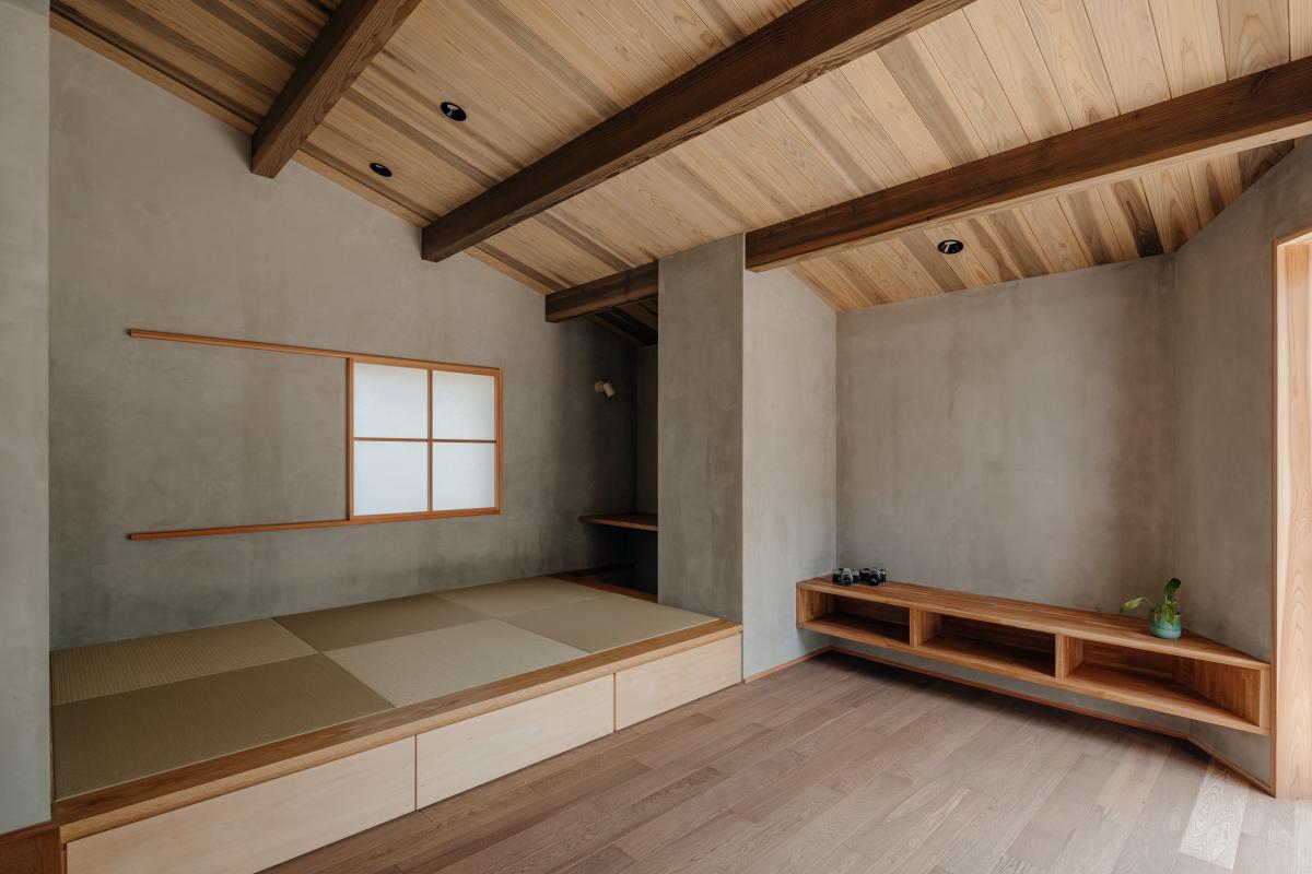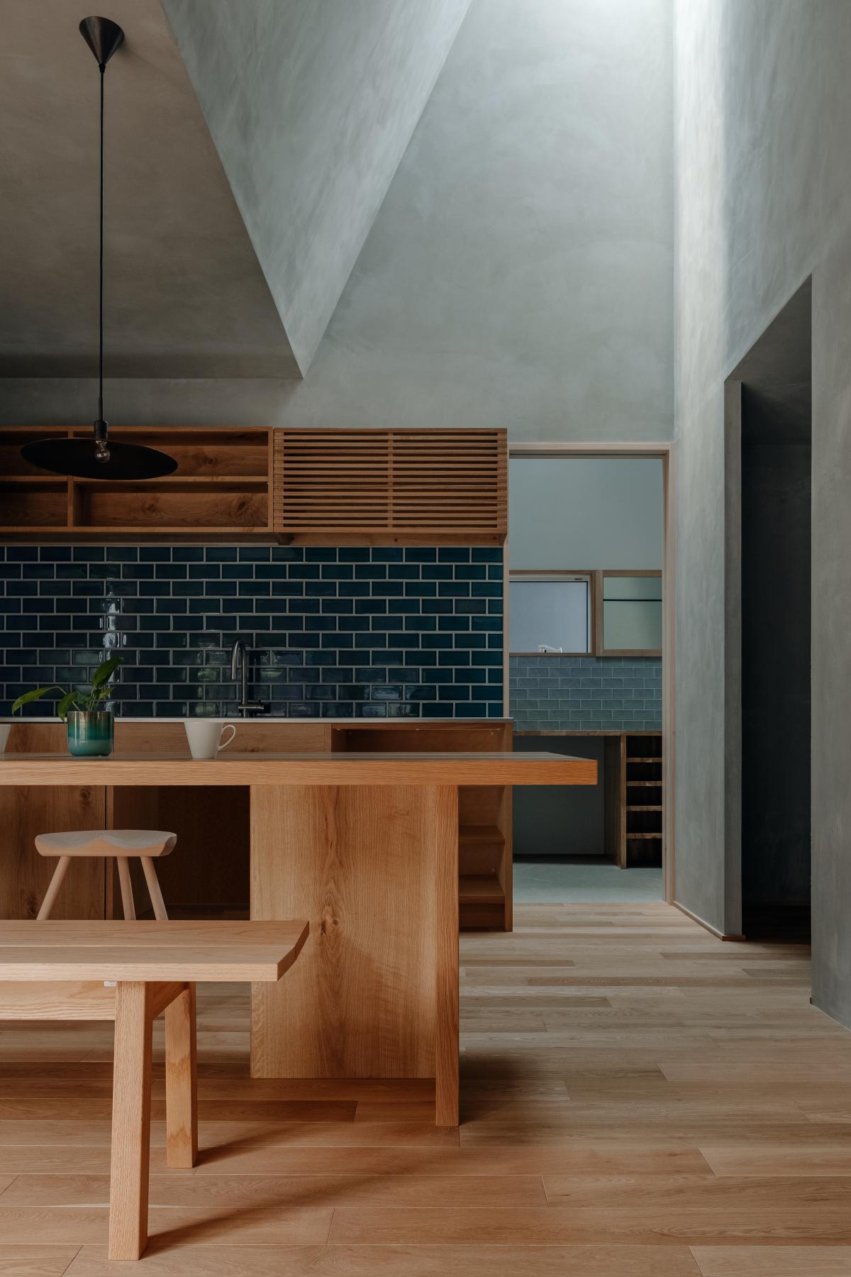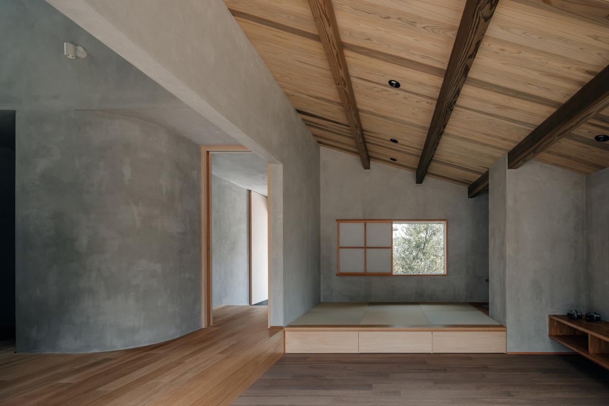 House in Nango is a minimal residence located in Shiga, Japan, designed by Hearth Architects. This project is a detached house project planned on a site with different heights. In order to design the site separated by this height difference as integrally as possible, we planned to set up a garage under the site and a house on the site and connect them with one big roof. The large roof of 19m gently covers the entire site, connecting the inside and the outside in an integrated manner, creating an attractive three-dimensional space that takes advantage of the height difference. Such a three-dimensional space will create a comfortable home where the family can become one under one roof.