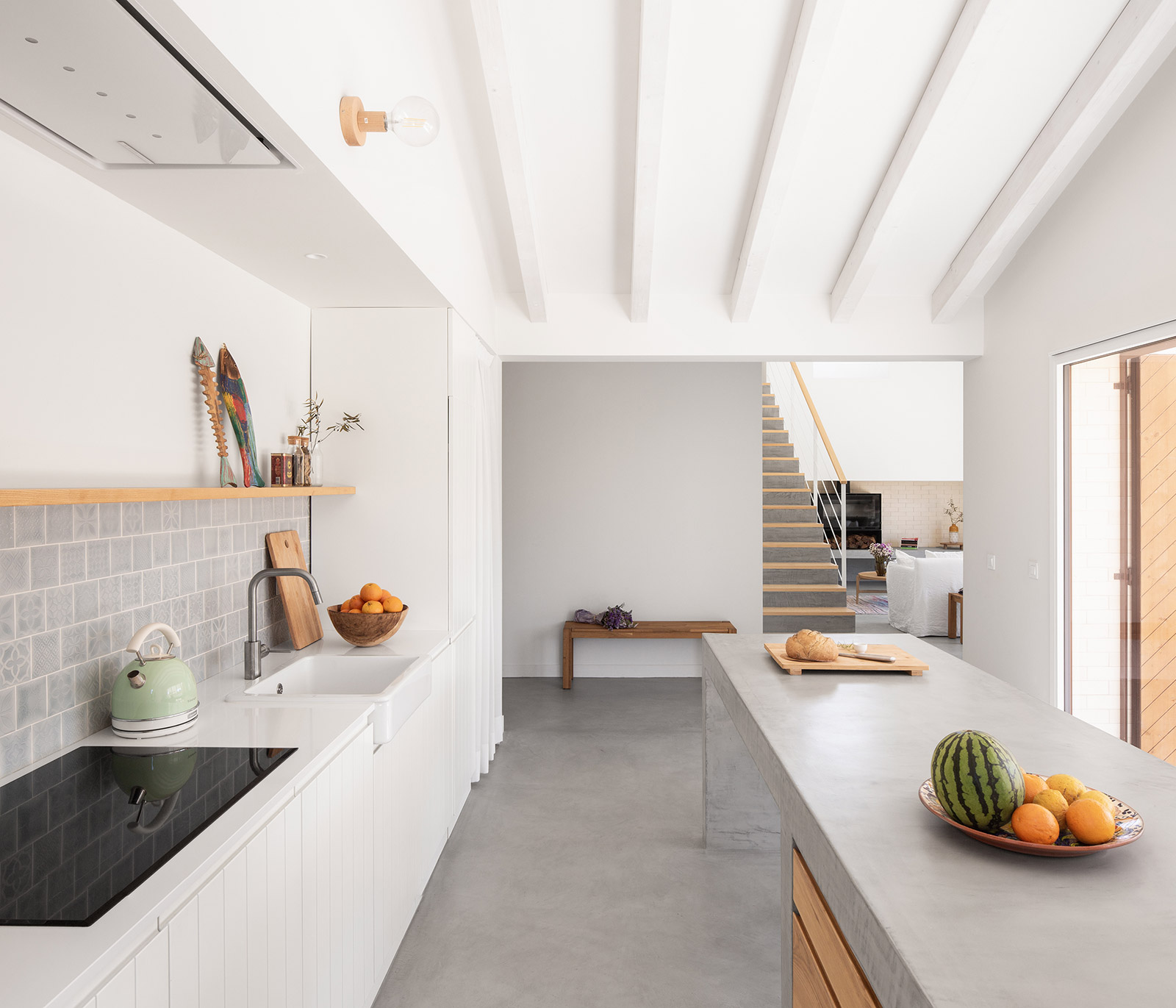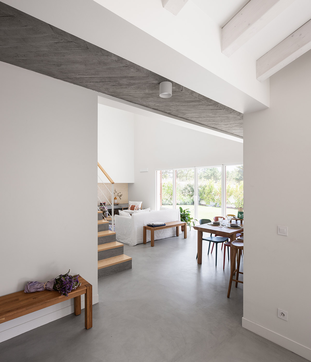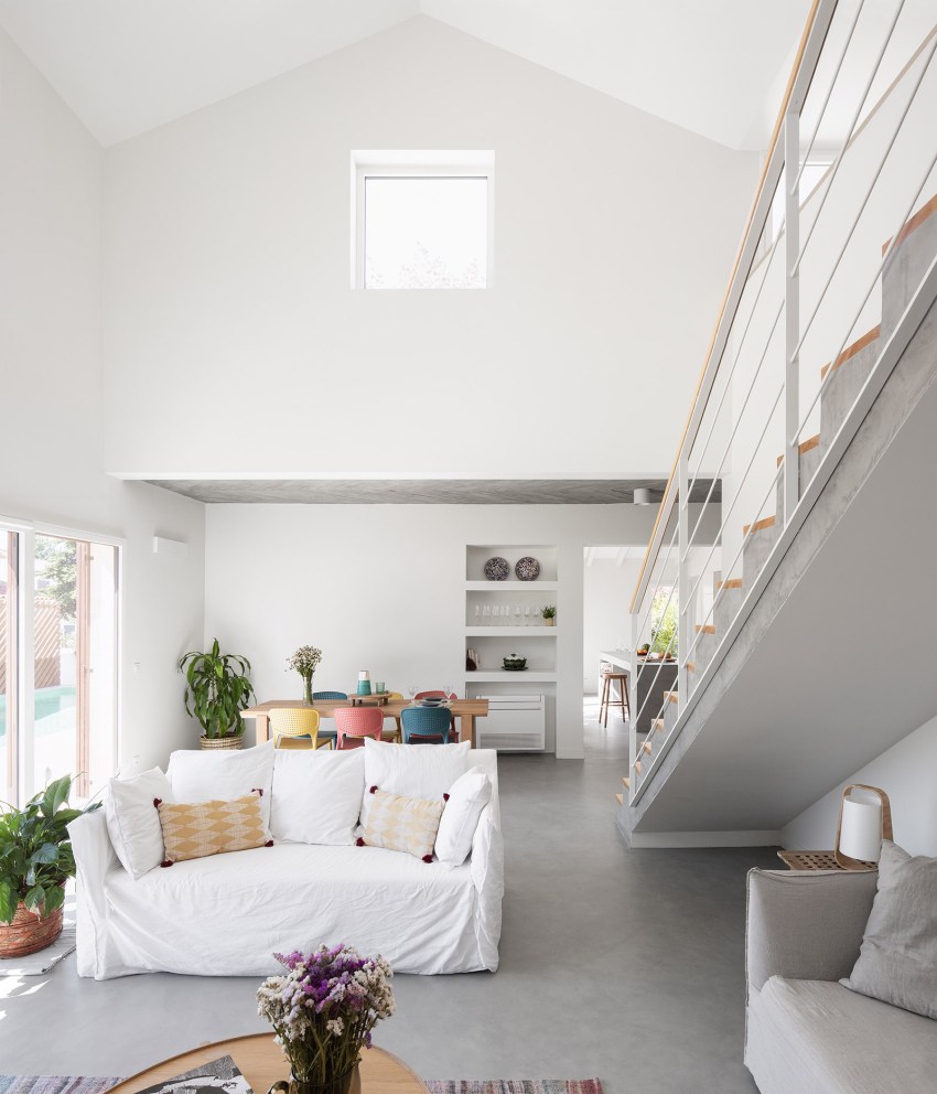 We sought to understand what the qualities of a vacation home could be, and we focused on some characteristics that seemed essential to us: an internal spatial organization that allowed a healthy coexistence among its users in a double-high ceiling living room, a very close relation between the social area of the house and its exterior, a clear separation from the private spaces and an atmosphere that revived the morphology of traditional Portuguese houses in the countryside. Having these in mind, our proposal has resulted in an unusual dialogue between the modern and the traditional.