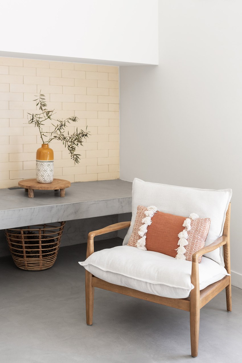 In the exterior, we tried to develop a markedly contemporary language with pure and simple forms, exploring the relationship between two rectangular volumes with distinct shapes. However, these modern volumes conceal an interior that exploits a spatiality that takes advantage of the two story roofs so characteristic of traditional country houses. However, despite a modern but elegant language, we have provided the exterior with materials that also explore the more artisan side of the country houses through the use of wood in the doorways and window frames, as well as the white ceramic brick. There is a compromise between traditional and popular architecture and the current architecture paradigm.