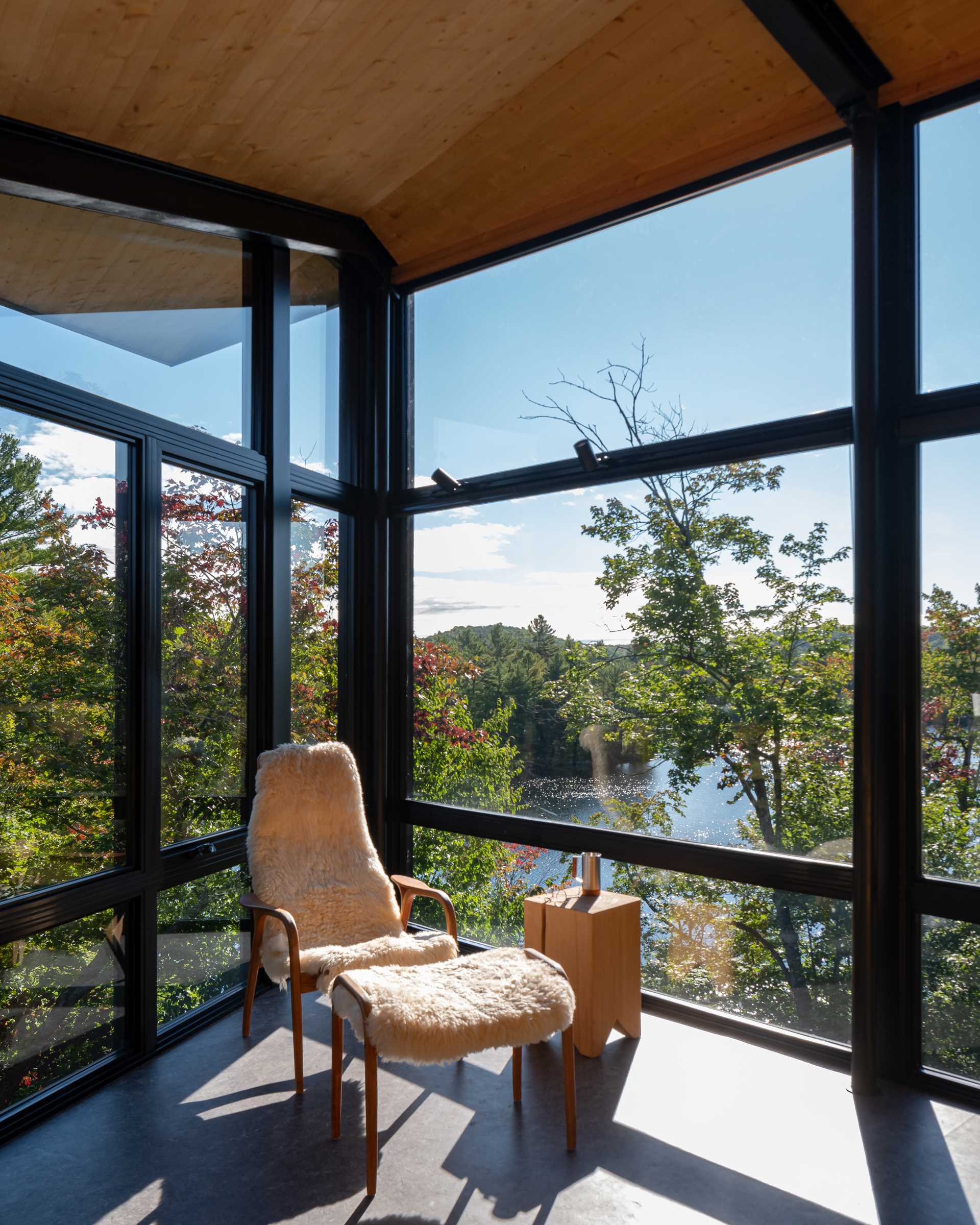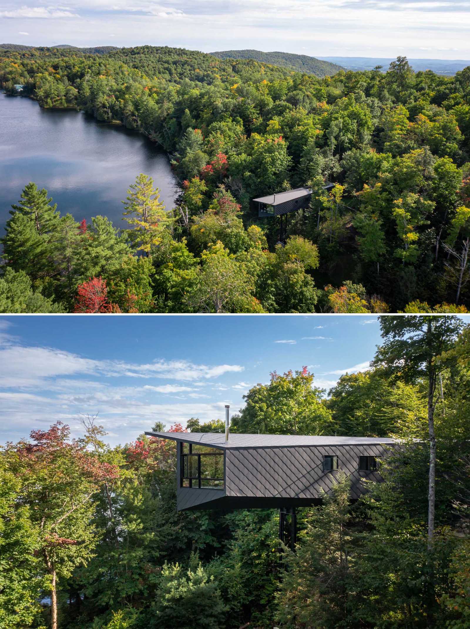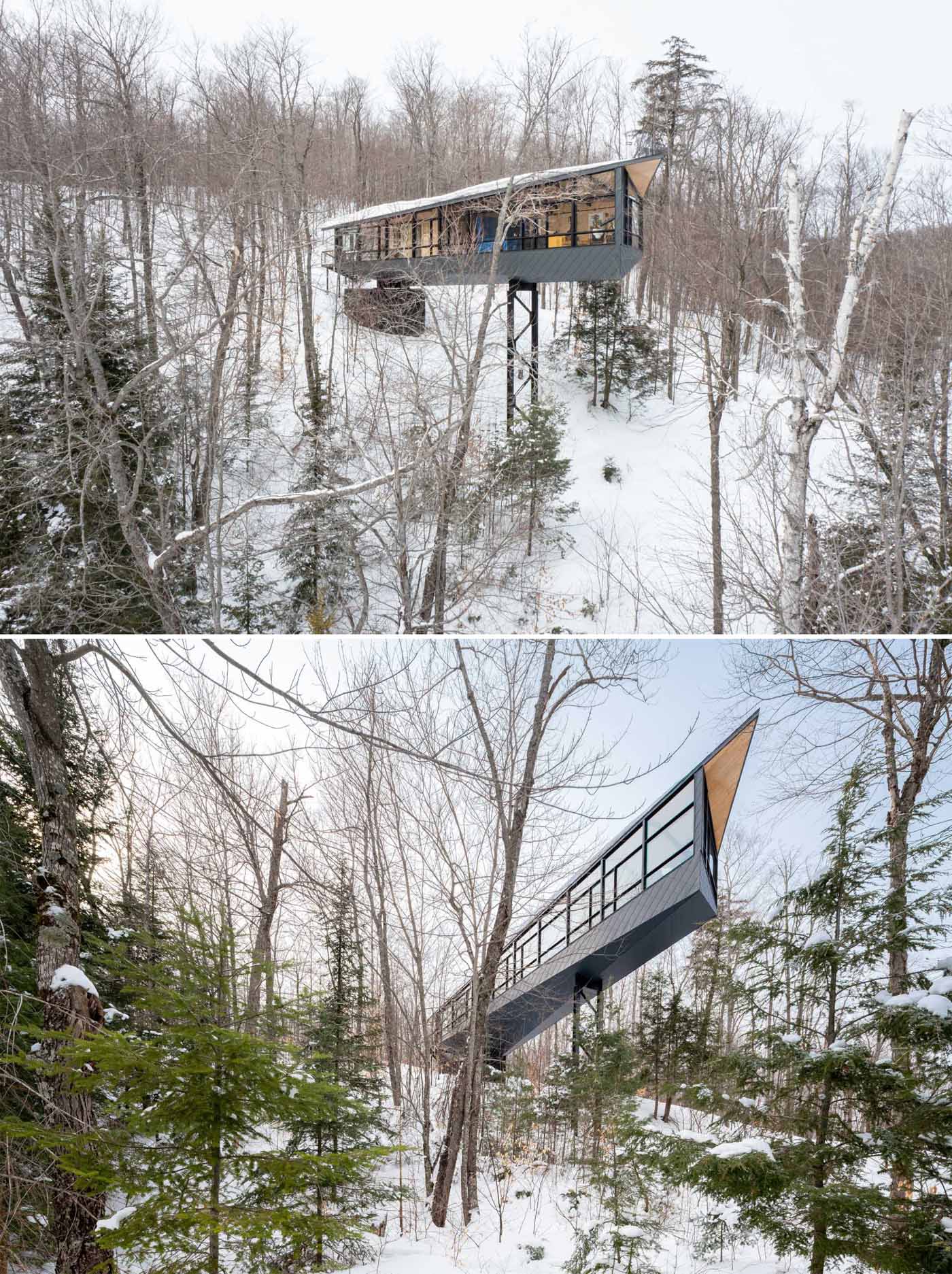 Kariuok Architects have designed a modern cabin in Quebec, Canada, that’s elevated to be located within the treetops.