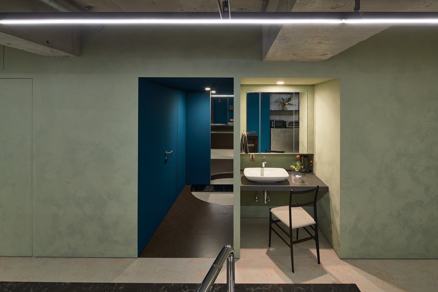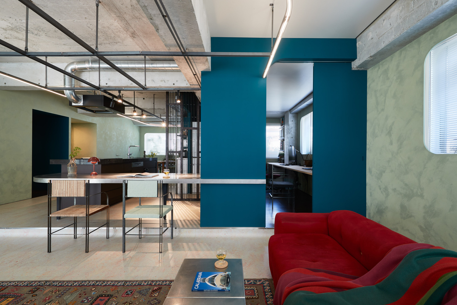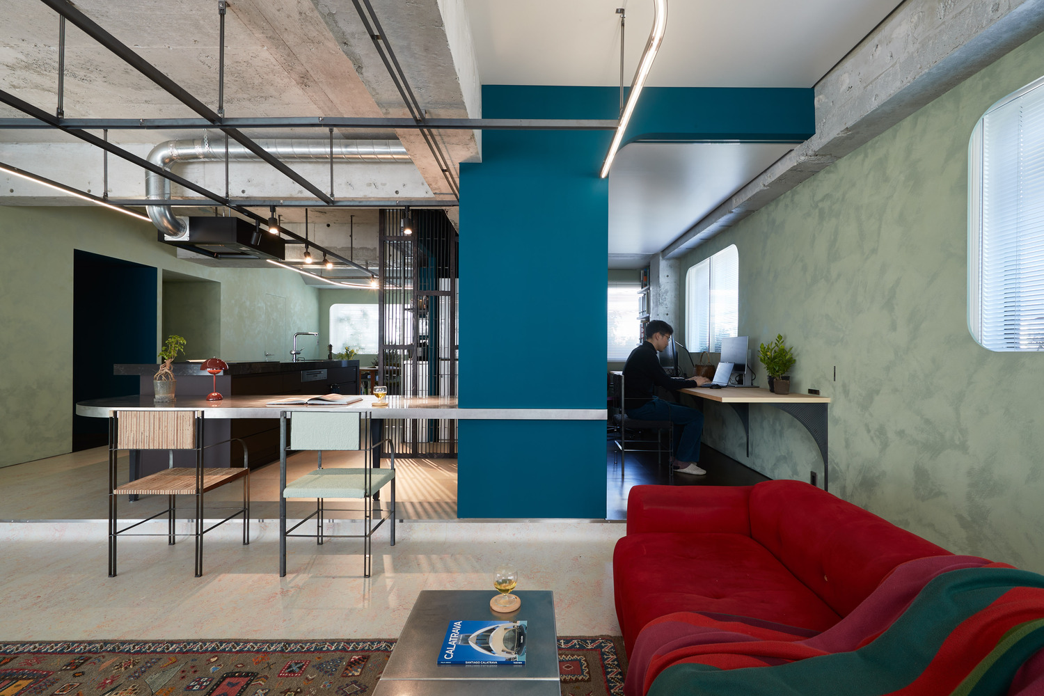 This is a renovation project of an architect's own residence. The 90 ㎡ floors on the second floor of the apartment building in a high density residential area was planned as a base for the diverse activities of the architect: a residence, an office, a studio, and a showroom.